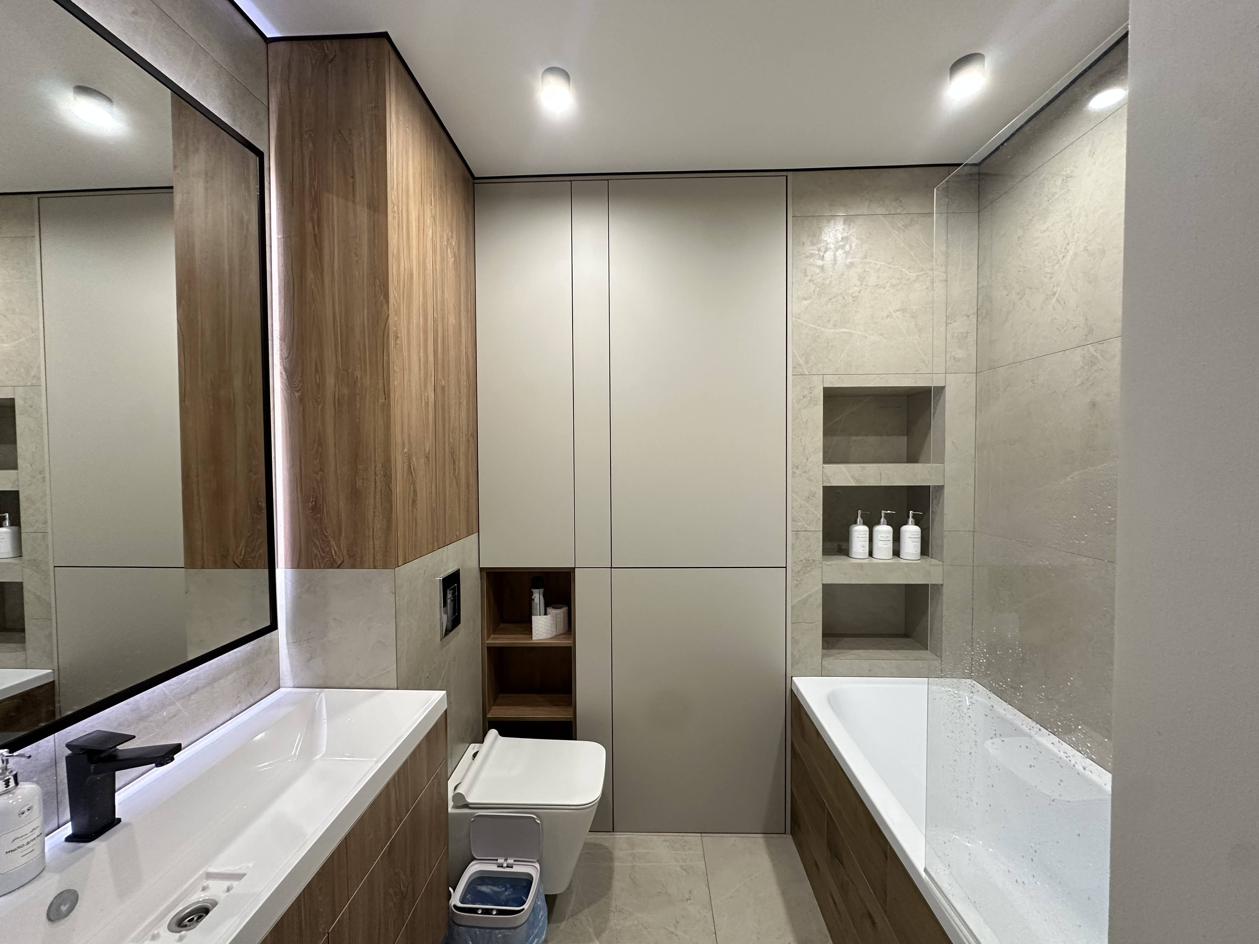 Из техники в вашем распоряжении посудомоечная машина, стиральная машина, чайник с поддержанием температуры, холодильник, свч, духовой шкаф, электроплита, кондиционер, смарт-тв, утюг, фен.