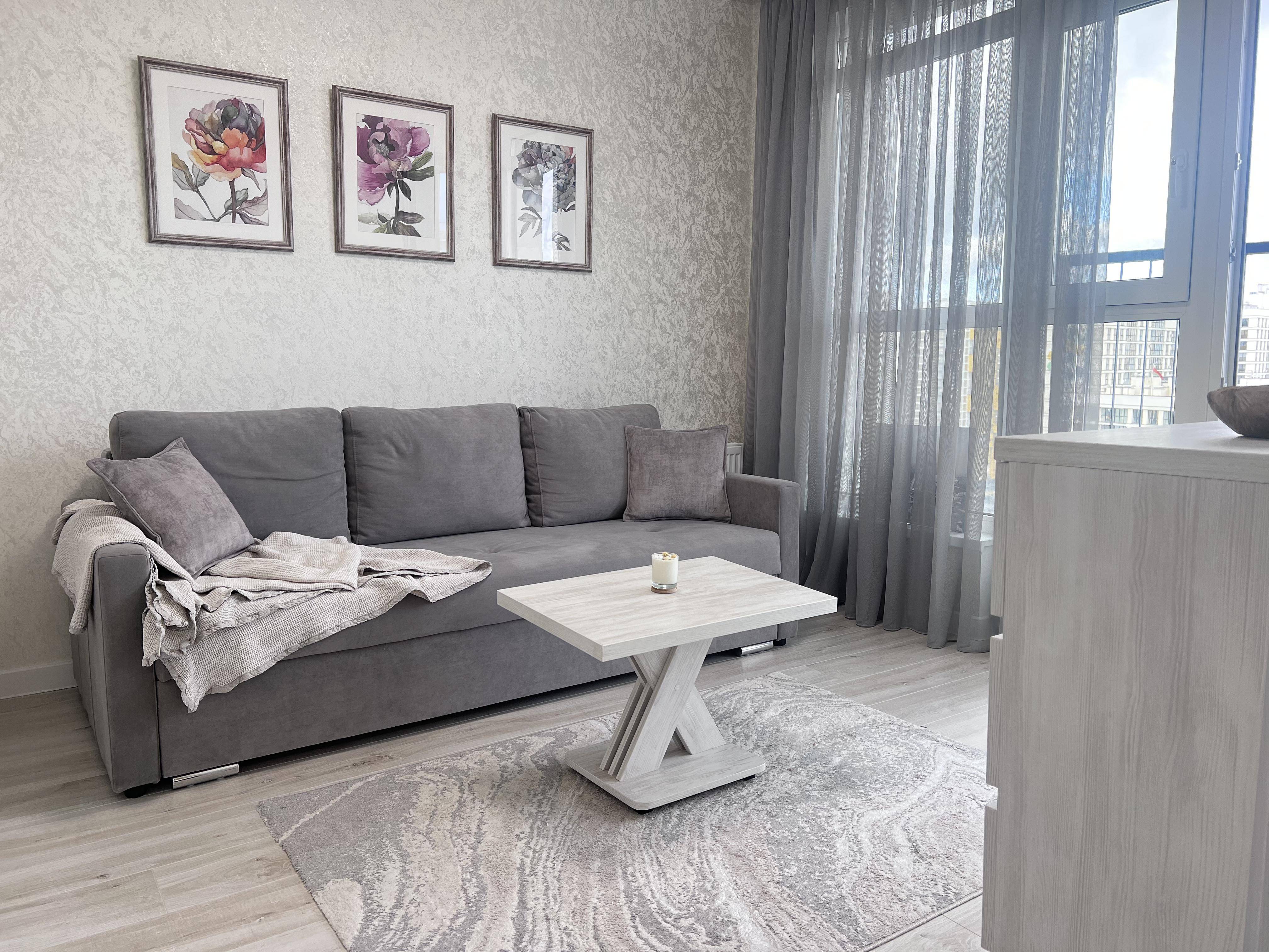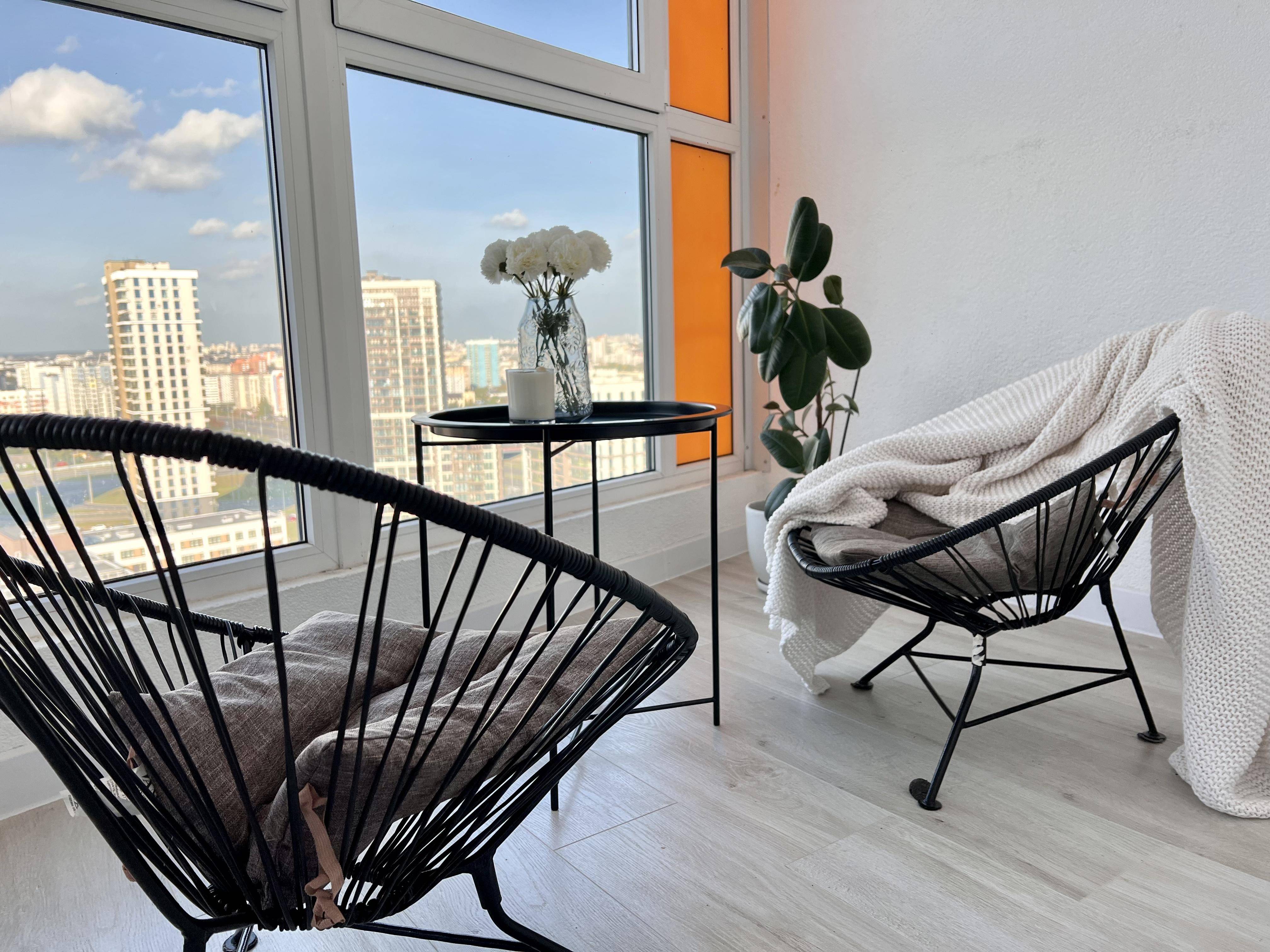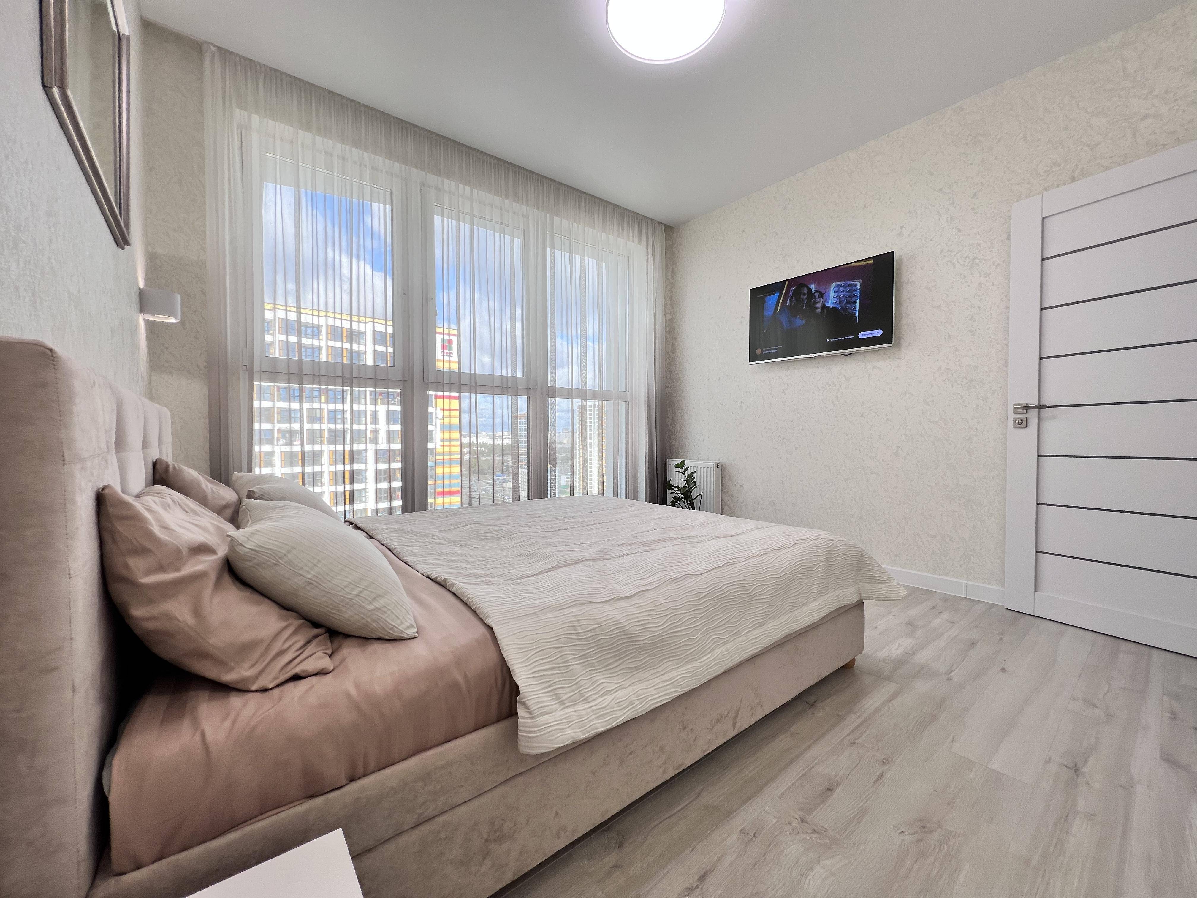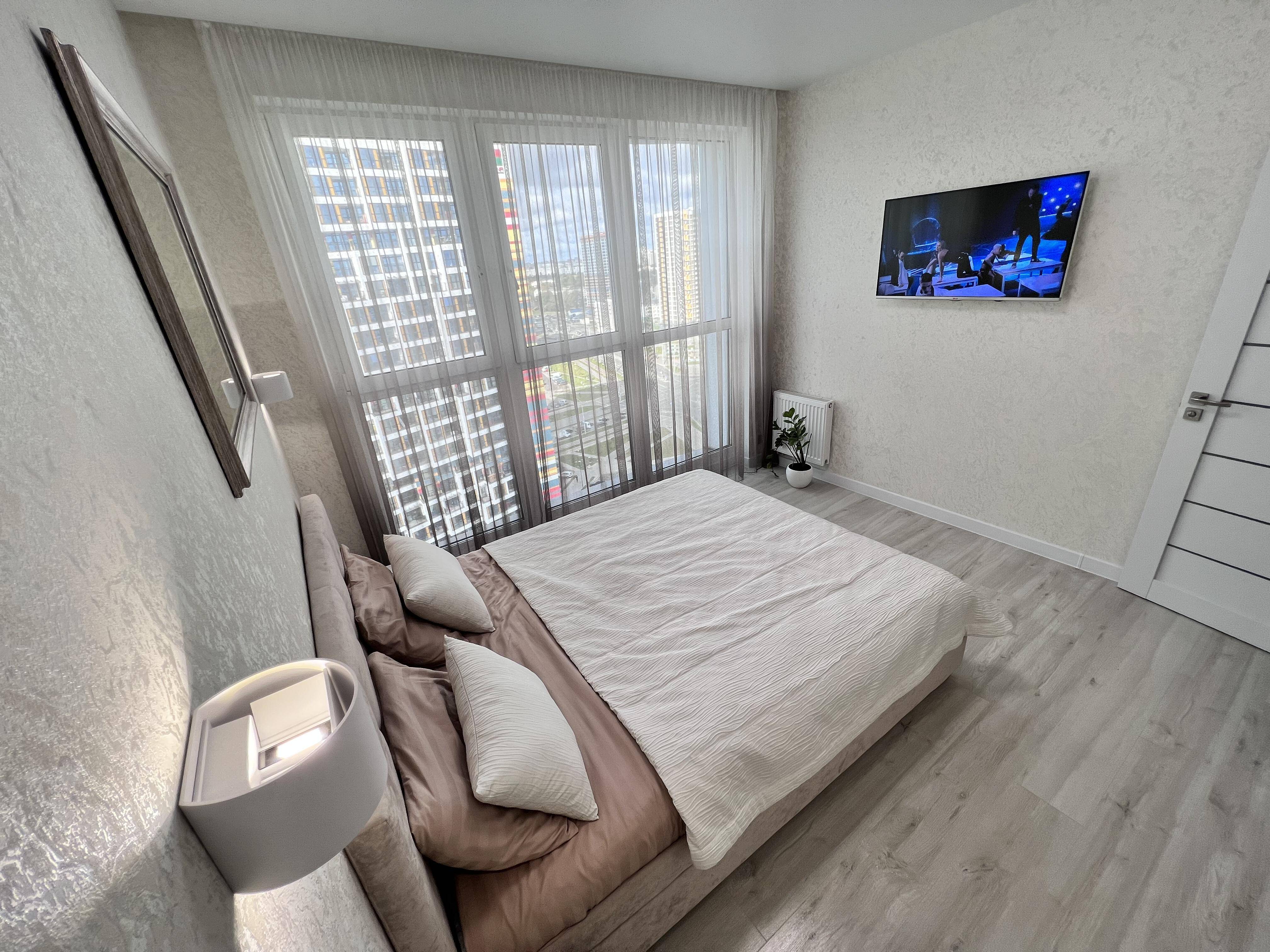 В каждой комнате открывается красивый вид на город прямо с кровати . До центра 7-10 минут на машине, во дворе большая парковка. 7 минут пешком до метро Ковальская слобода (2 станции до центра), под окном автобусная остановка.