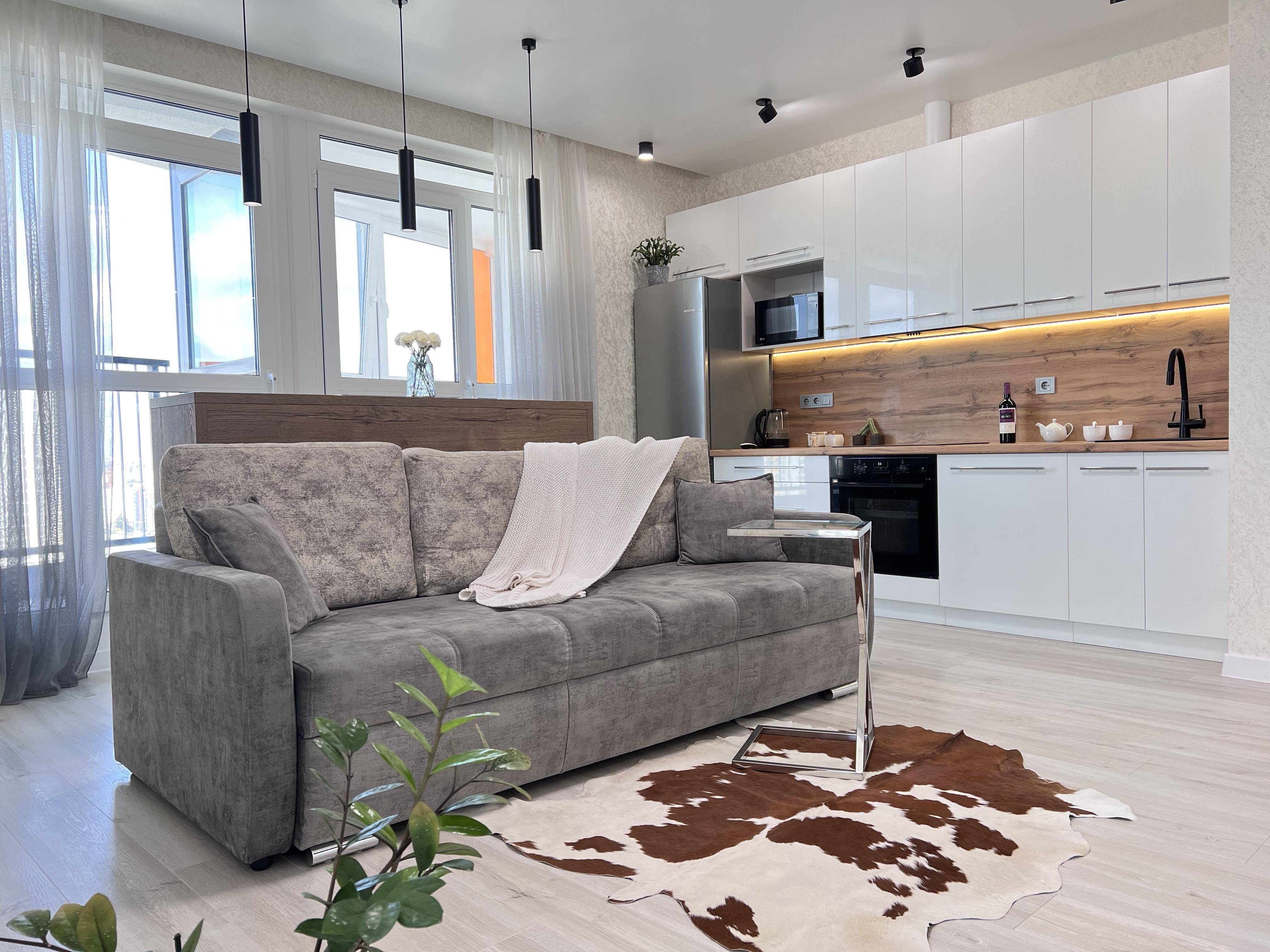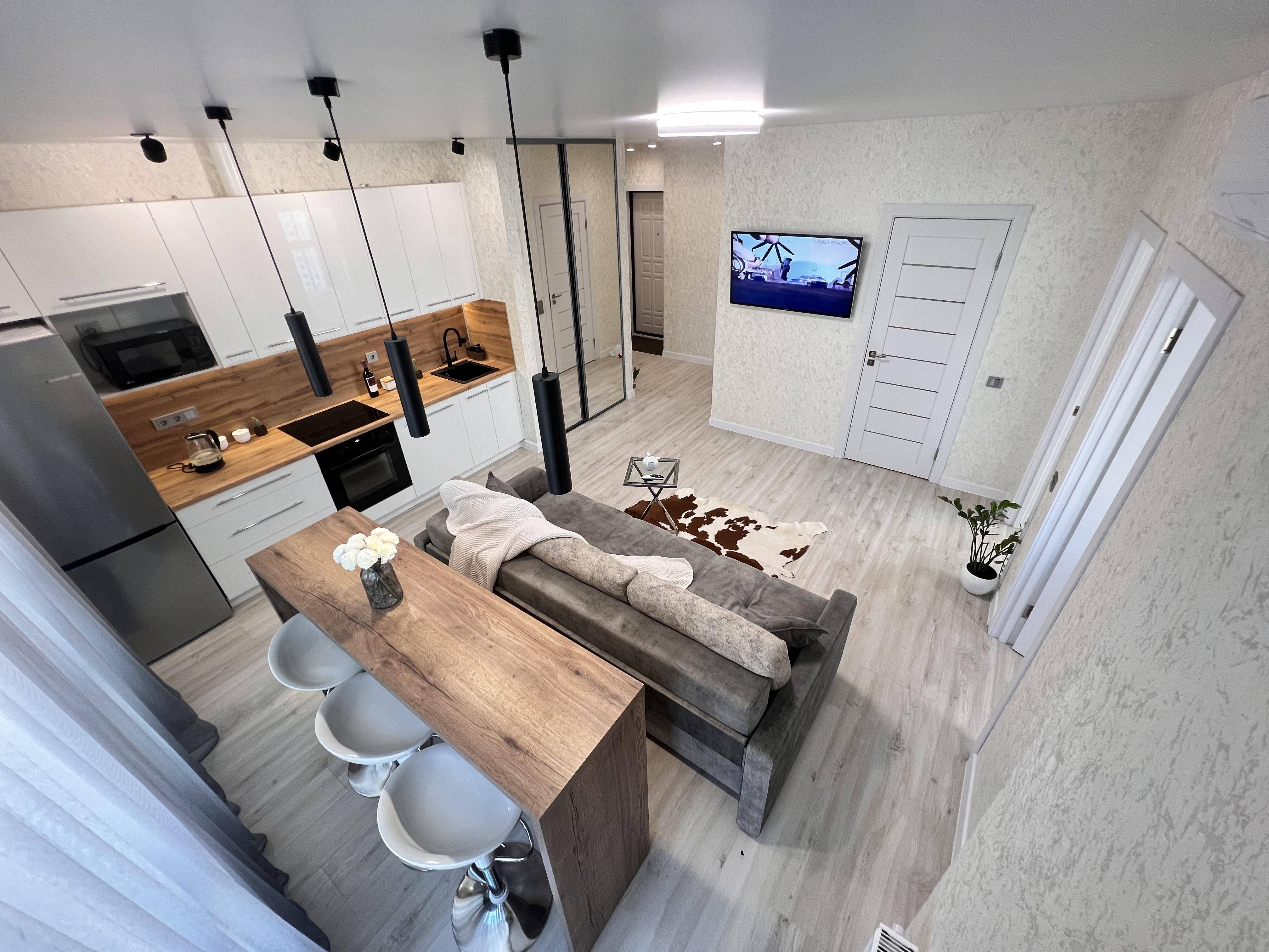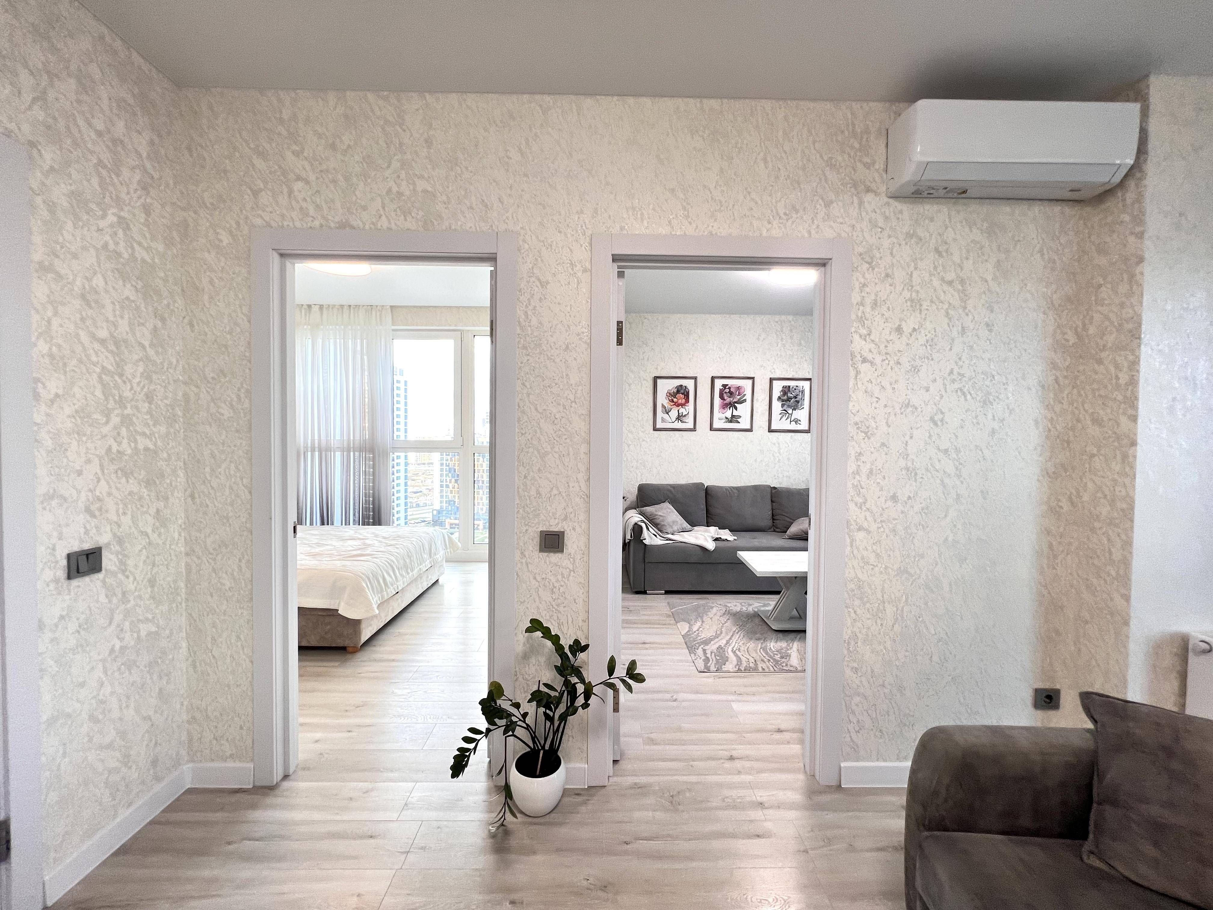 Двухкомнатная квартира ( две отдельные комнаты и кухня гостиная) с новым современным евроремонтом.