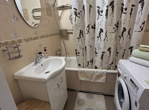 В квартире имеется все необходимое для проживания. СВЧ печь набор посуды ,чайник ,стир машина, Телевизор , скоростной интернет,ZALA , утюг ,фен , набор постельного белья ,полотенца ,шампунь . Через дорогу Дворец художественной гимнастики , Спа Ривьера