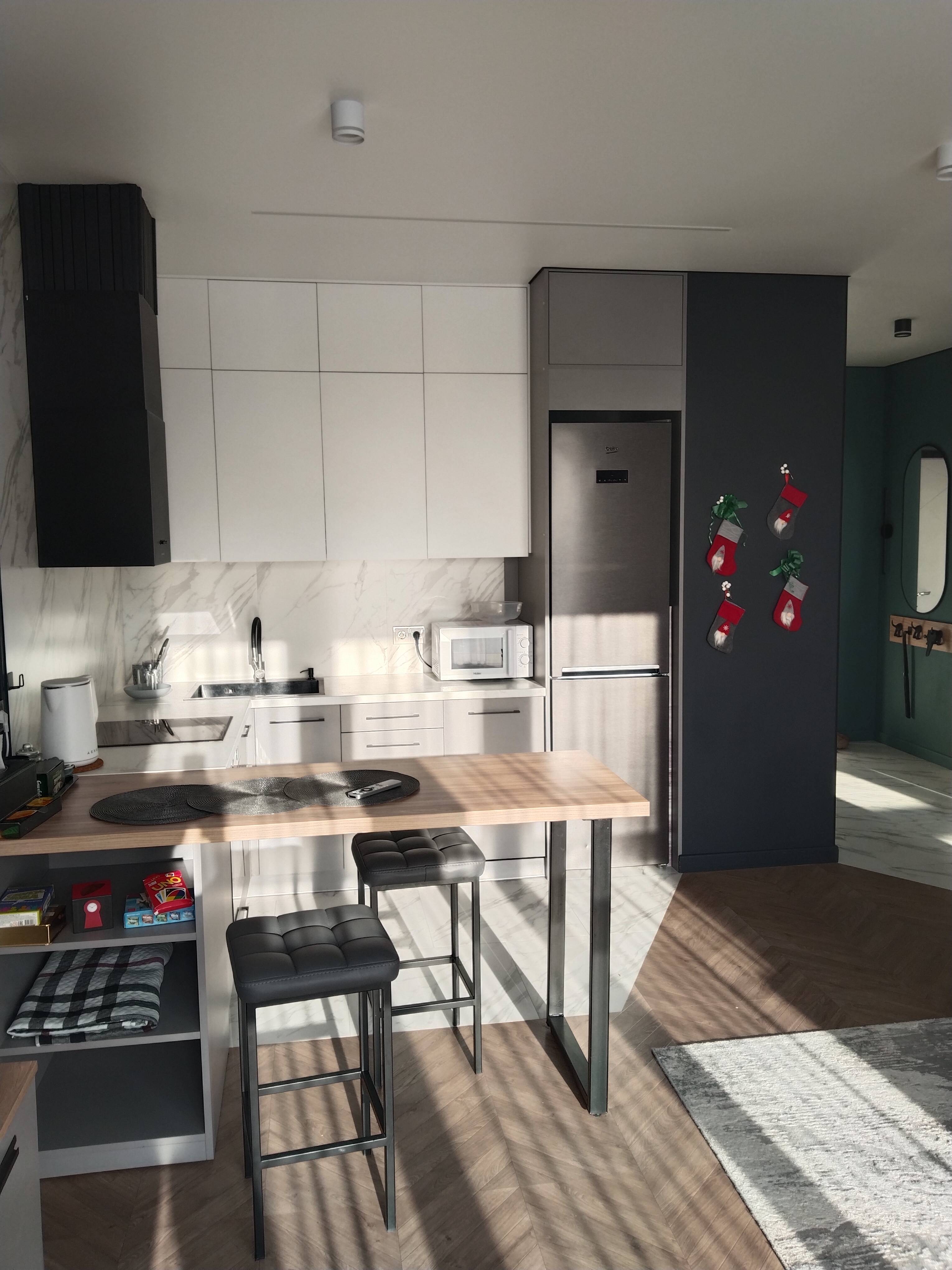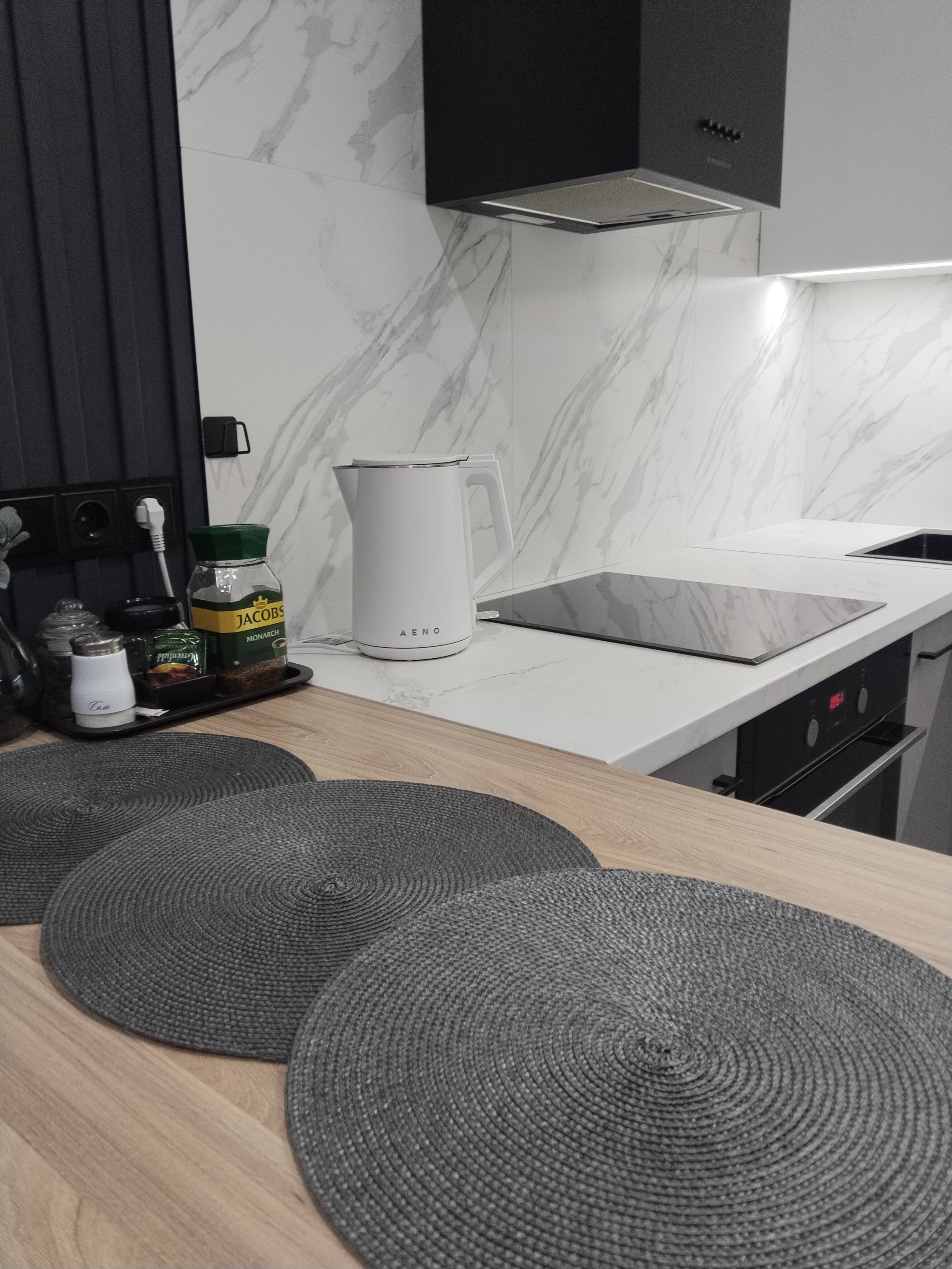 Добро пожаловать в уютную евродвушку для вашего пребывания! Апартаменты предлагают современный дизайн. Благодаря функциональной планировке пространство использовано максимально эффективно. Есть всё необходимое: посуда, столовые приборы, утюг, фен, гель для стирки и таблетки для посудомоечной машины, чай, кофе. Около дома расположена пиццерия, кафе, современная детская площадка. Заселение с питомцами - по запросу за дополнительную плату.