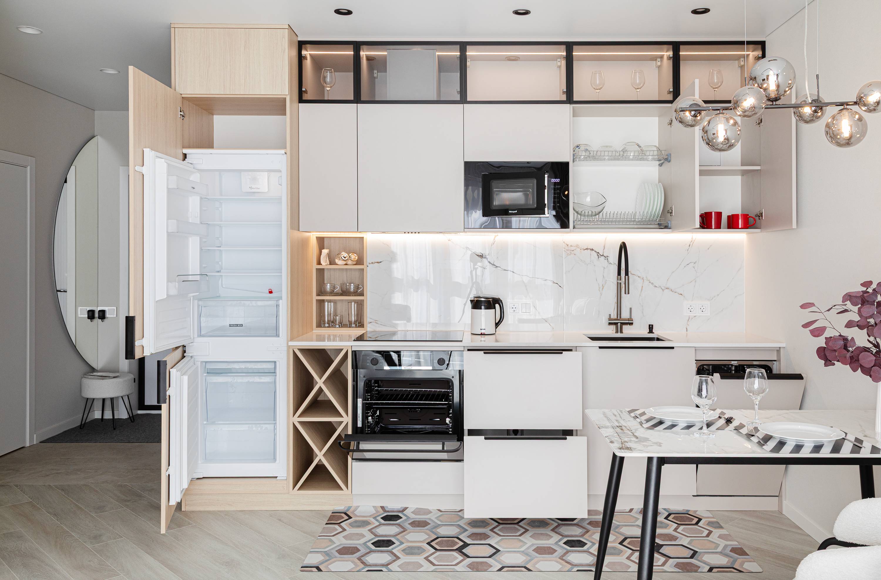 Квартира оборудована всем необходимым для комфортного проживания: идеальная чистота, удобные спальные места (двух спальная кровать с ортопедическим матрасом+ двух спальный раскладной диван), Wi-Fi, смарт ТВ телевизор, холодильник, СВЧ, электрочайник, стиральная машина, утюг, посудомойка, кондиционер.