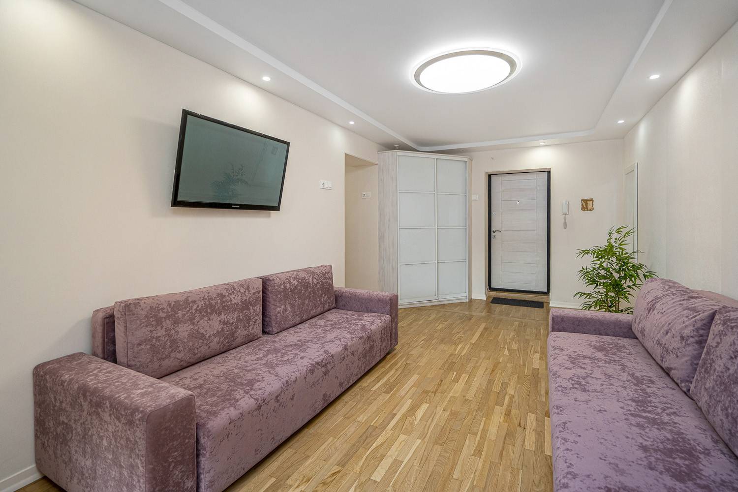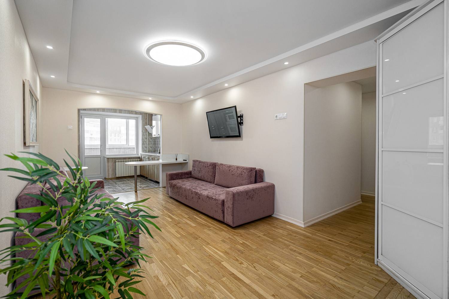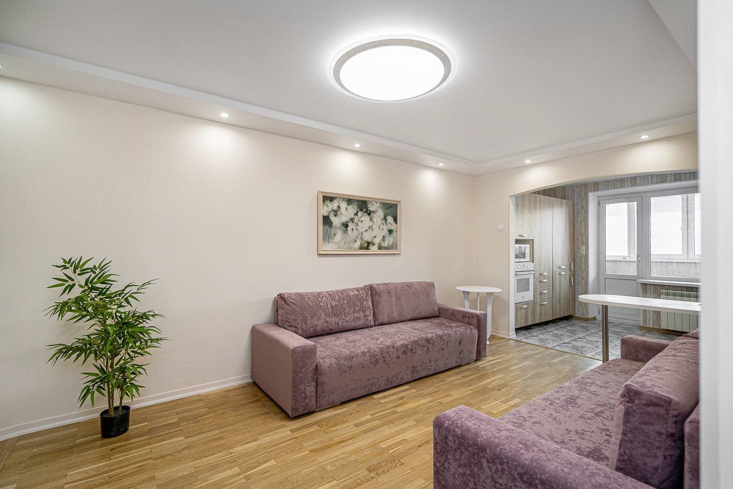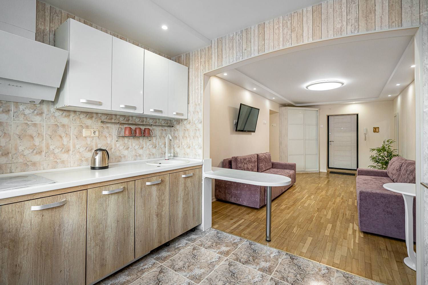 Светлая студия в самом центре Минска. Большая кровать, удобный диван. Кухня полностью обустроена всем необходимым. Проживание понравилось.