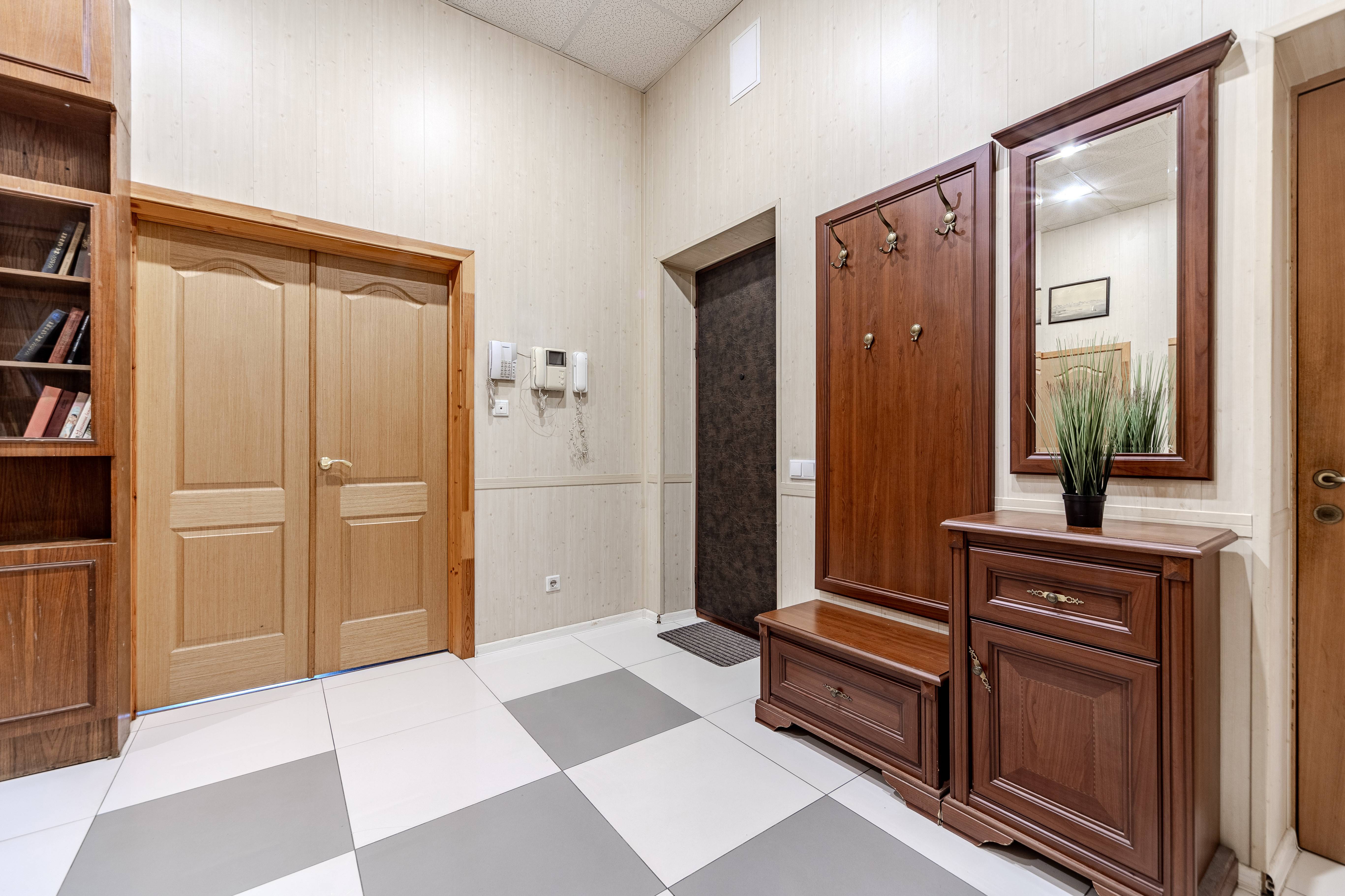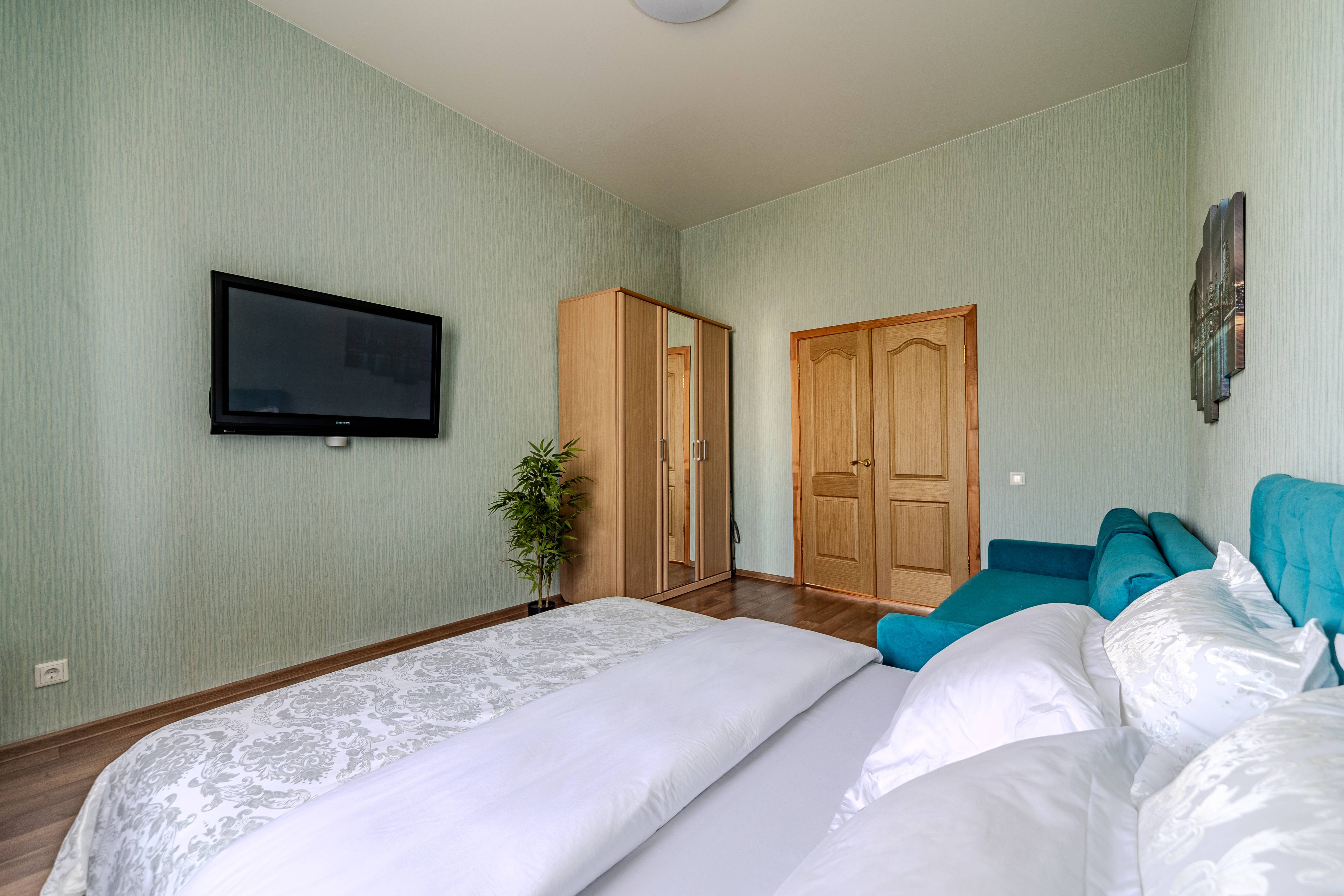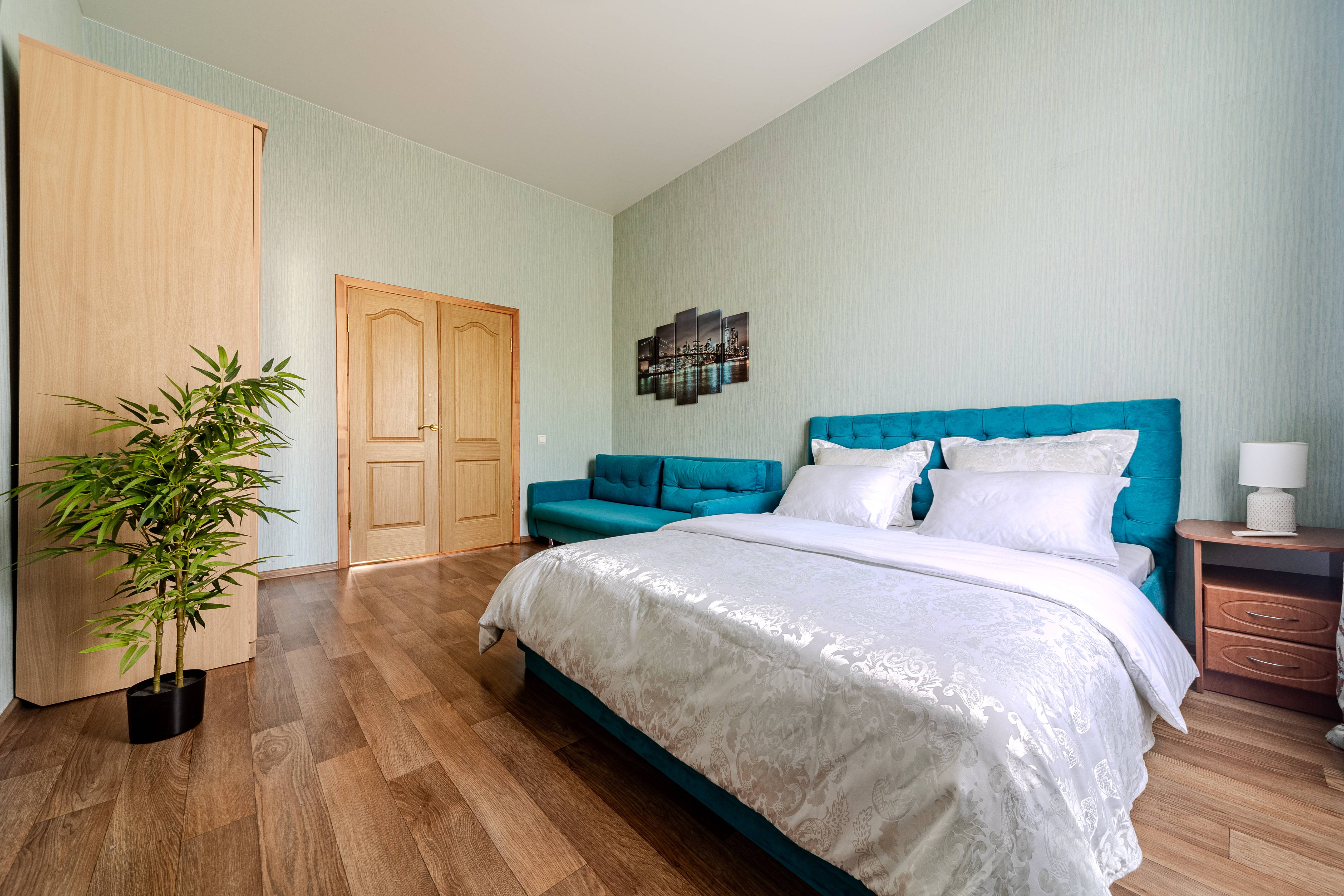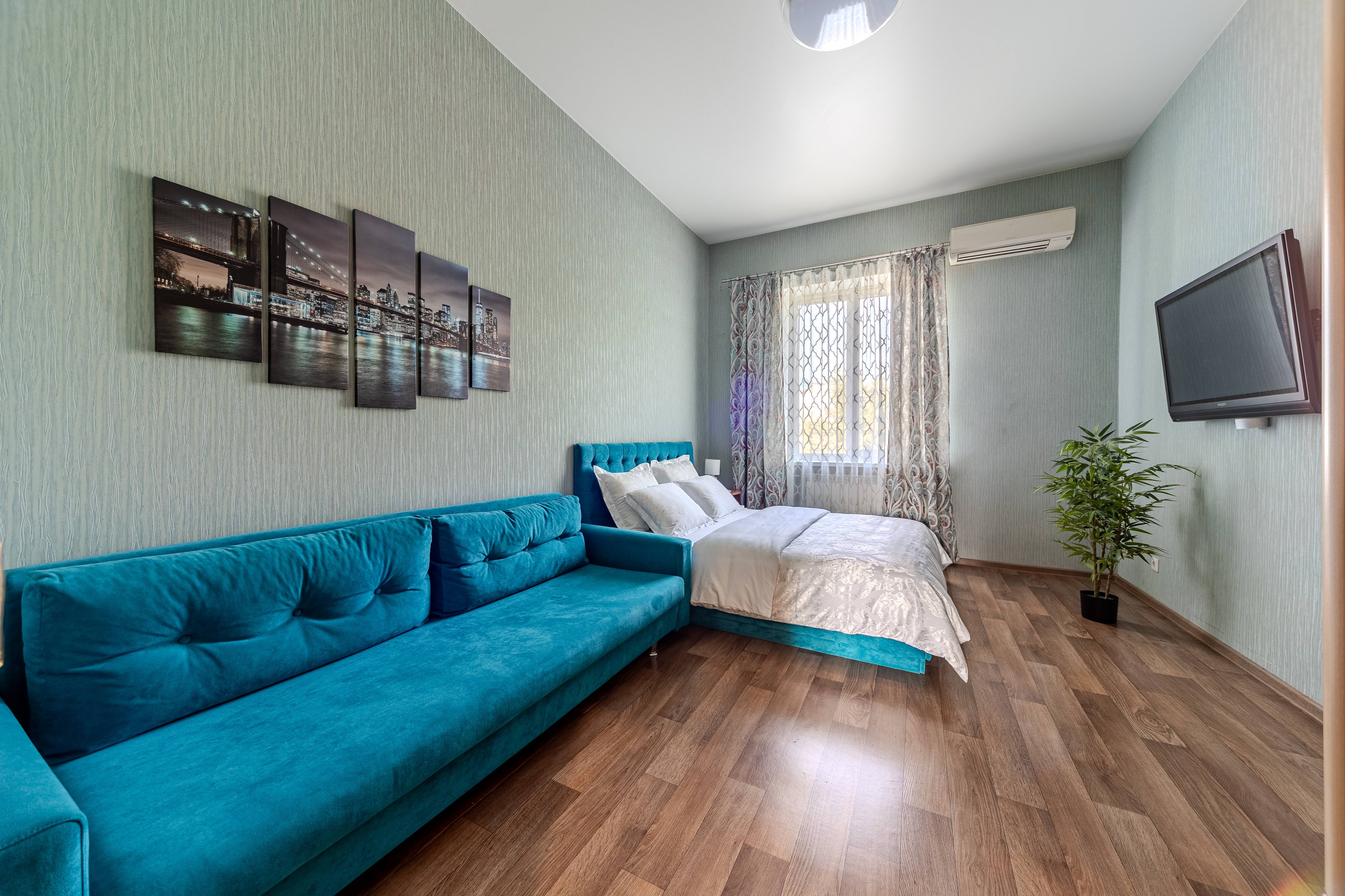 В квартире три изолированных спальни, каждая из которых оборудована большой двуспальной кроватью, что обеспечит вам спокойный и комфортный отдых. Просторная гостиная оформлена в современном стиле и является идеальным местом для общения и отдыха после насыщенного дня.