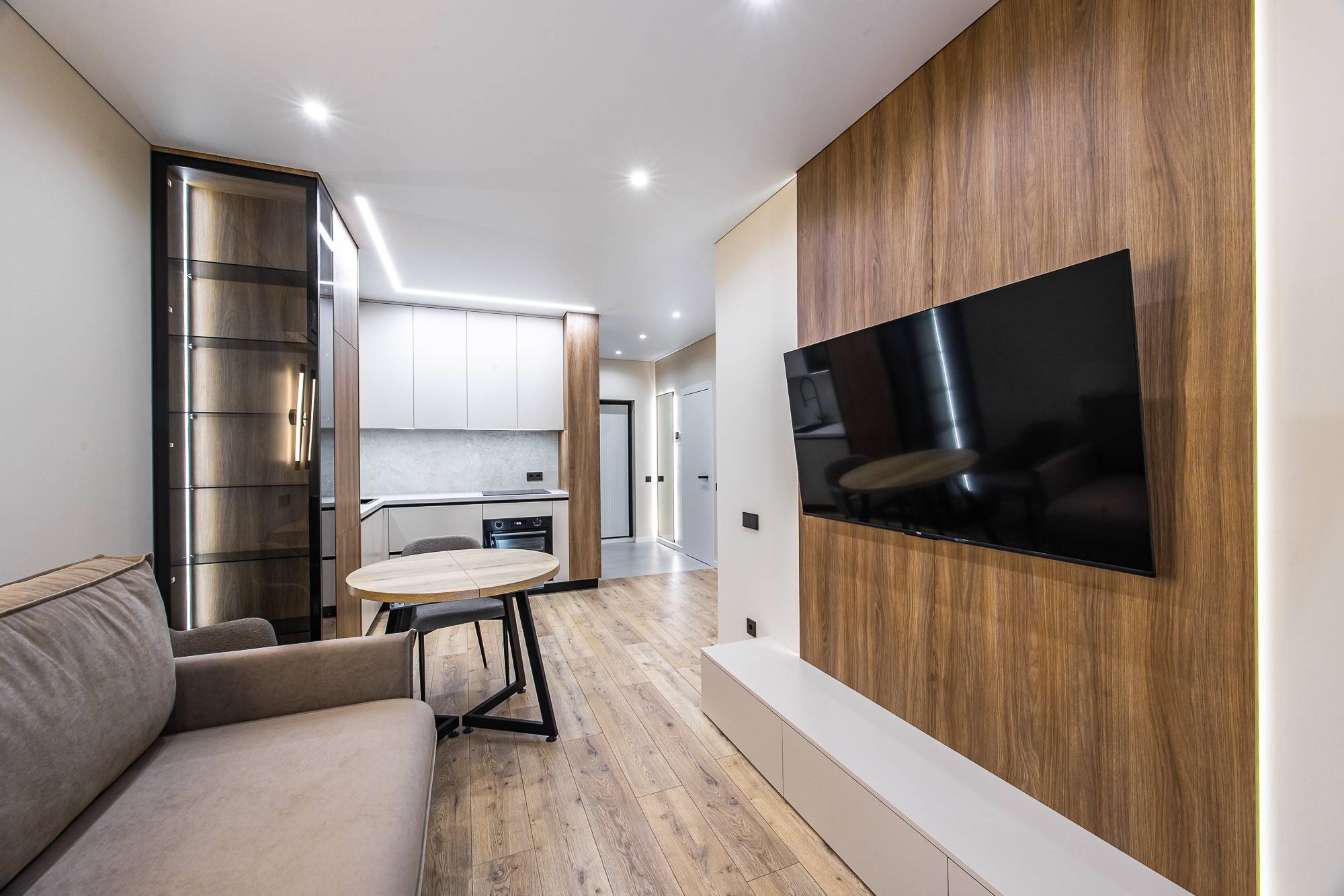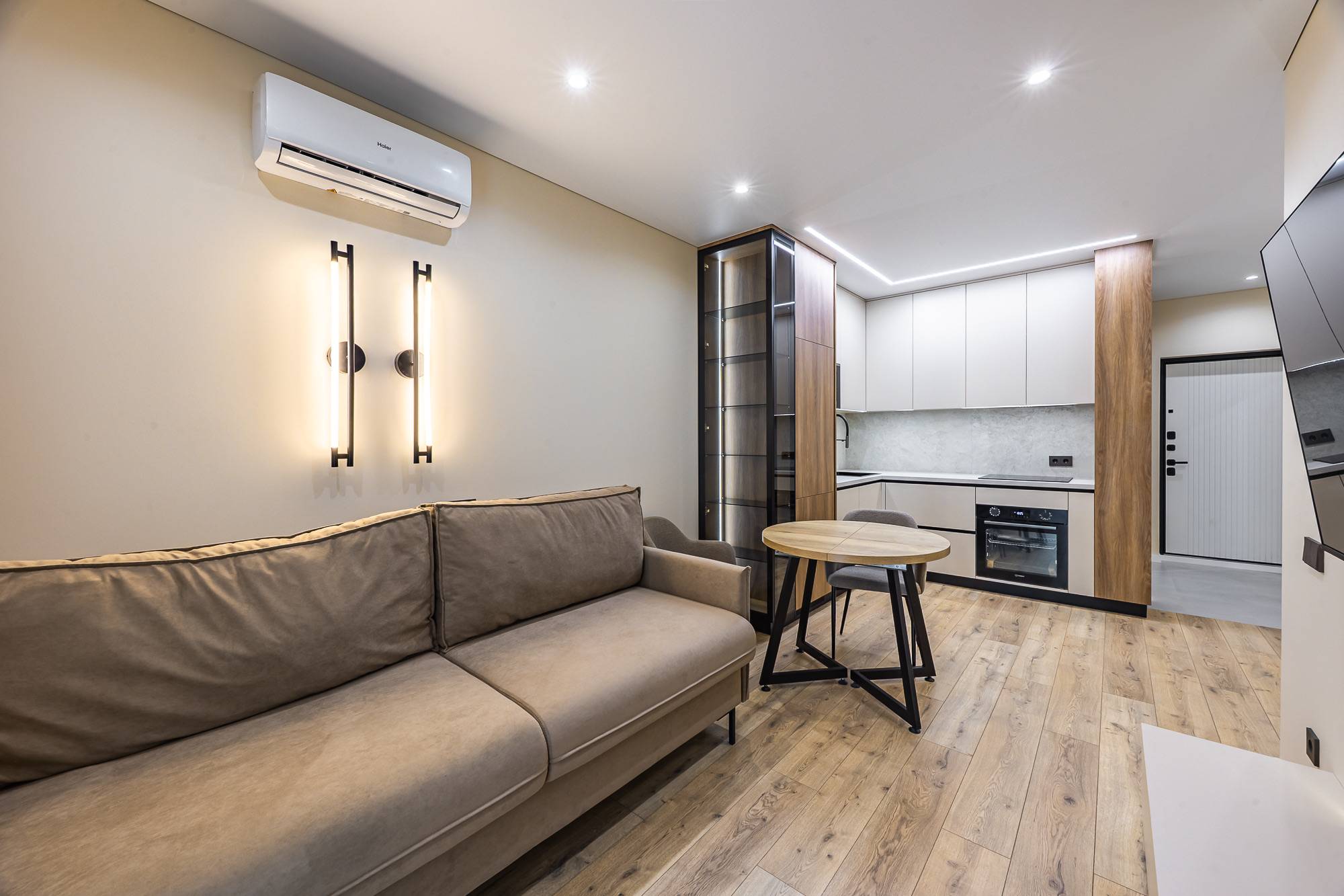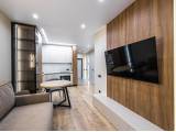 с ортопедическим матрасом и раздвижной диван. Телевизор, кондиционер, чайник, посуда, микроволновая печь, Wi-Fi, индукционная плита, духовой шкаф, холодильник, посудомоечная машина, уборочный инвентарь, стиральная машина, гладильная доска, утюг, фен, полотенца, постельное белье, гель для стирки, шампунь, кондиционер.