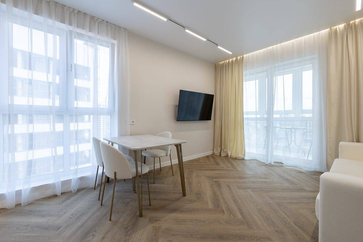 с ортопедическим матрасом, диван-кровать и раздвижной диван. Телевизор, кондиционер, чайник, посуда, микроволновая печь, Wi-Fi, индукционная плита, духовой шкаф, холодильник, посудомоечная машина, уборочный инвентарь, стиральная машина, гладильная доска, утюг, фен, полотенца, постельное белье, гель для стирки, шампунь, кондиционер.