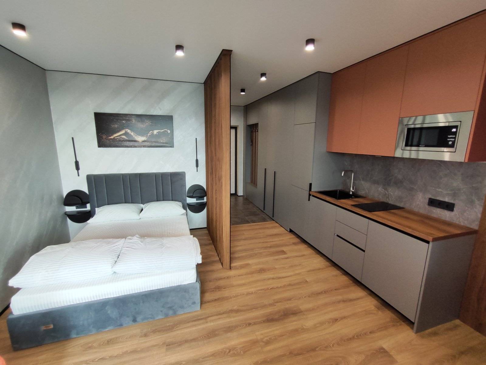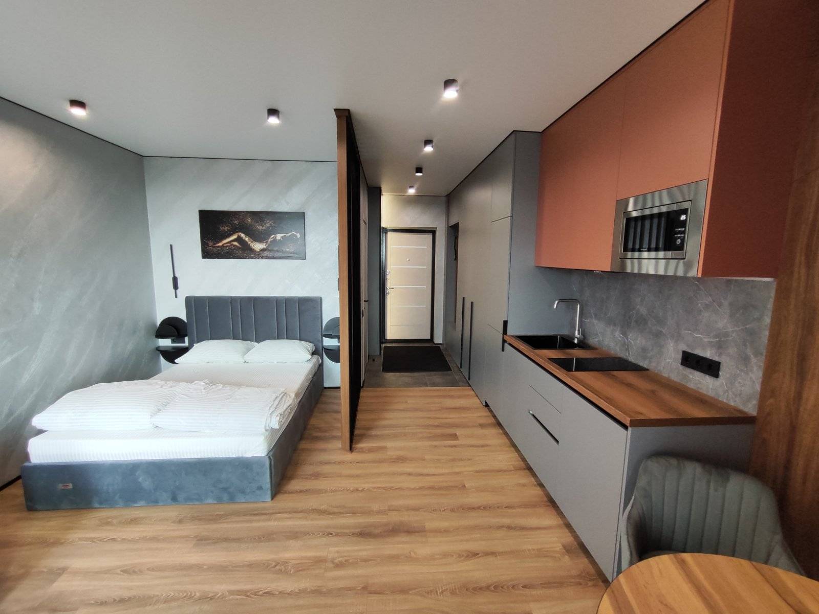 Сдается уютная квартира-студия в современном жилом комплексе minsk world, расположенная на 23 этаже. Из панорамных окон и просторной лоджии открывается восхитительный вид на город, особенно прекрасный вечером, когда зажигаются огни иллюминации - идеальное место, чтобы насладиться чашкой ароматного кофе или чая. Квартира комфортно вмещает до 4 человек, прекрасно подходя как для пары или семьи, так и для небольшой компании друзей или коллег. Мы тщательно продумали все детали и оснастили квартиру всем необходимым для вашего удобства, чтобы вы могли сосредоточиться на отдыхе или работе.