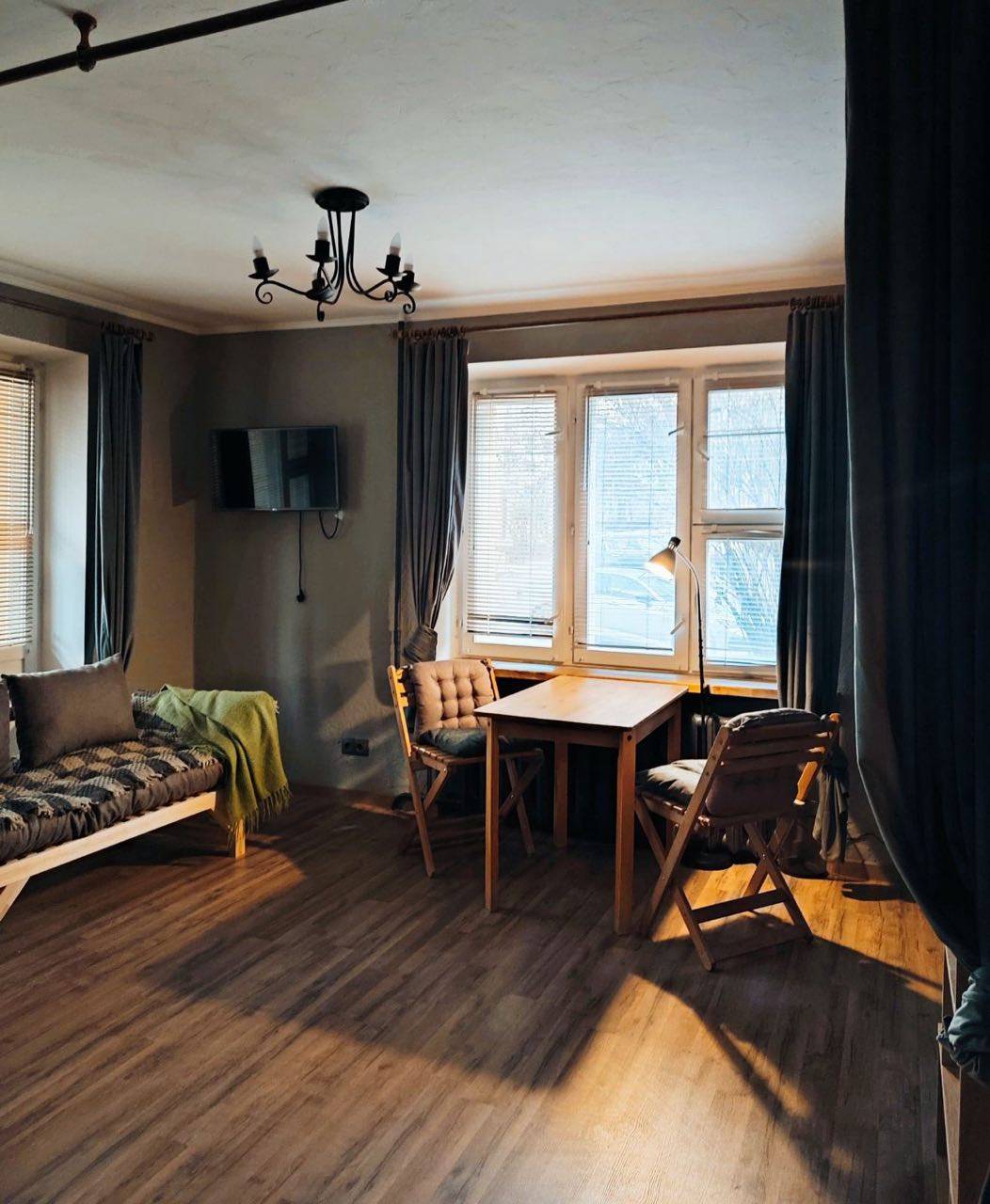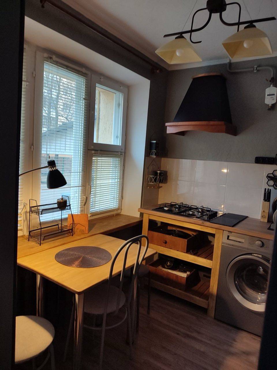 Квартира оснащена всем необходимым для комфортного проживания: встроенная кухня, обеденный стол и стулья, холодильник, варочная панель, стиральная машина.