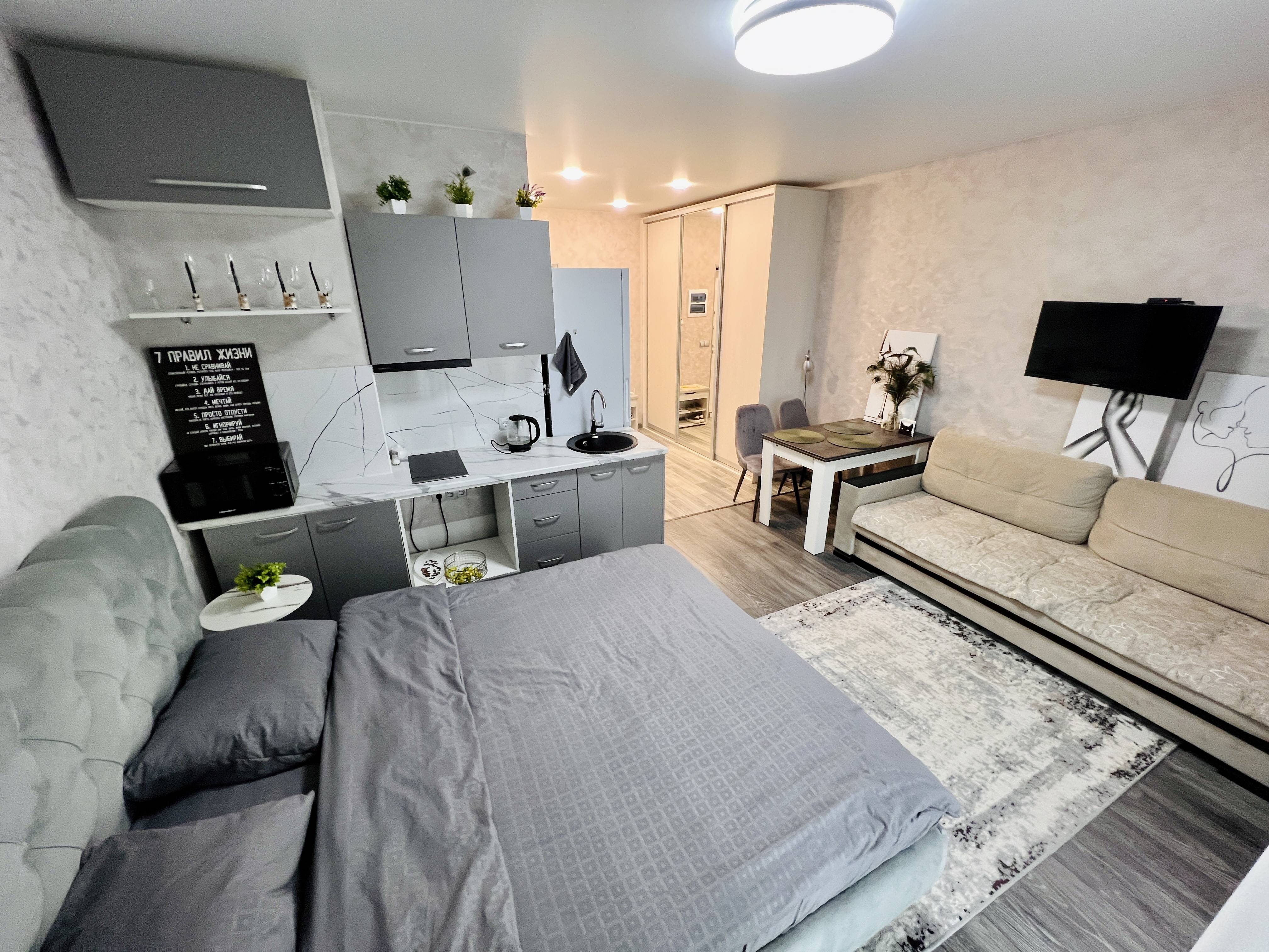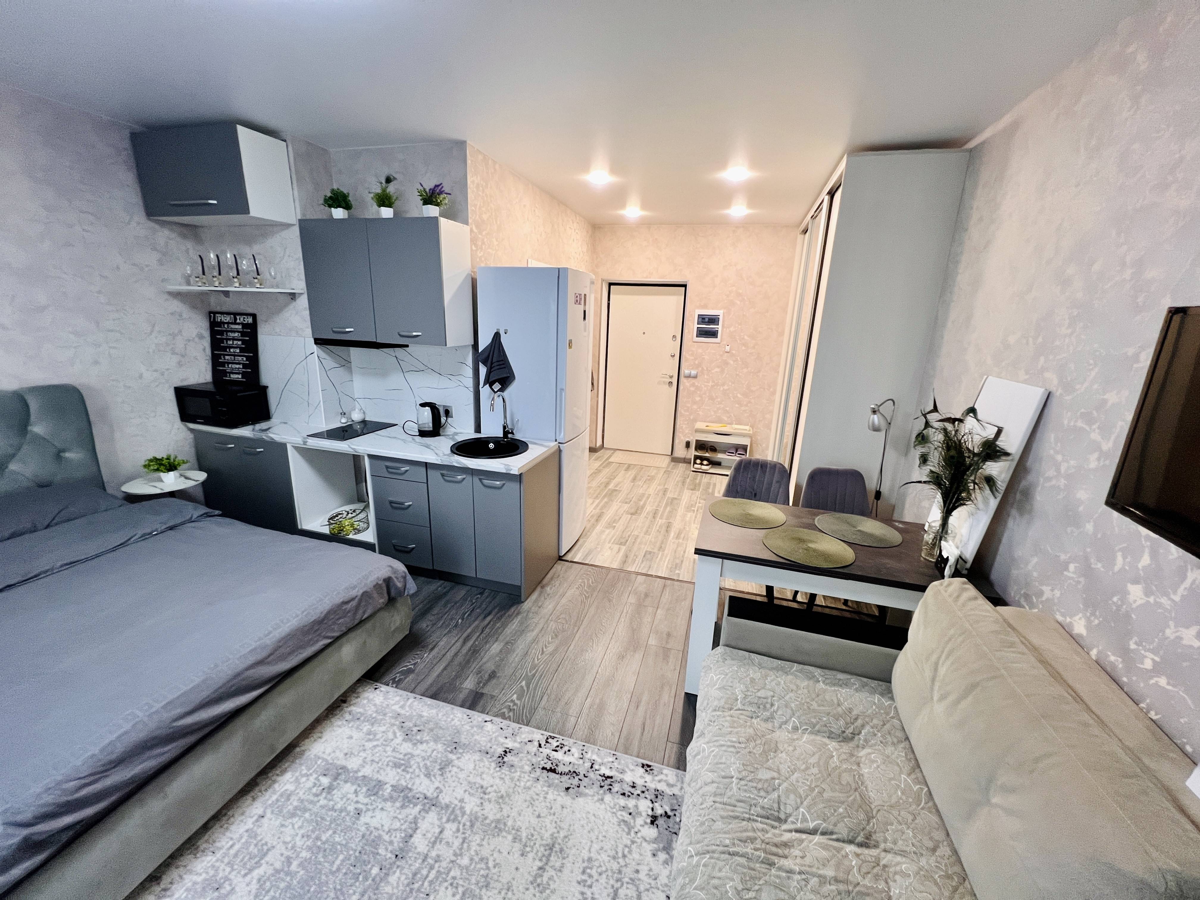 Удобное расположение! В доме есть продуктовый магазин, кофейня со вкусными десертами. До остановки общественного транспорта 3 минуты!