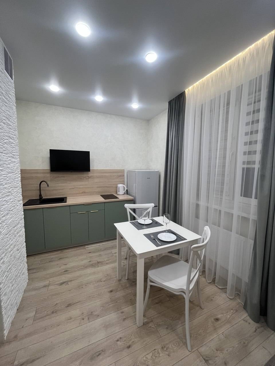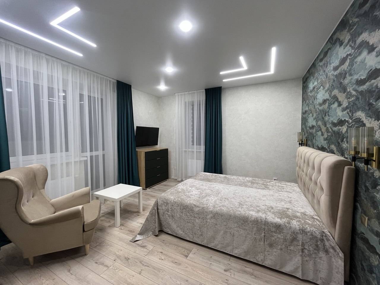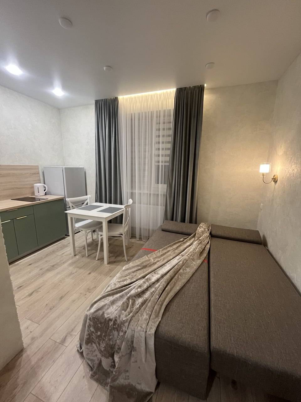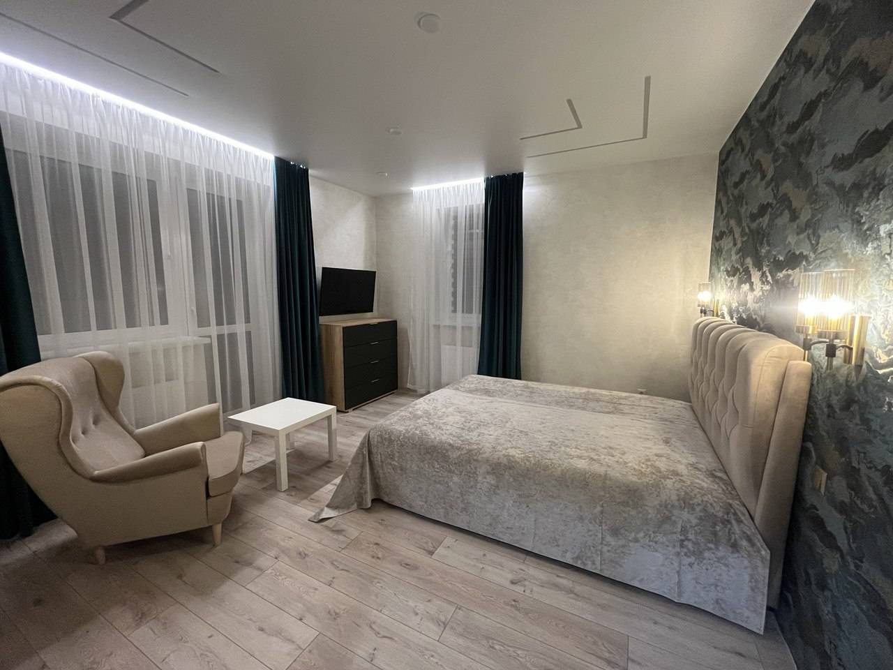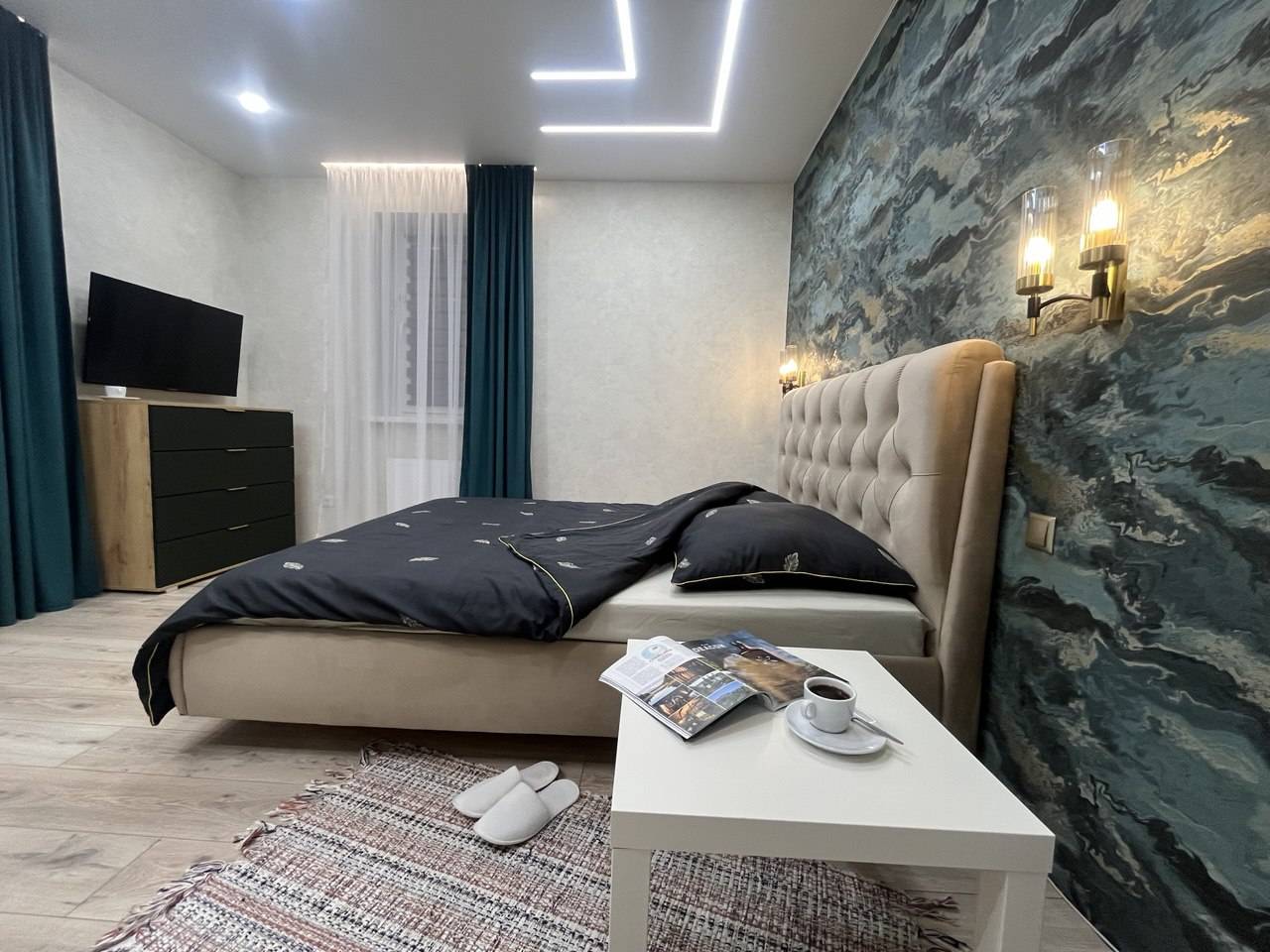 В квартире есть всё необходимое для проживания. Вся новая бытовая техника: холодильник, электрочайник, микроволновая печь, электроплита, фен, утюг, гладильная доска, плазменный новый телевизор SmartTV с выходом в интернет, безлимитный высокоскоростной wi-fi, удобная двуспальная кровать (1.6м×2м), новый двуспальный диван (1.5м × 2м), шторы блэкаут. Предоставляется постельное бельё, полотенца, туалетные принадлежности, средства для душа. Проживание с 22 лет!