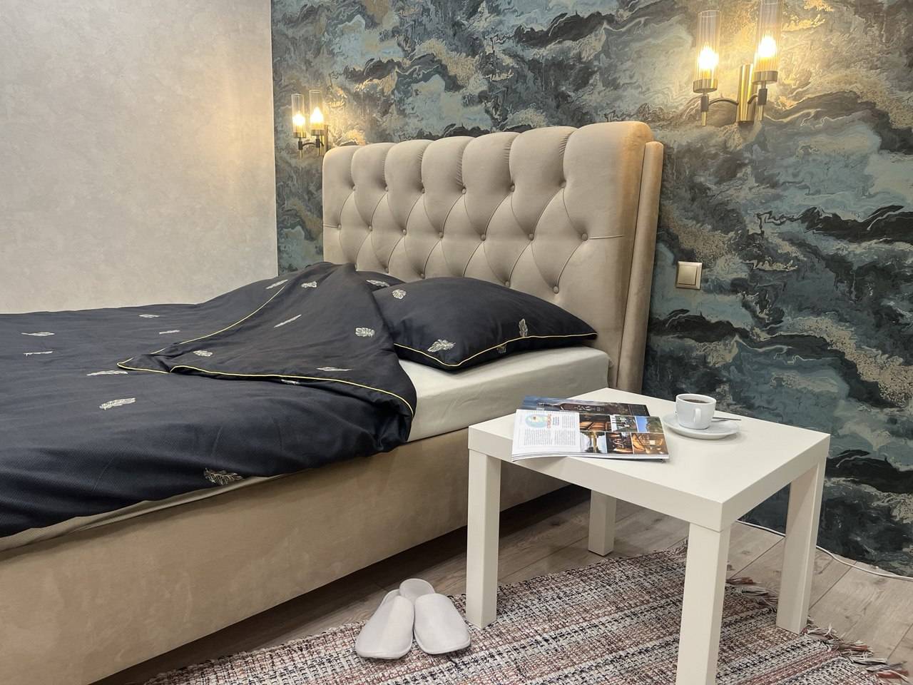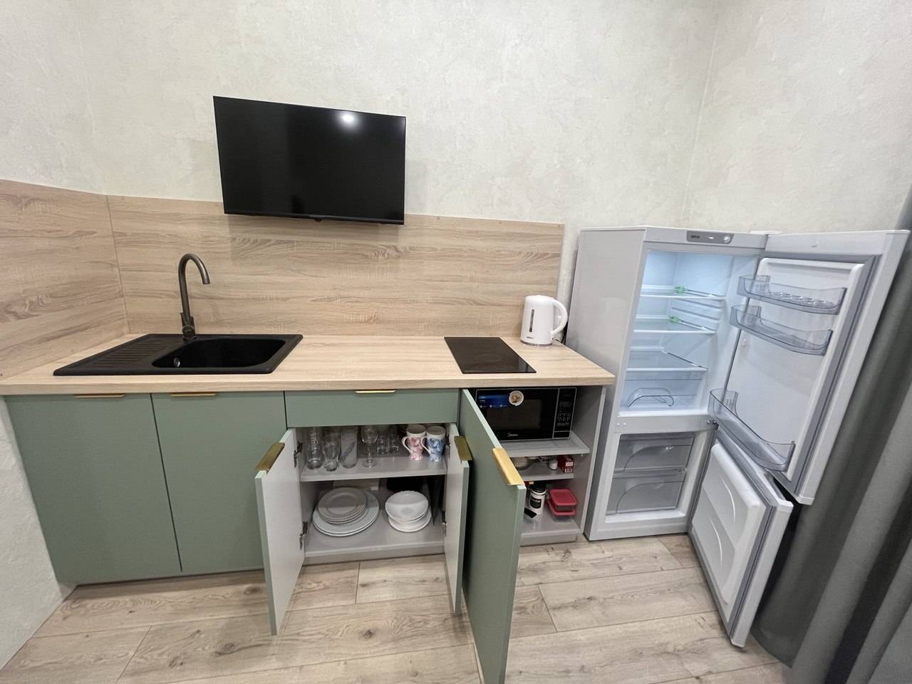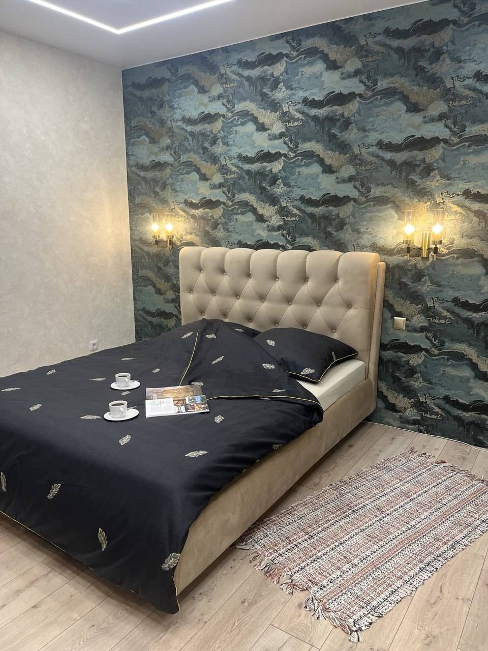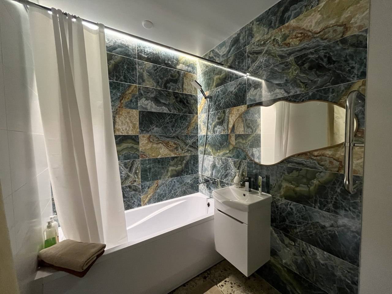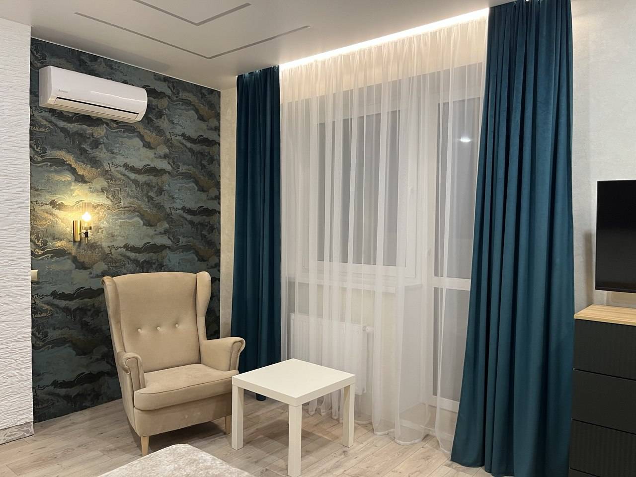 В квартире есть всё необходимое для проживания. Вся новая бытовая техника: холодильник, электрочайник, микроволновая печь, электроплита, фен, утюг, гладильная доска, плазменный новый телевизор SmartTV с выходом в интернет, безлимитный высокоскоростной wi-fi, удобная двуспальная кровать (1.6м×2м), новый двуспальный диван (1.5м × 2м), шторы блэкаут. Предоставляется постельное бельё, полотенца, туалетные принадлежности, средства для душа. Проживание с 22 лет!