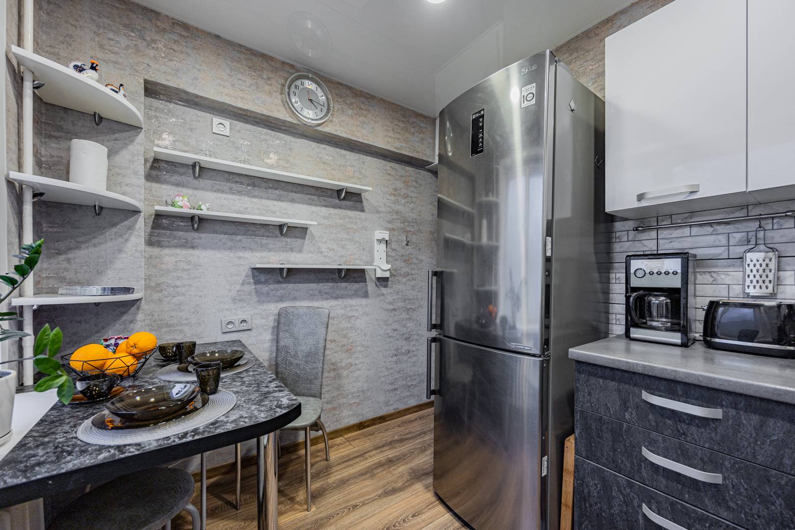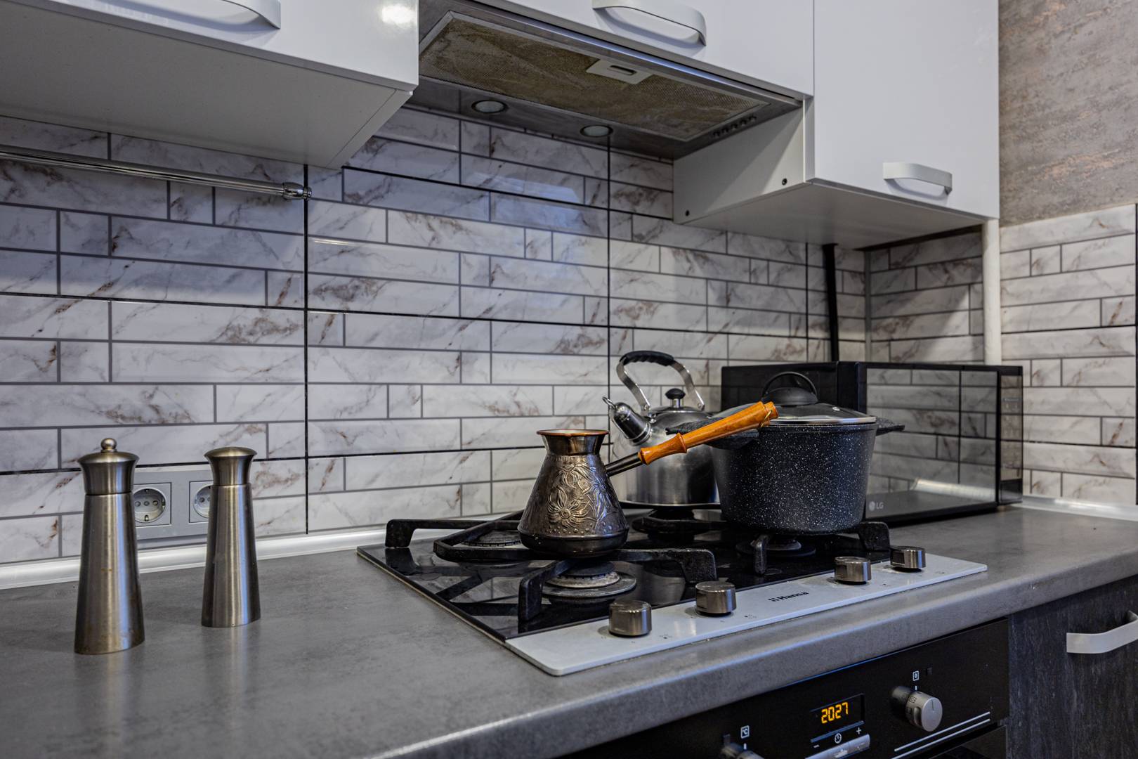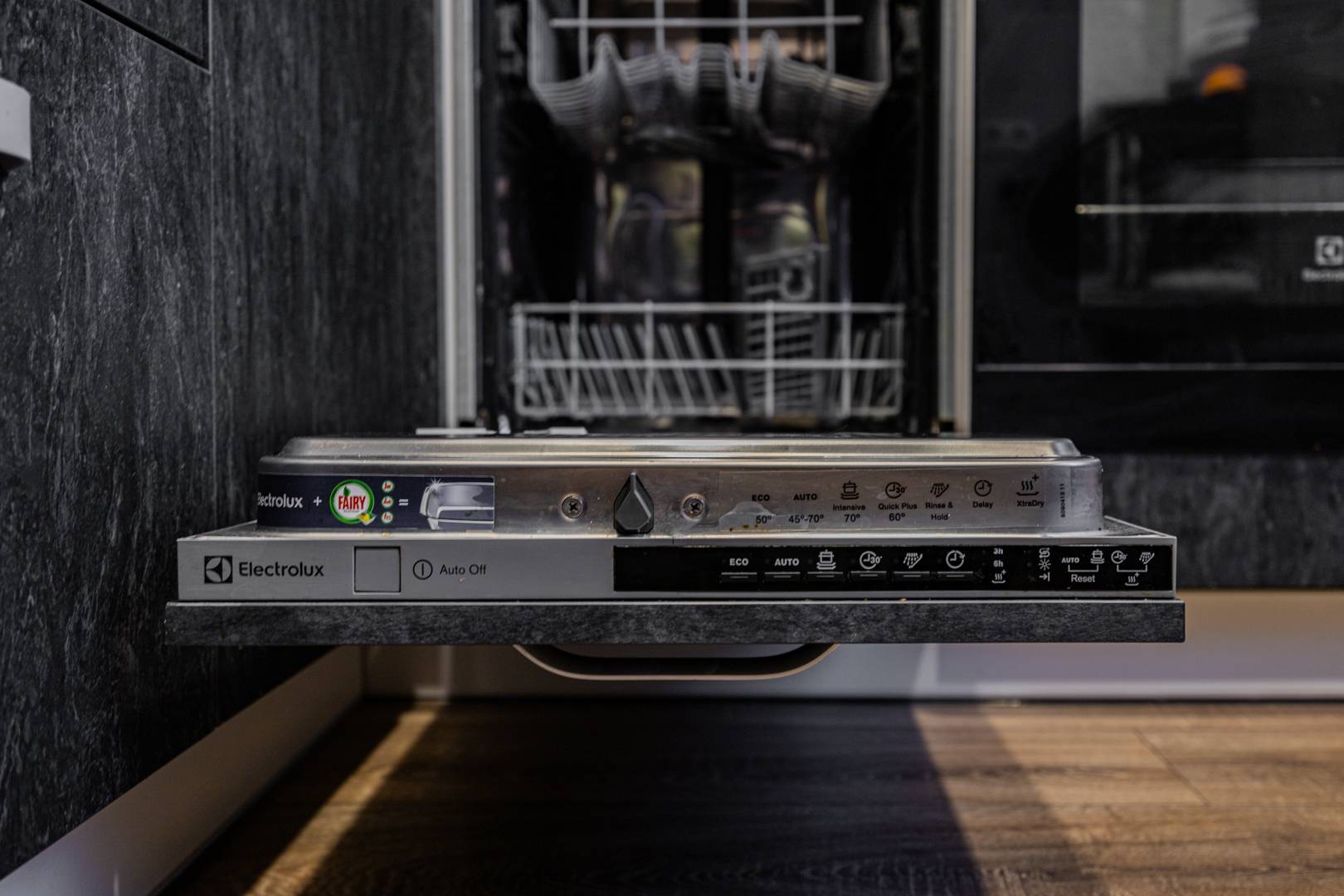 • Кухня полностью оборудована: газовая плита, электрическая духовка, микроволновка, кофеварка капельная, посудомоечная машина, тостер, холодильник, миксер, блендер, вся необходимая кухонная утварь.