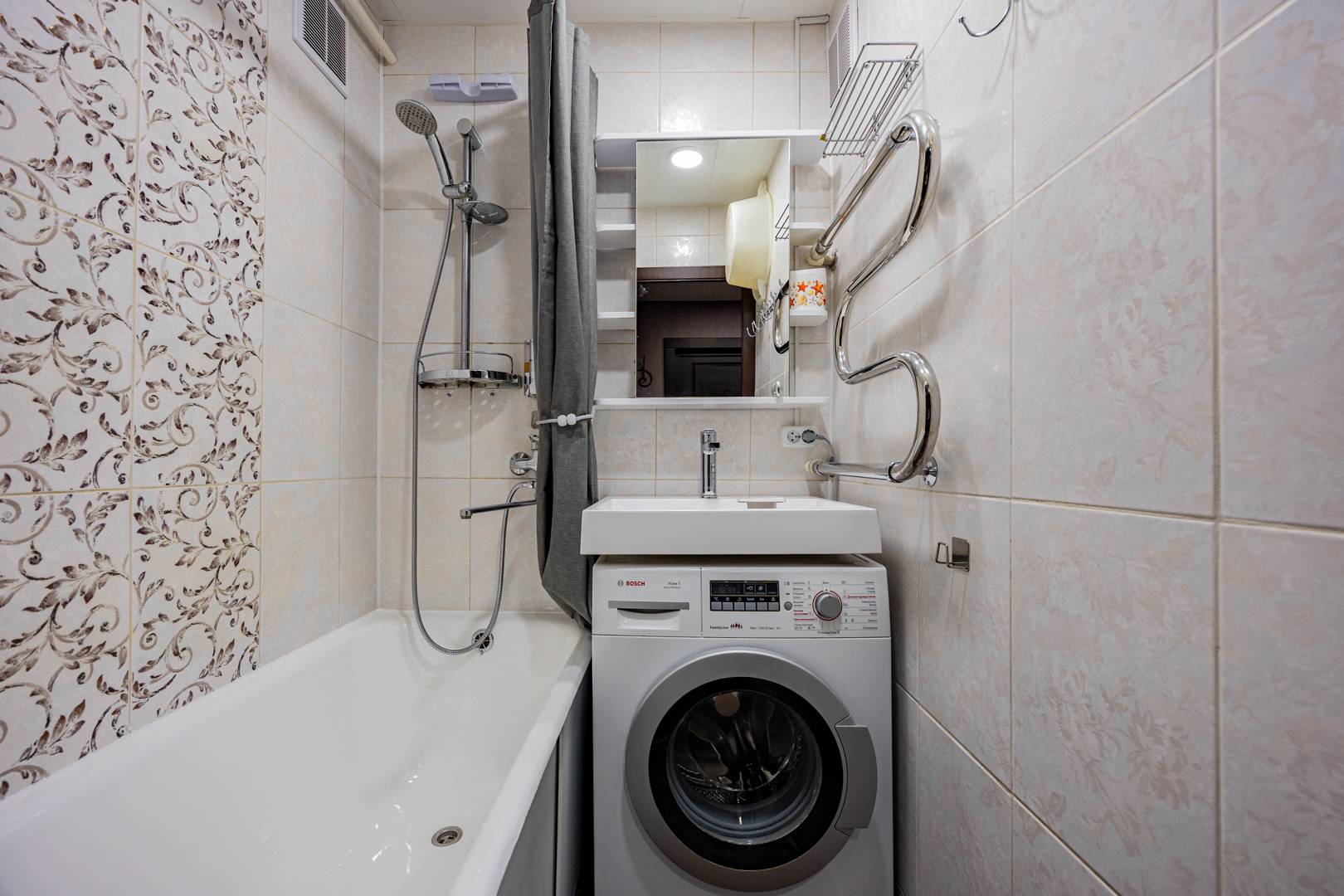 • Полный комплект посуды и столовых приборов. • Стиральная машина, утюг ,фен., к-т полотенец.