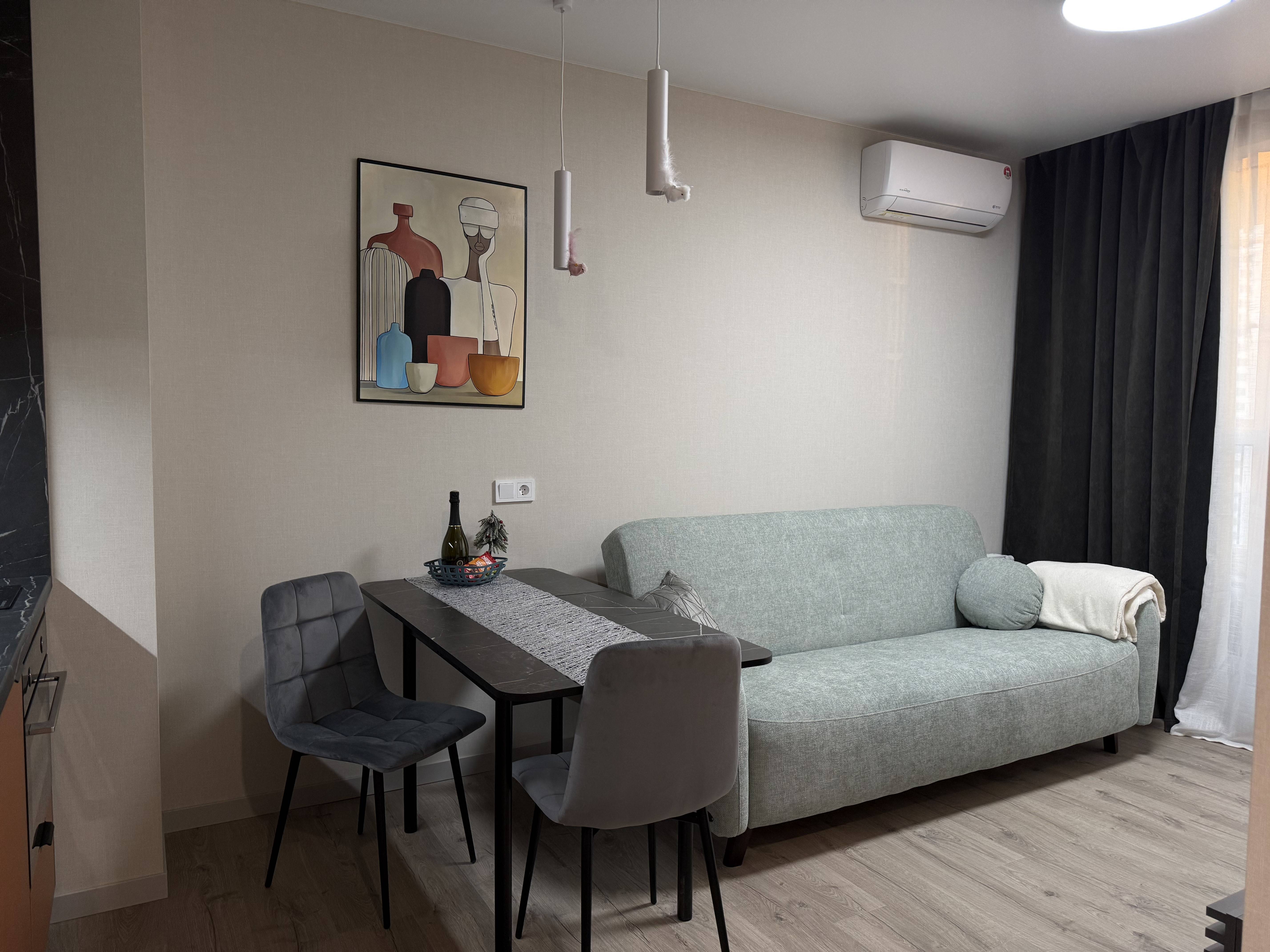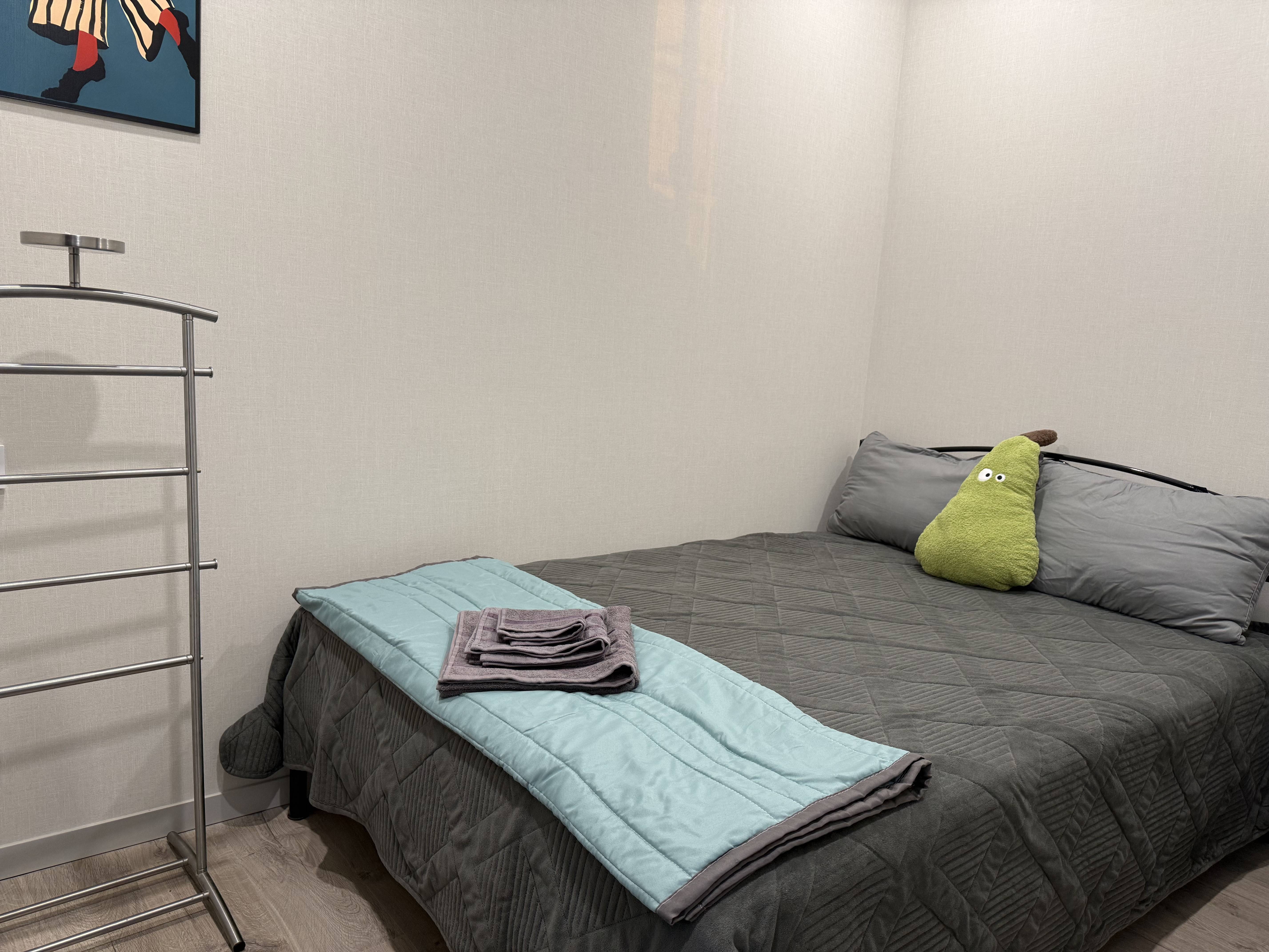 Новая,чистая и уютная квартира в двух минутах от метро.комфортный пятый этаж,окна выходят во двор.во дворе теннисный корт,детские и волейбольная площадка.на первом этаже дома два банка.в соседних домах барбершопы,кафетерии,магазины.через дорогу от дома торговый центр Авиамол.в квартире есть все необходимое для комфортного проведения времени.гигиенические одноразовые принадлежности входят в стоимость.основное спальное место находится за перегородкой,что дает возможность проводить комфортно время сна.кровать с ортопедическим матрасом 140/200,дополнительное спальное место диван-кровать 135/195.