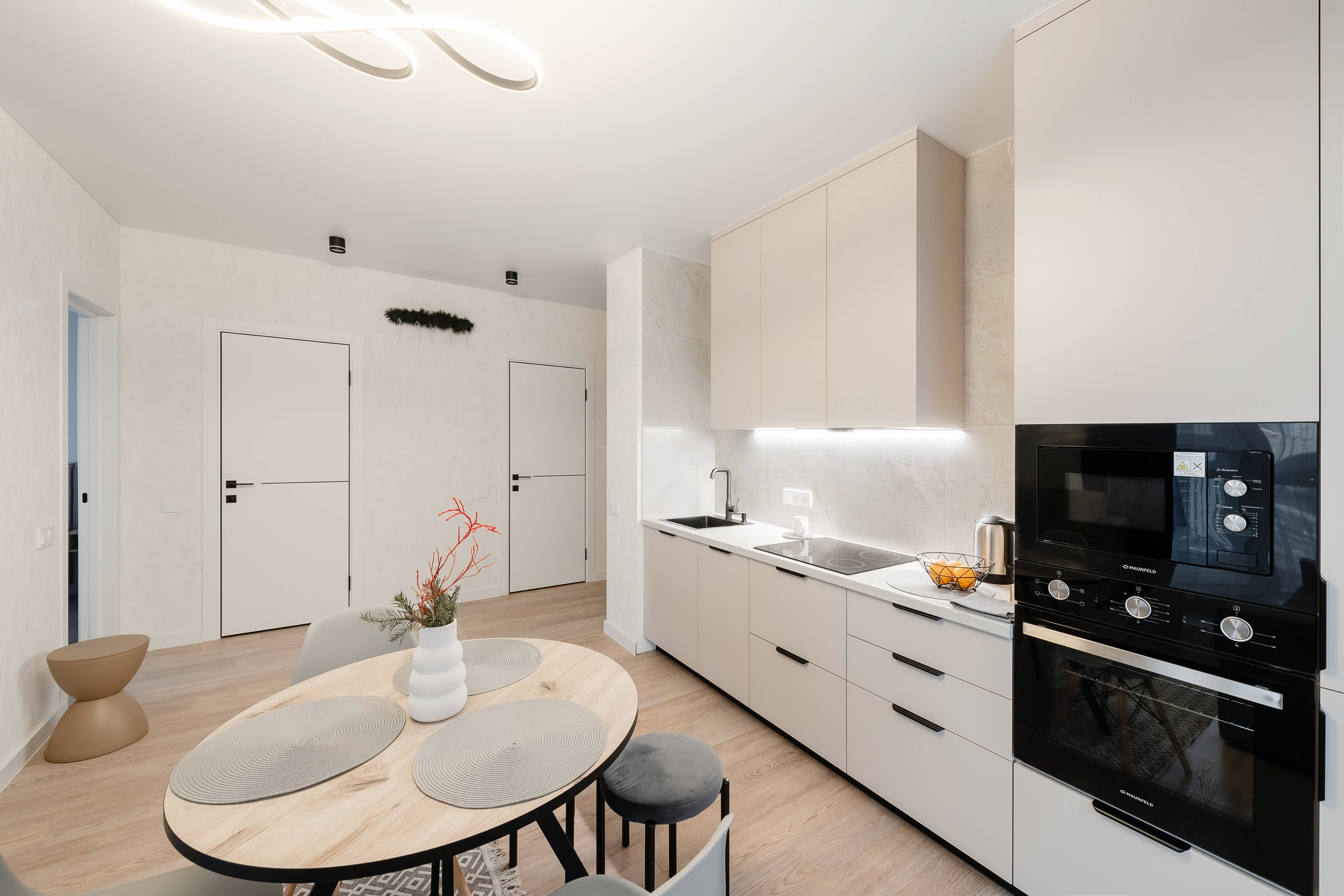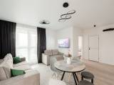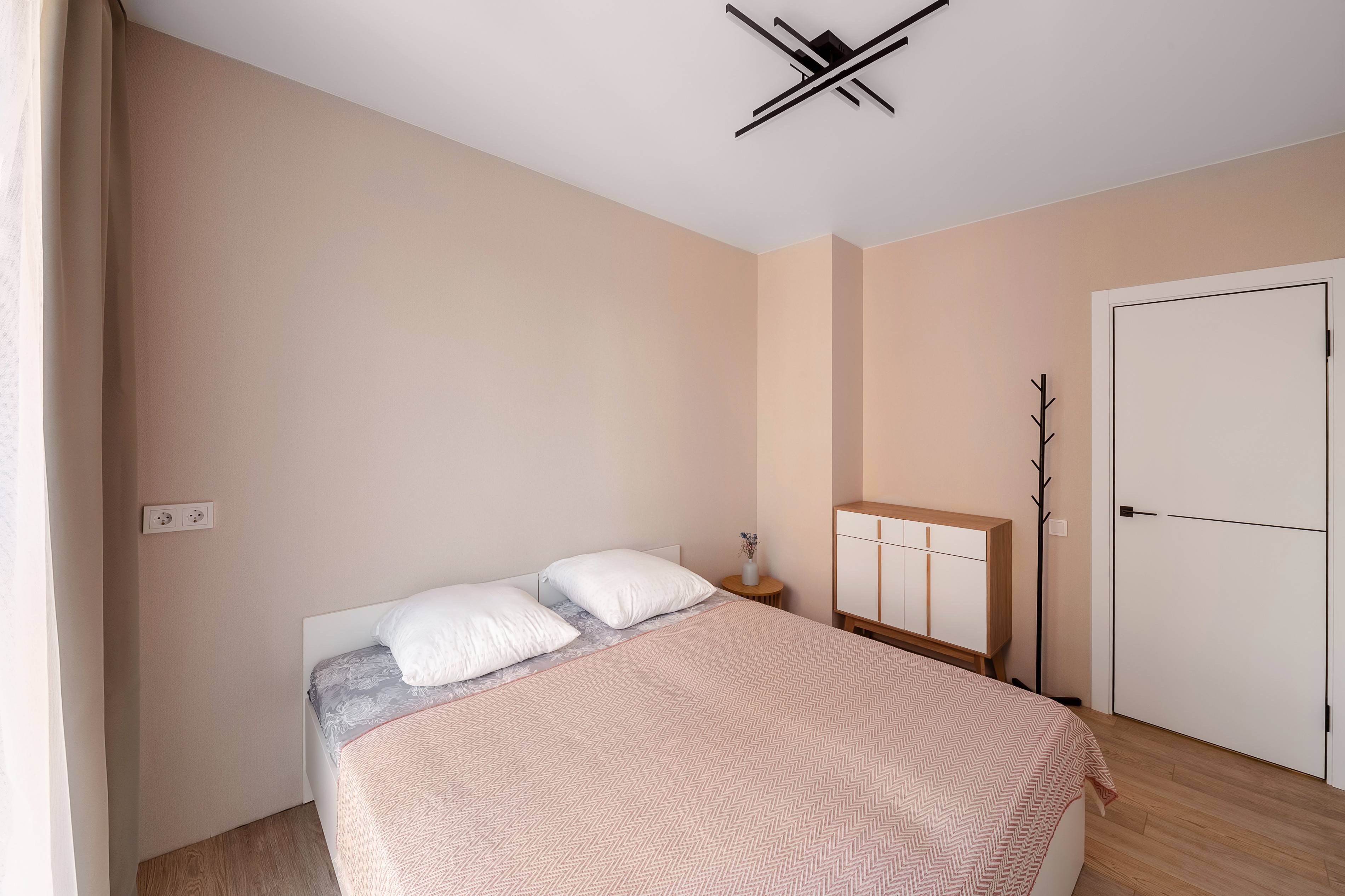Имеет две отдельные комнаты с кроватями и гостиная с зоной кухни. Спальных мест 6+2 дополнительно по согласованию. Метро Аэродромная до 10 минут пешком, там же ТЦ Авиа Молл, до центра города до 15 минут. Рядом с домом остановка, парковка для авто, пекарня, мини магазины, кафе.