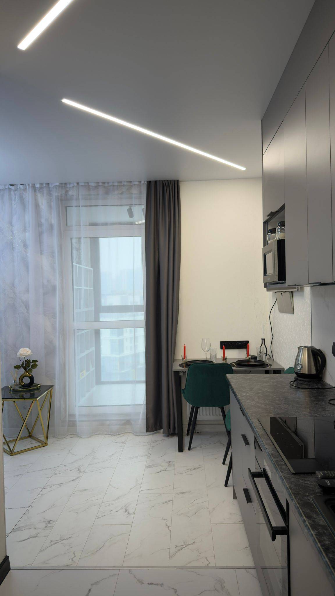 Новый ремонт, отдельная комната, панорамные окна, красивые виды на город,полностью оборудованна мебелью и бытовой техникой, есть все необходимое для комфортного проживания .