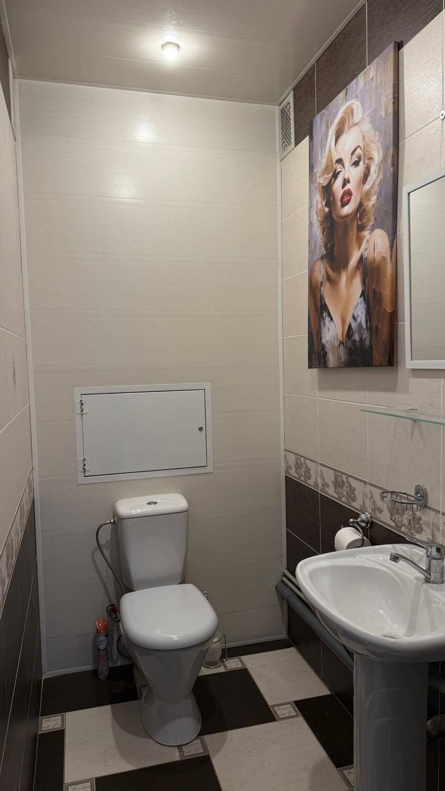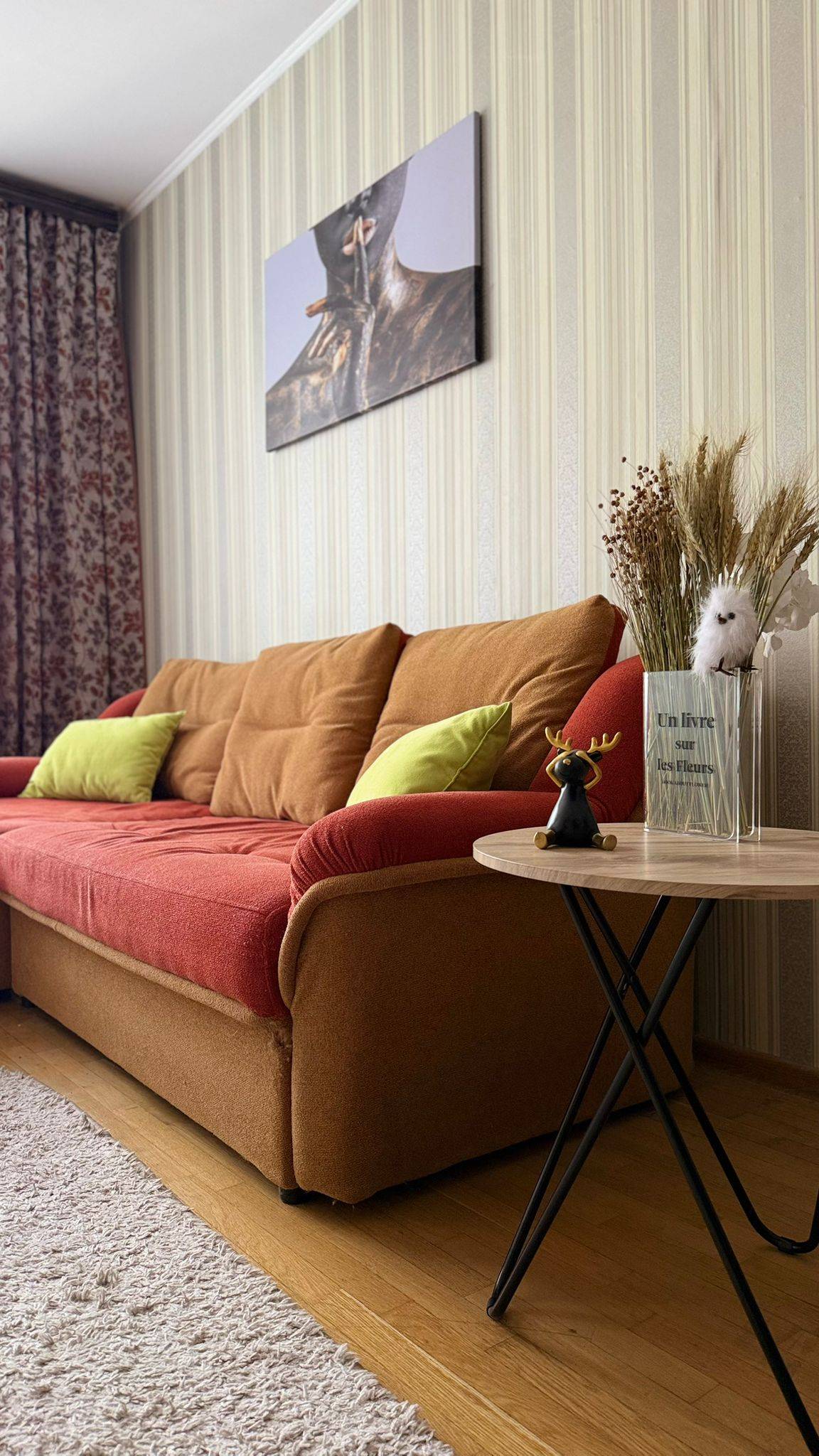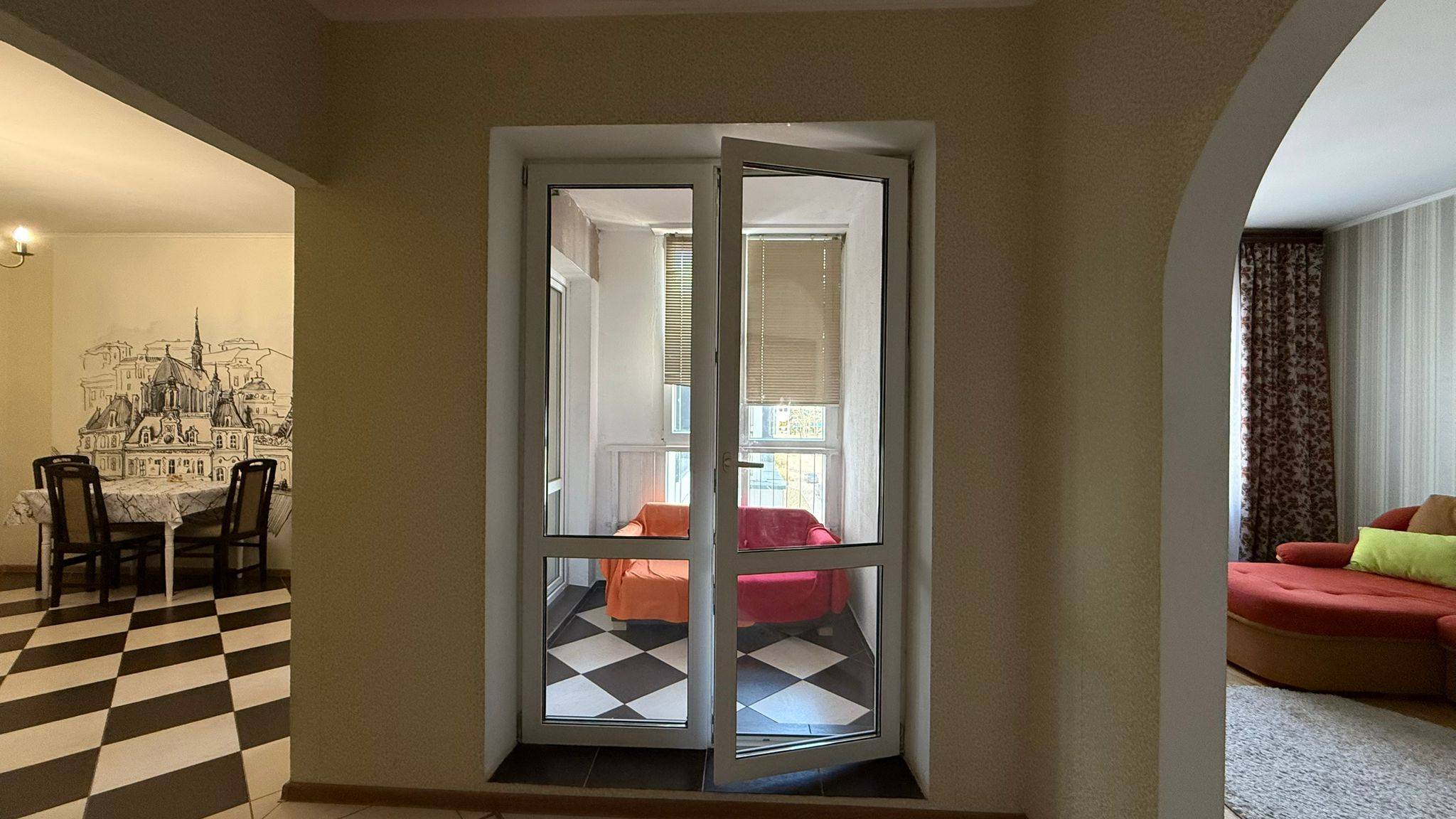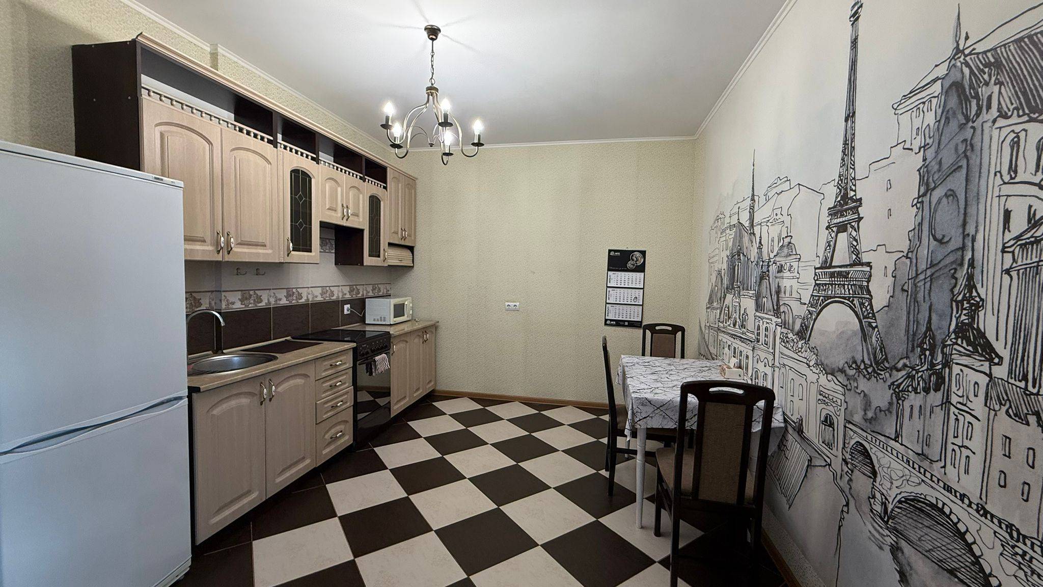 Квартира полностью обустроена качественной мебелью и бытовой техникой . Двухспальная кровать, огромный двухспальный диван, дополнительный двухместный диван ,много мест хранения.