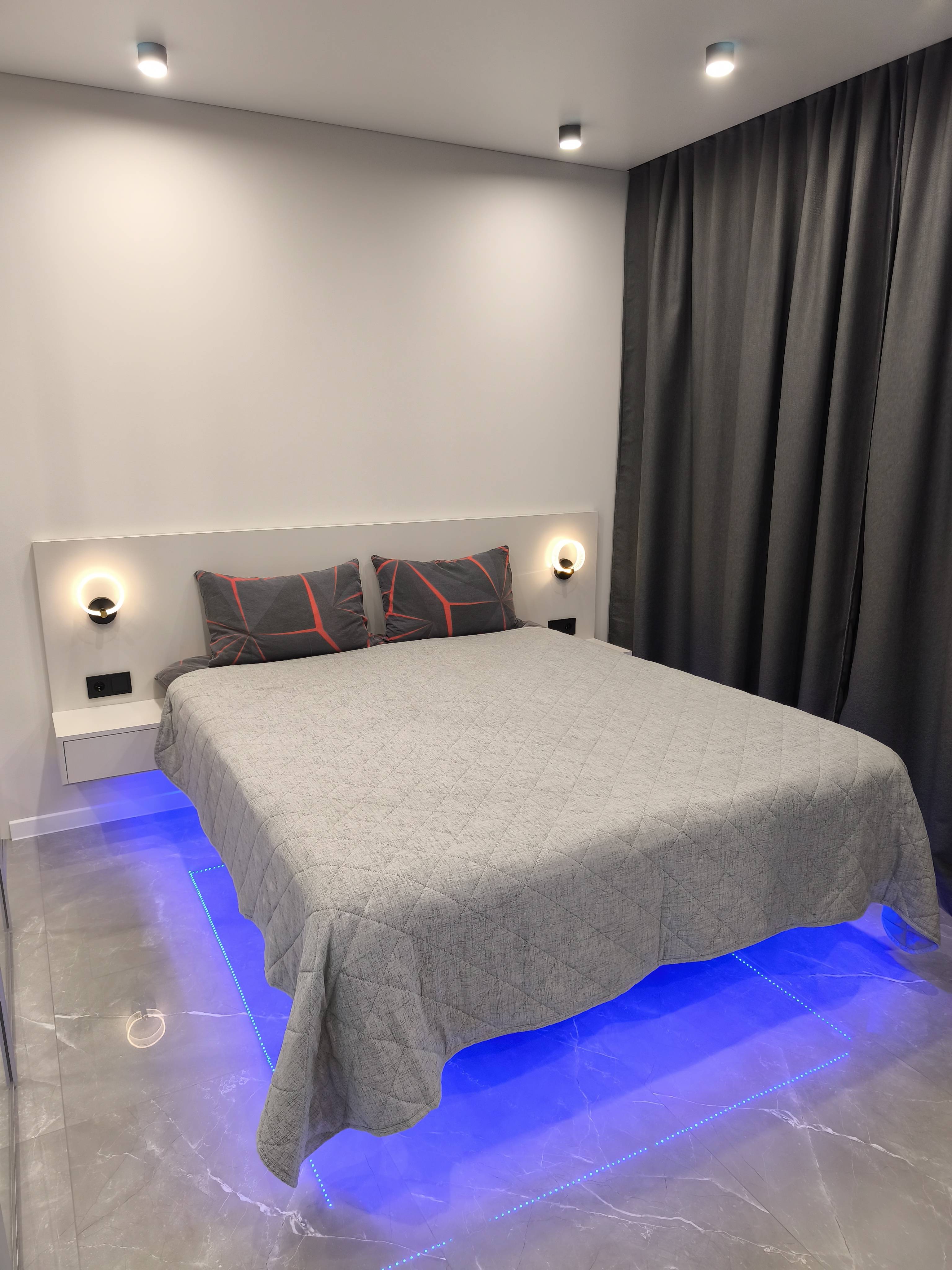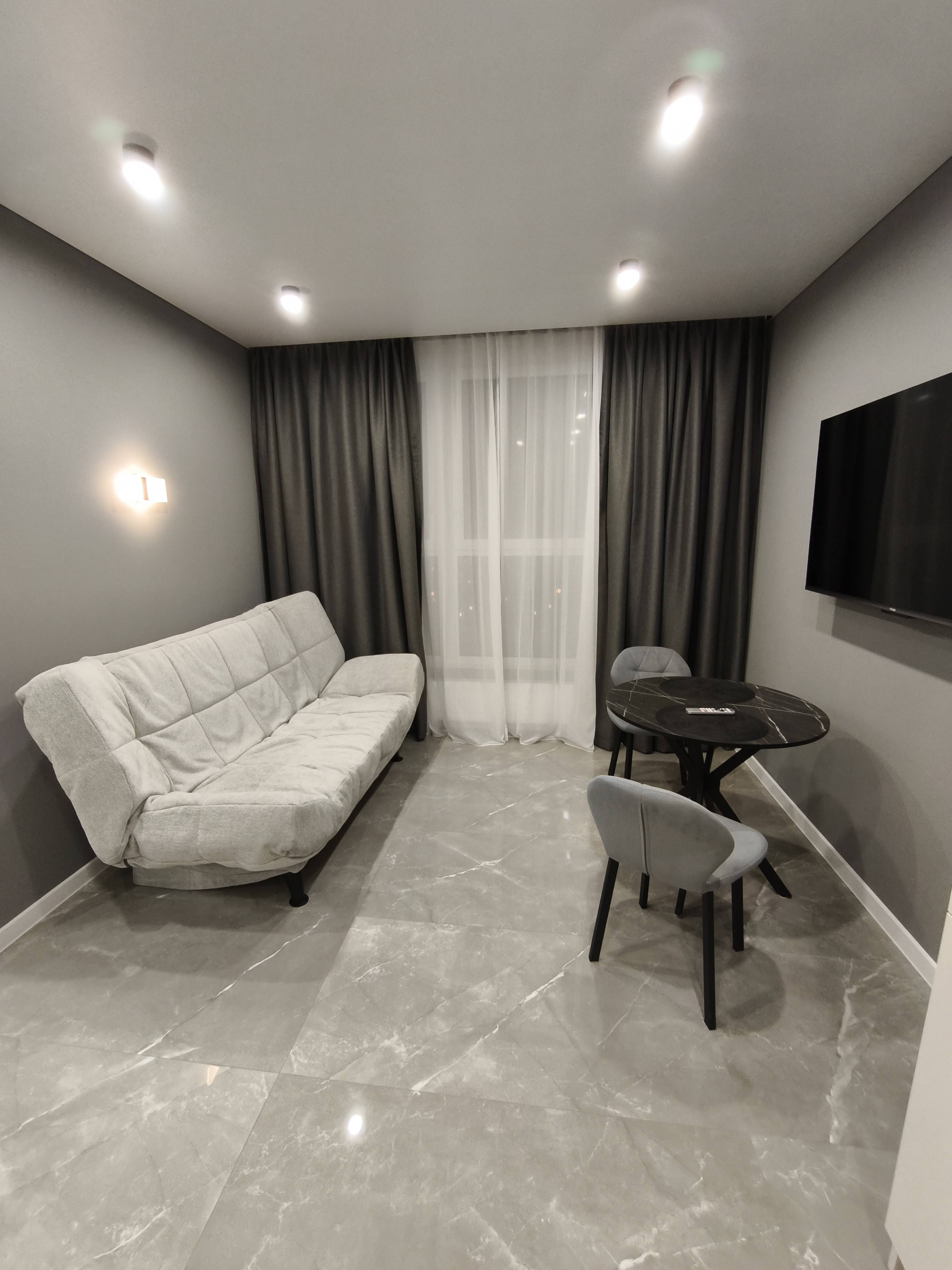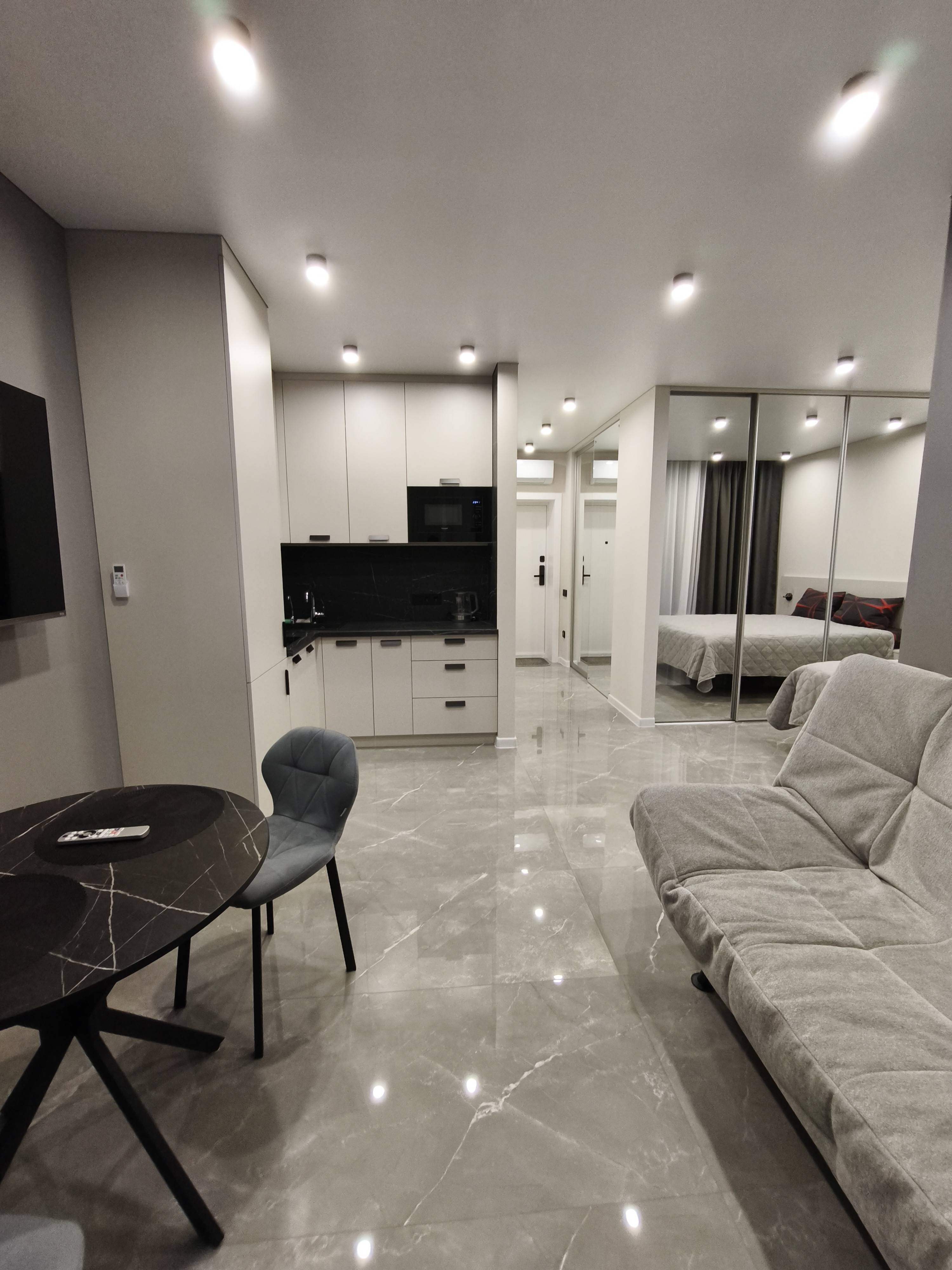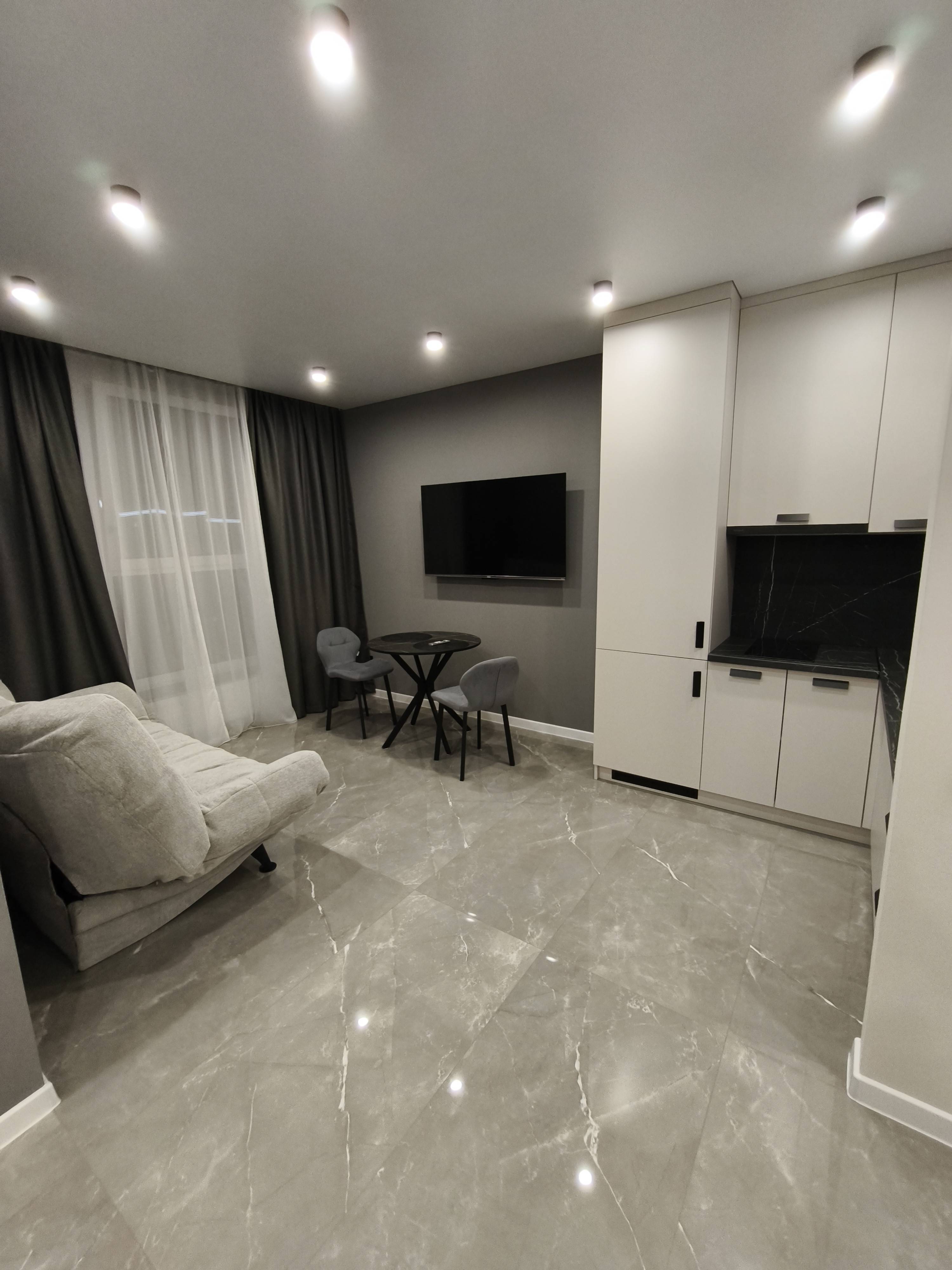 Новая, уютная студия рассчитанная на проживание двух гостей + дети. (Члены одной семьи) Предусмотрено всё необходимое для комфортного времяпровождения и проживания. Студия не сдаётся для проведения мероприятий, праздников и молодежных тусовок. Арендодатель в праве отказать в заселении или дальнейшем проживании если гость находится в сильном алкогольном или другом опьянении, при жалобе соседей на нарушение режима тишины в установленное время, при нарушении правил проживания, а также не соответствия числа проживающих. Стоимость суток в выходные, праздничные дни, а также в зависимости от числа проживающих обговариваются отдельно. Бесконтактное заселение не является обязанностью арендодателя и проводится только на усмотрение собственника.