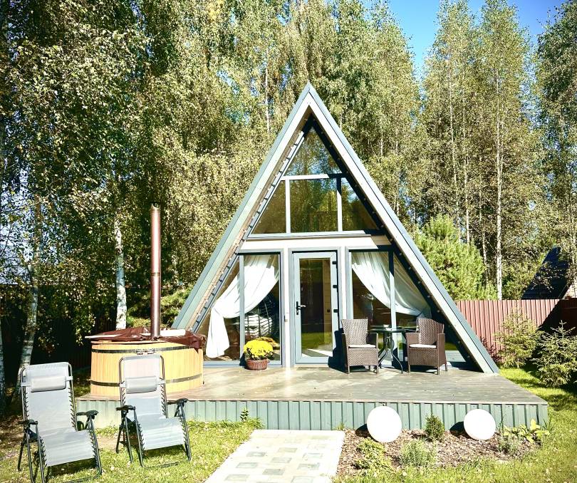Треугольные домики А-фрейм "Три лисы" расположены в небольшой деревушке, окружённой лесом, всего в 14 км...