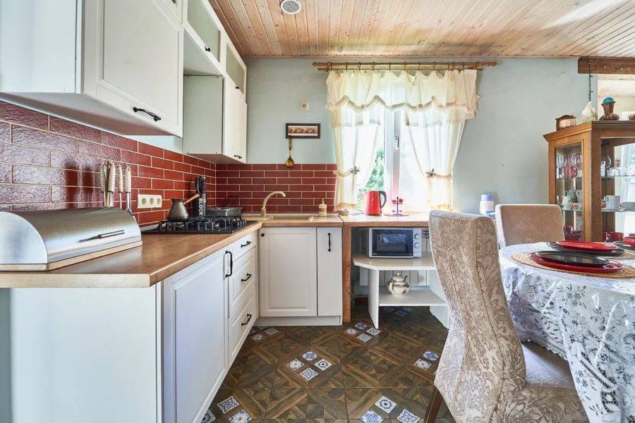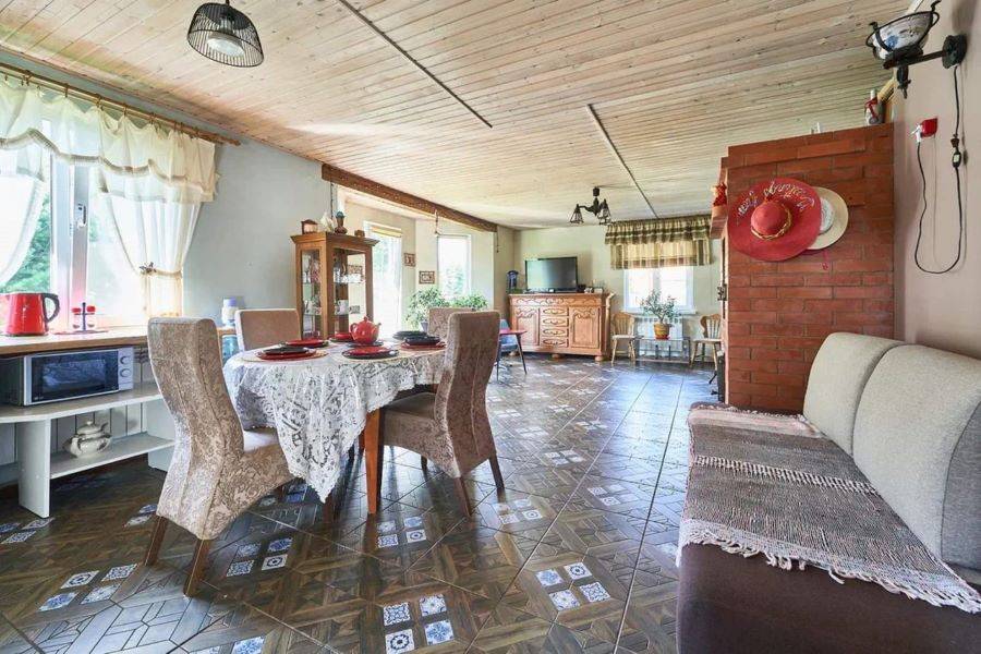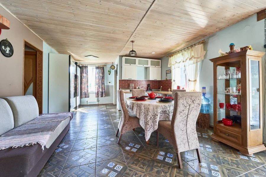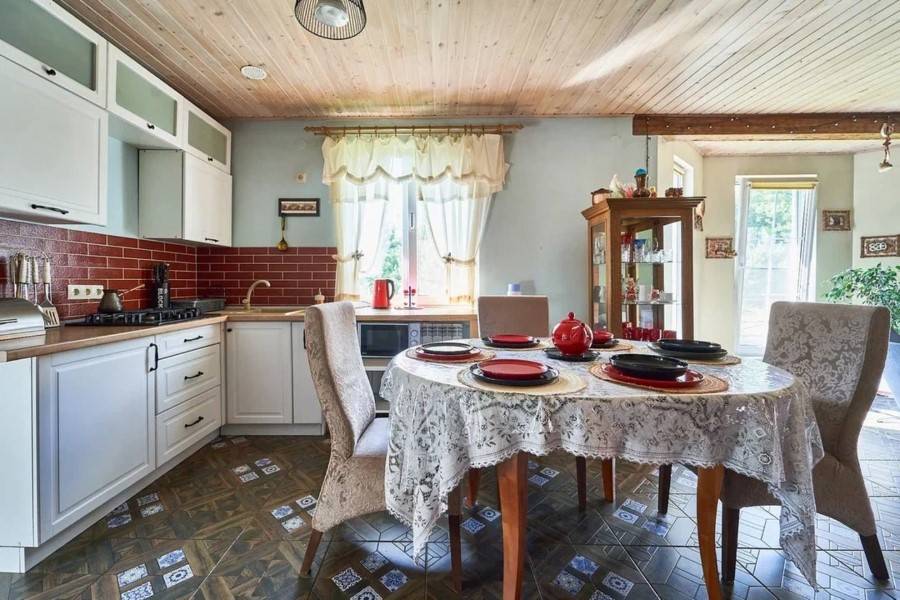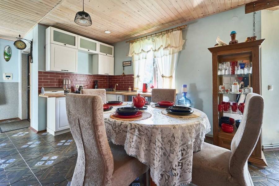 Наш участок просторный, площадью 25 соток , площадь дома 70 м. кв. В усадьбе 2 комнаты. Внутренняя обстановка напоминает квартиру – студию: из небольшой прихожей попадаешь в просторную комнату-студию с компактной кухонной зоной . Далее попадаешь во вторую комнату-спальню. Сан. узел. оборудован всем необходимым: Унитаз с подогревом сиденья + биде. В доме имеется печь-камин, LCD телевизор (триколор), холодильник, микроволновая печь, полноценная кухня, предоставляется постельной белье, полотенца.