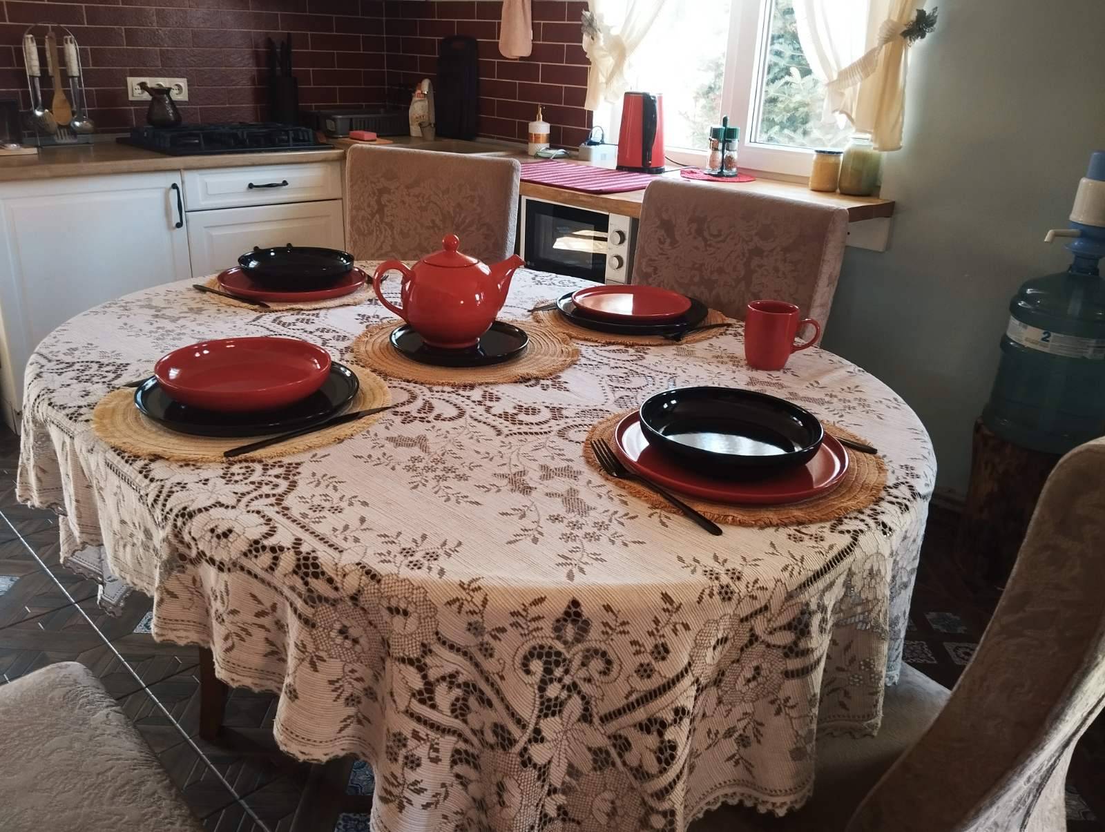 Наш участок просторный, площадью 25 соток , площадь дома  70 м. кв. В усадьбе 2 комнаты. Внутренняя обстановка напоминает квартиру – студию: из небольшой прихожей попадаешь в просторную комнату-студию с компактной кухонной зоной .  Далее попадаешь во вторую  комнату-спальню.   Сан. узел. оборудован всем необходимым: Унитаз с подогревом сиденья + биде. В доме имеется печь-камин, LCD телевизор (триколор), холодильник, микроволновая печь, полноценная кухня, предоставляется постельной белье, полотенца.