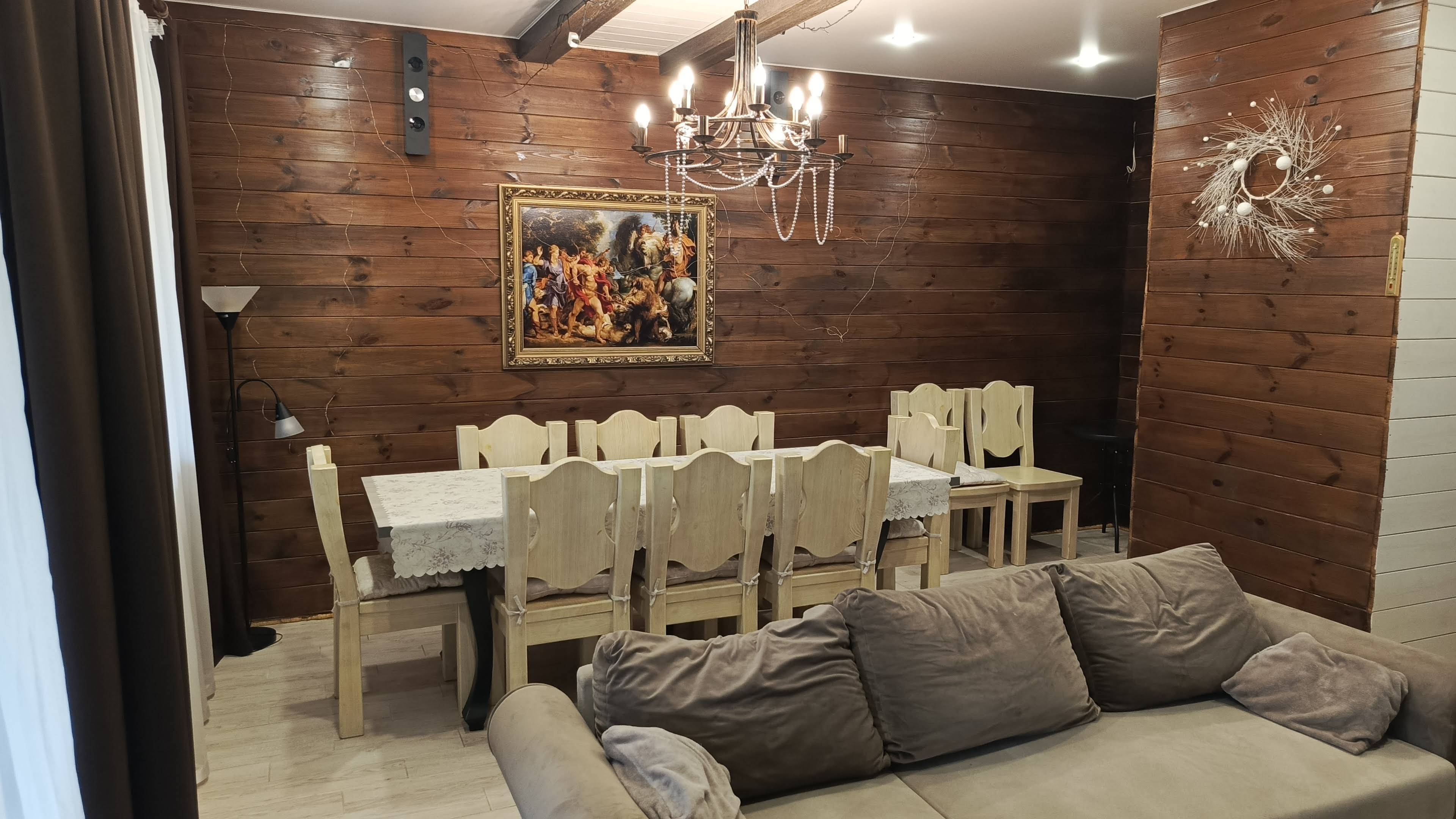 К вашим услугам чистый воздух, большое озеро, лесные прогулки, ягоды, грибы, велопрогулки, рыбалка, катание на лодке и SUP борде, гамак, дартс и разнообразные развлечения.