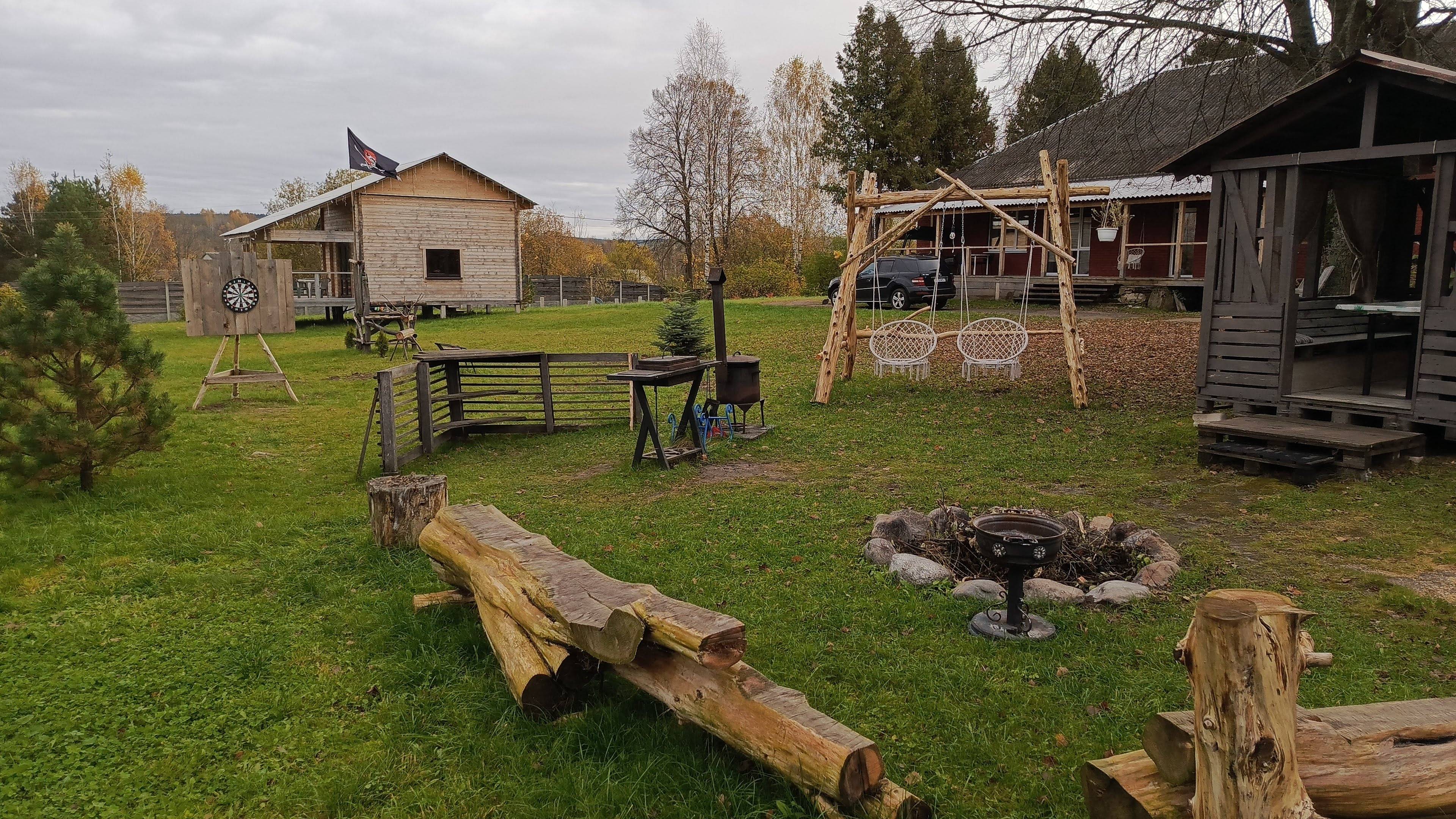 - Места отдыха с кострищем и зоной BBQ.