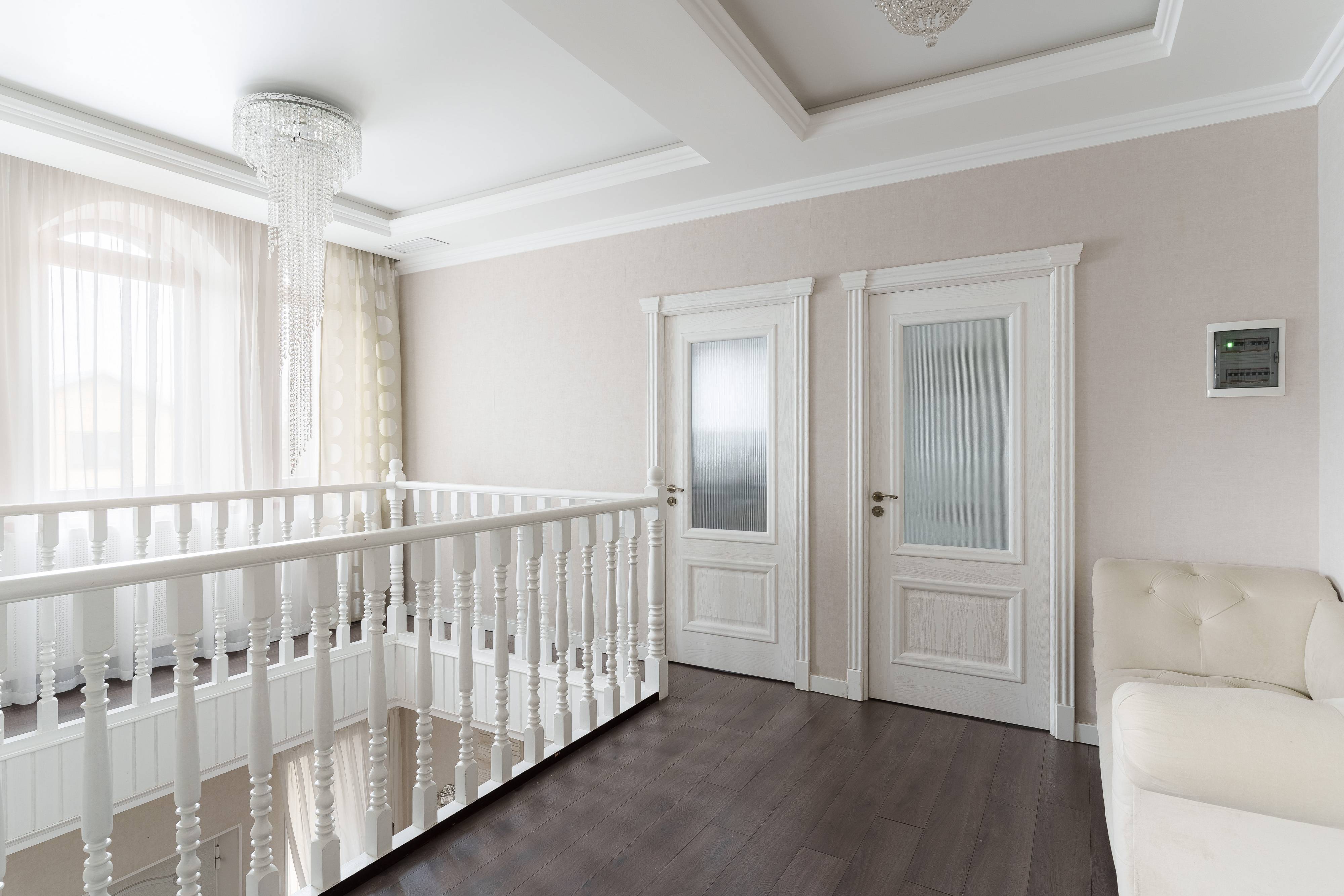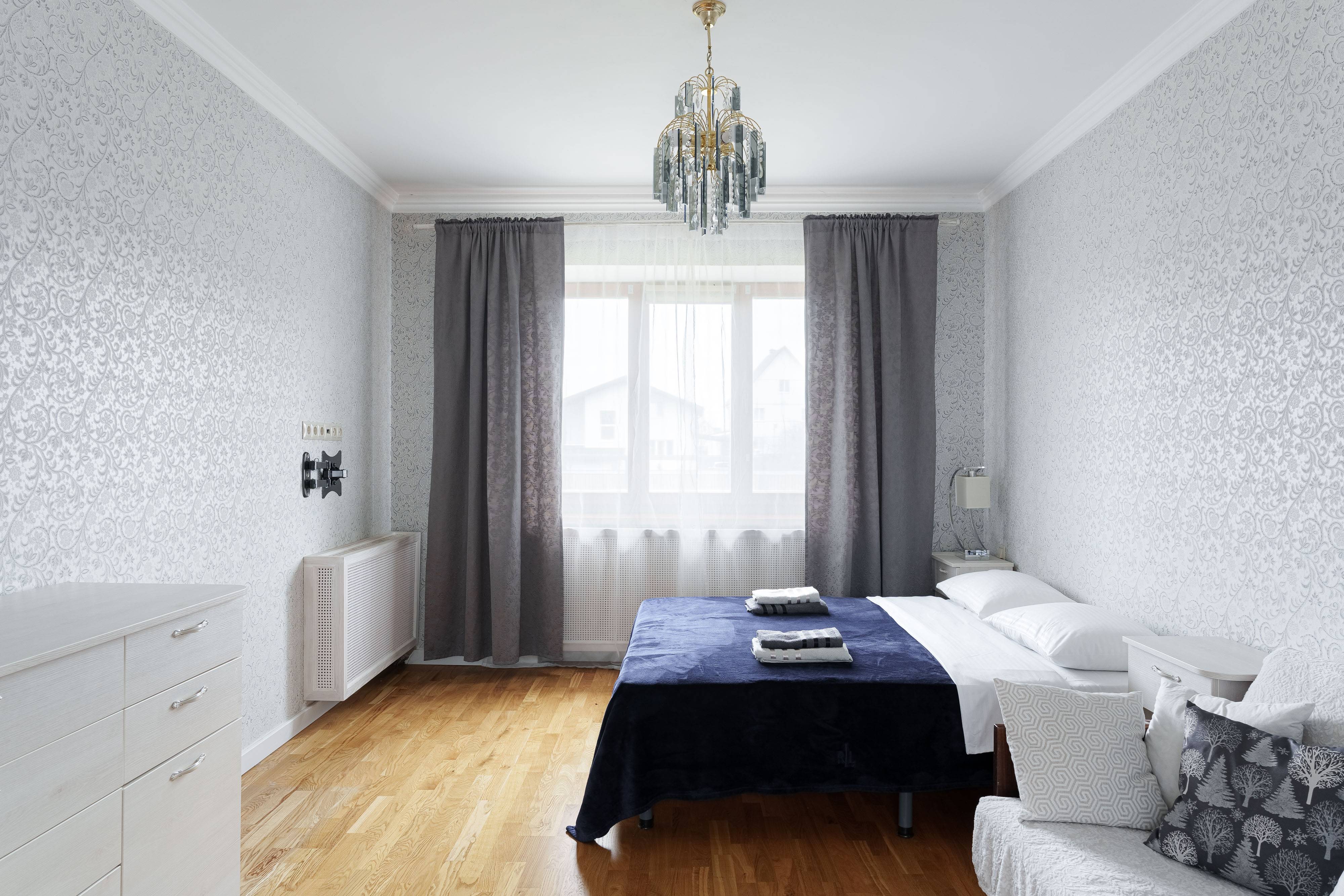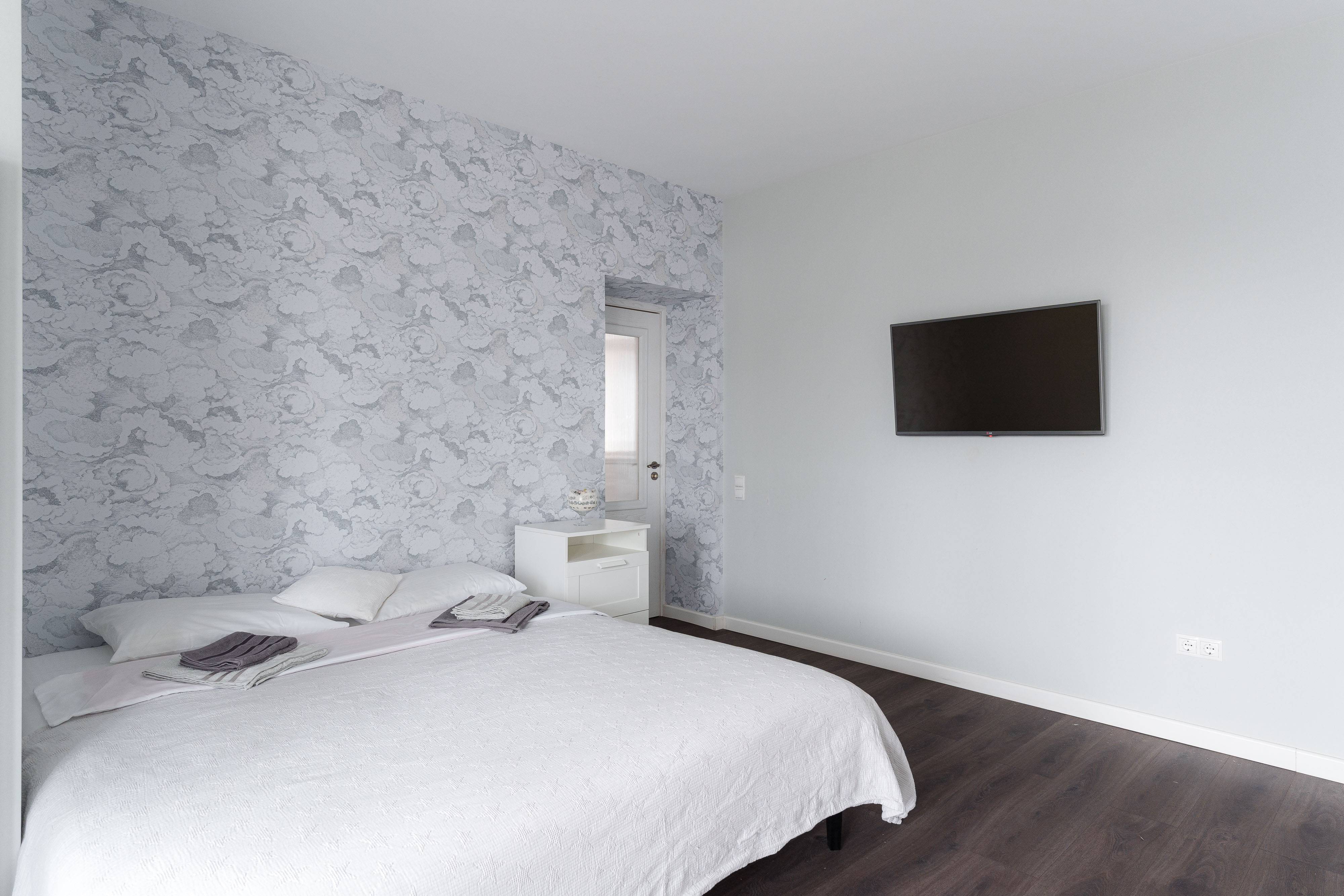 Максимальное количество спальных мест - 12 (4 двуспальных кровати в 4 спальнях, раскладывающийся диван в гостиной и раскладывающийся диван в спальне на первом этаже).