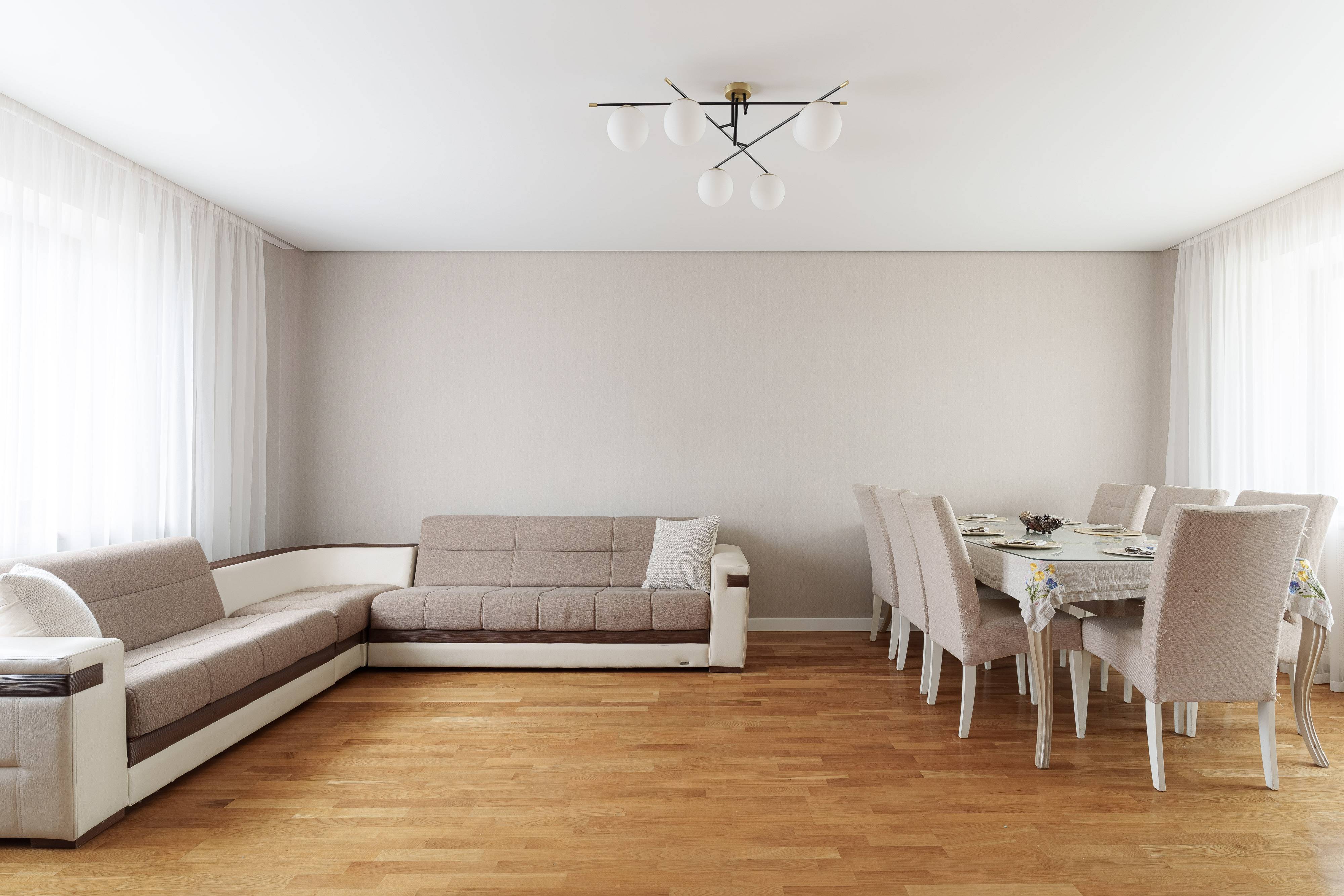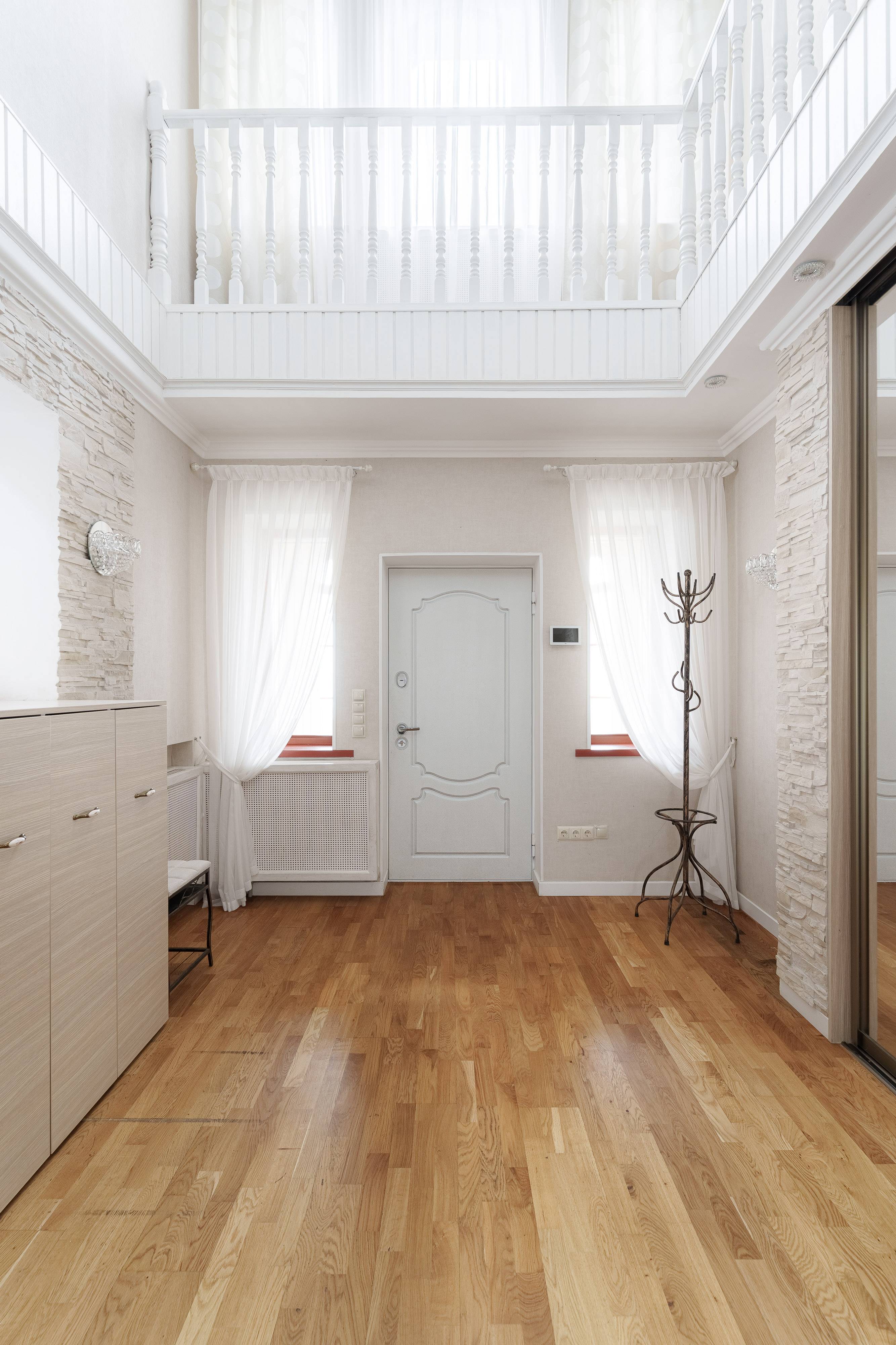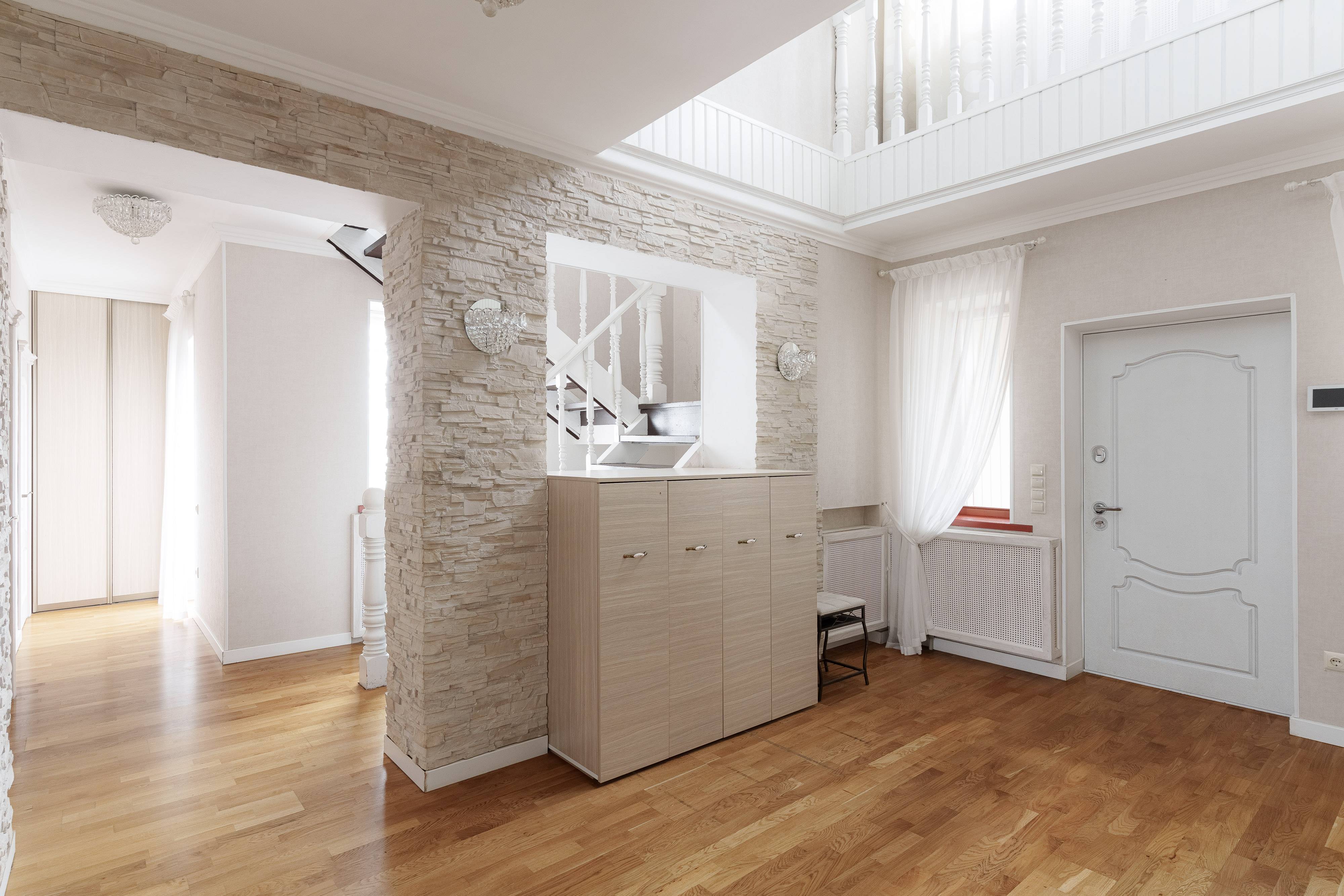 Максимальное количество спальных мест - 12 (4 двуспальных кровати в 4 спальнях, раскладывающийся диван в гостиной и раскладывающийся диван в спальне на первом этаже).