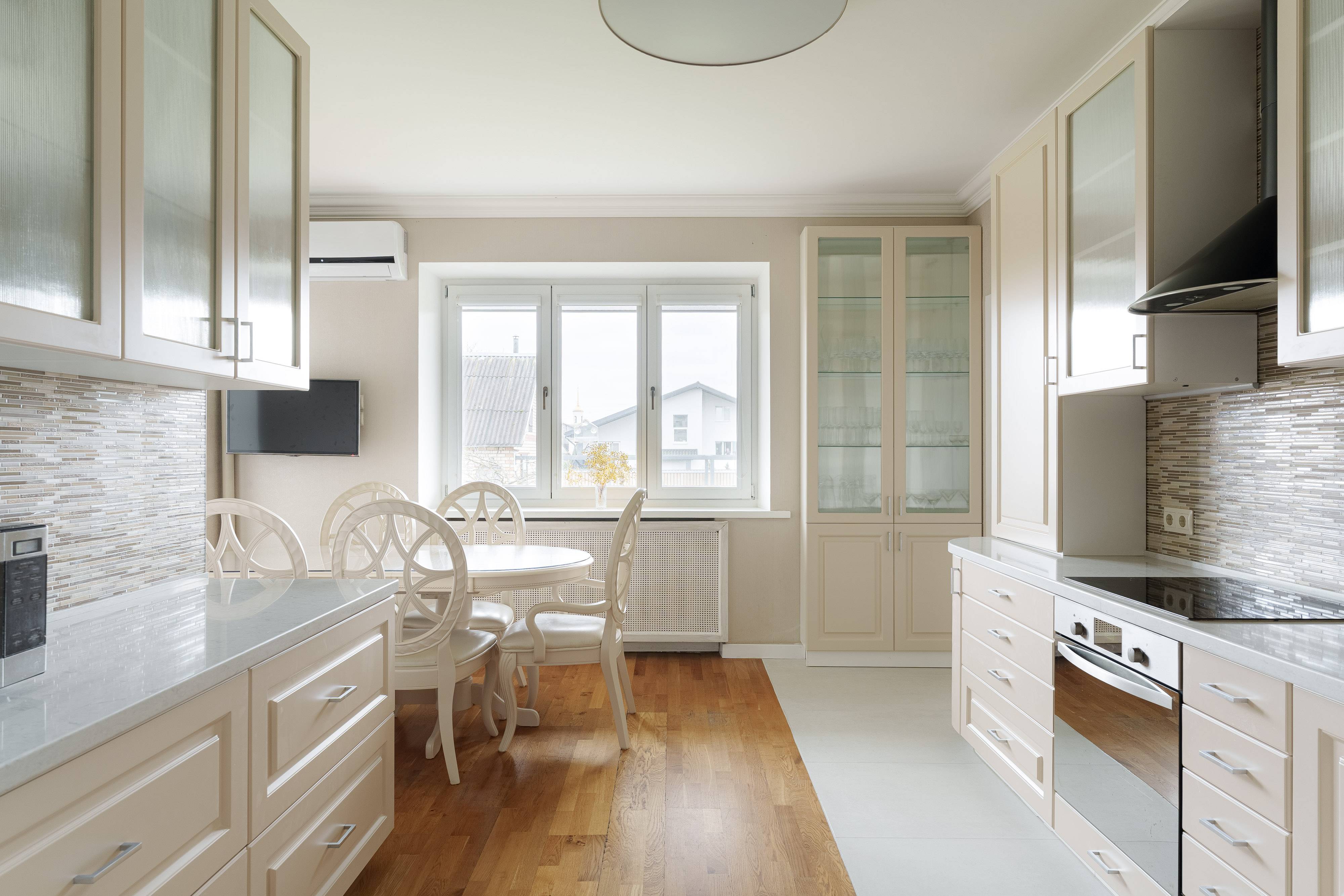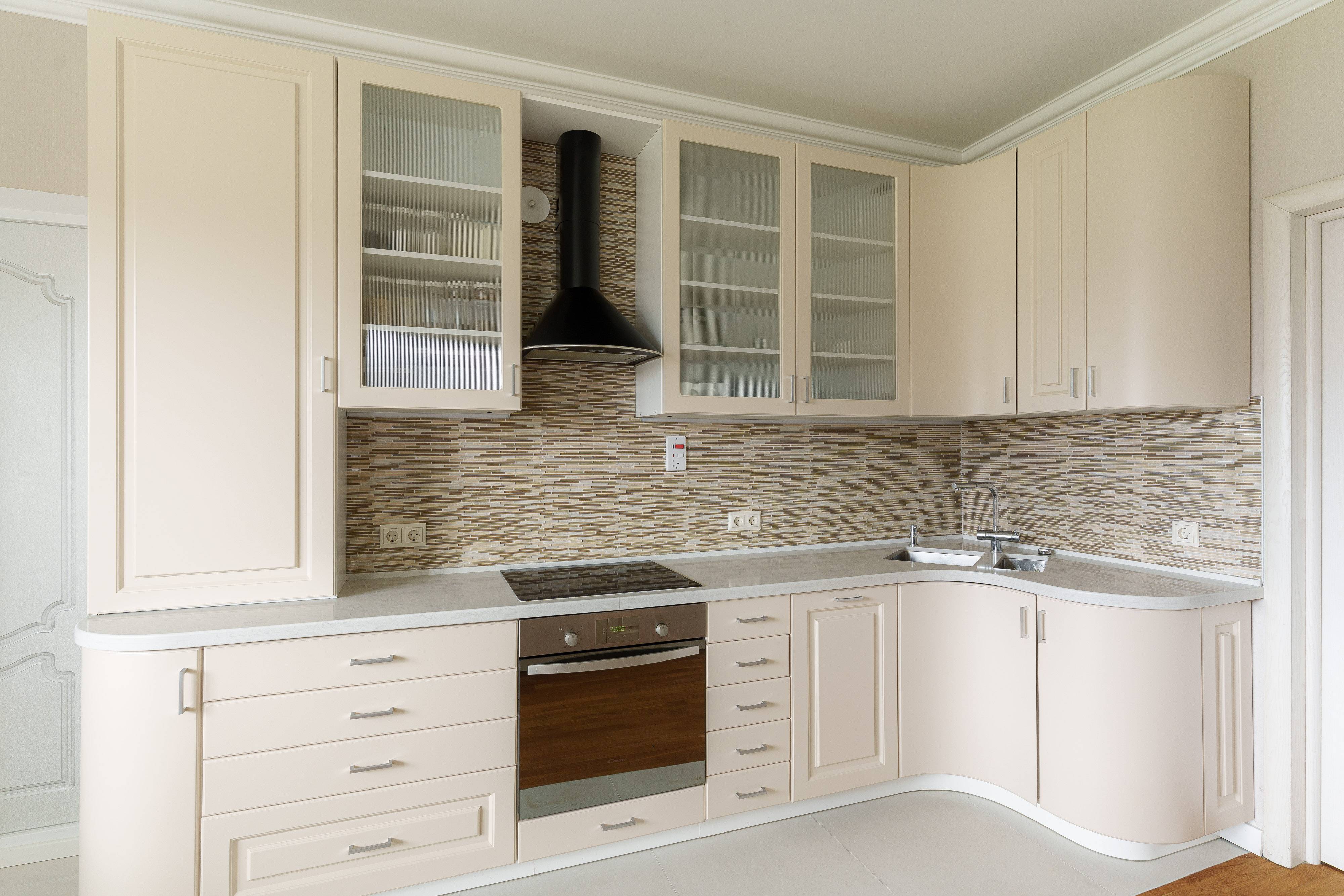 - Чайник, холодильник, микроволновая печь, тостер, индукционная плита, духовой шкаф и посудомойка.