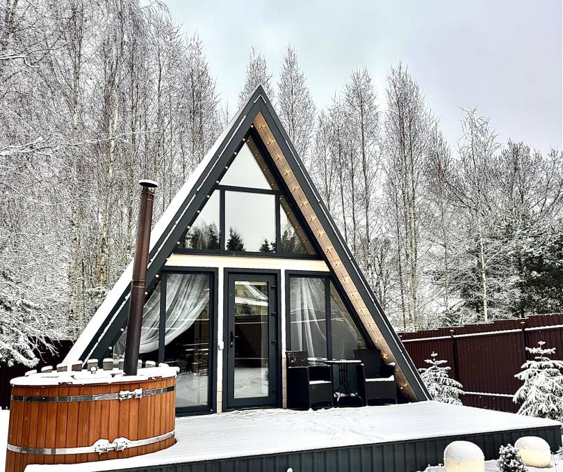 Треугольные домики А-фрейм "Три лисы" расположены в небольшой деревушке, окружённой лесом, всего в 14 км...