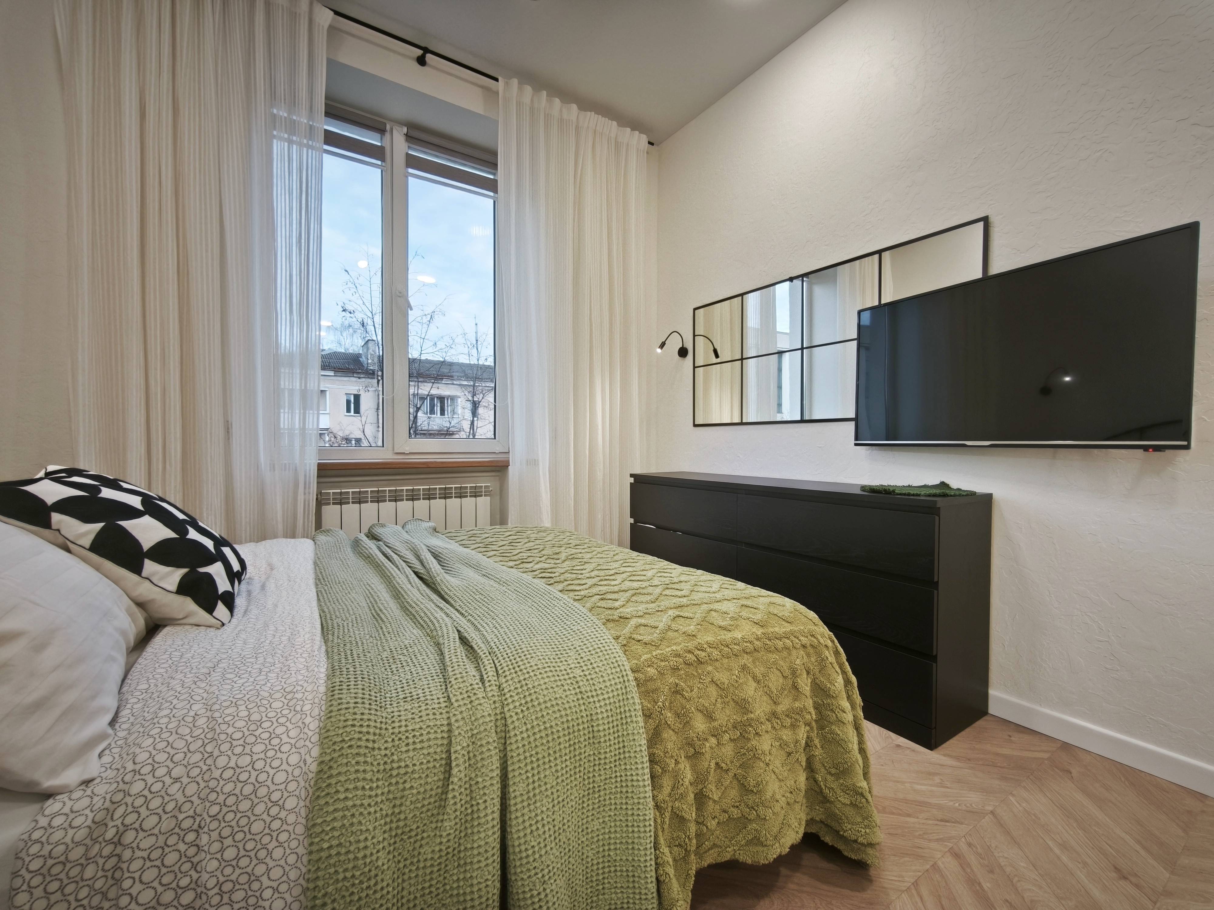 Тихий зелёный благоустроенный двор. Спокойные соседи. Чистый подъезд. Красивый вид из окна на зелёный бульвар. Сталинский дом. Высокие потолки. Новая Детская площадка во дворе.