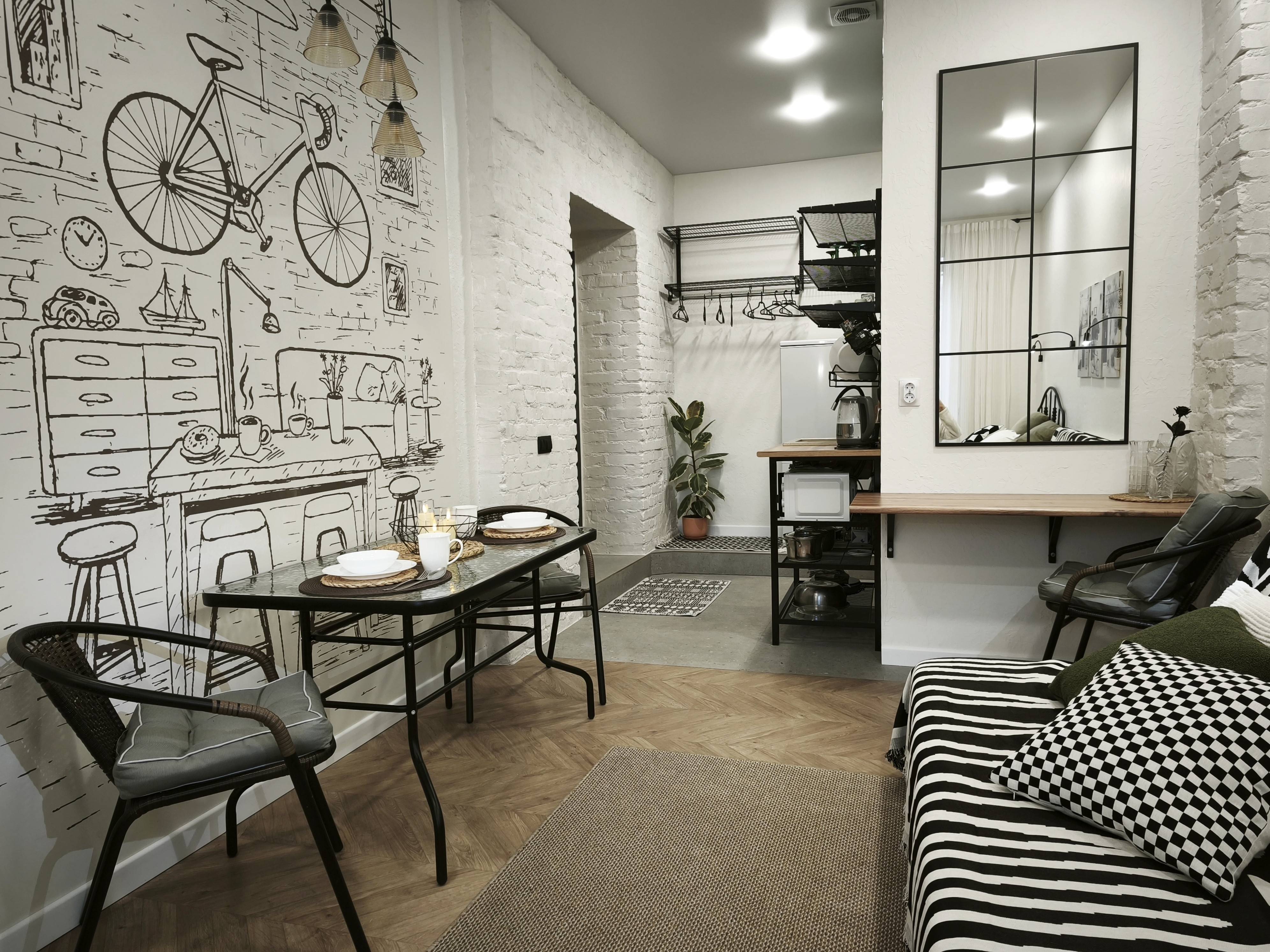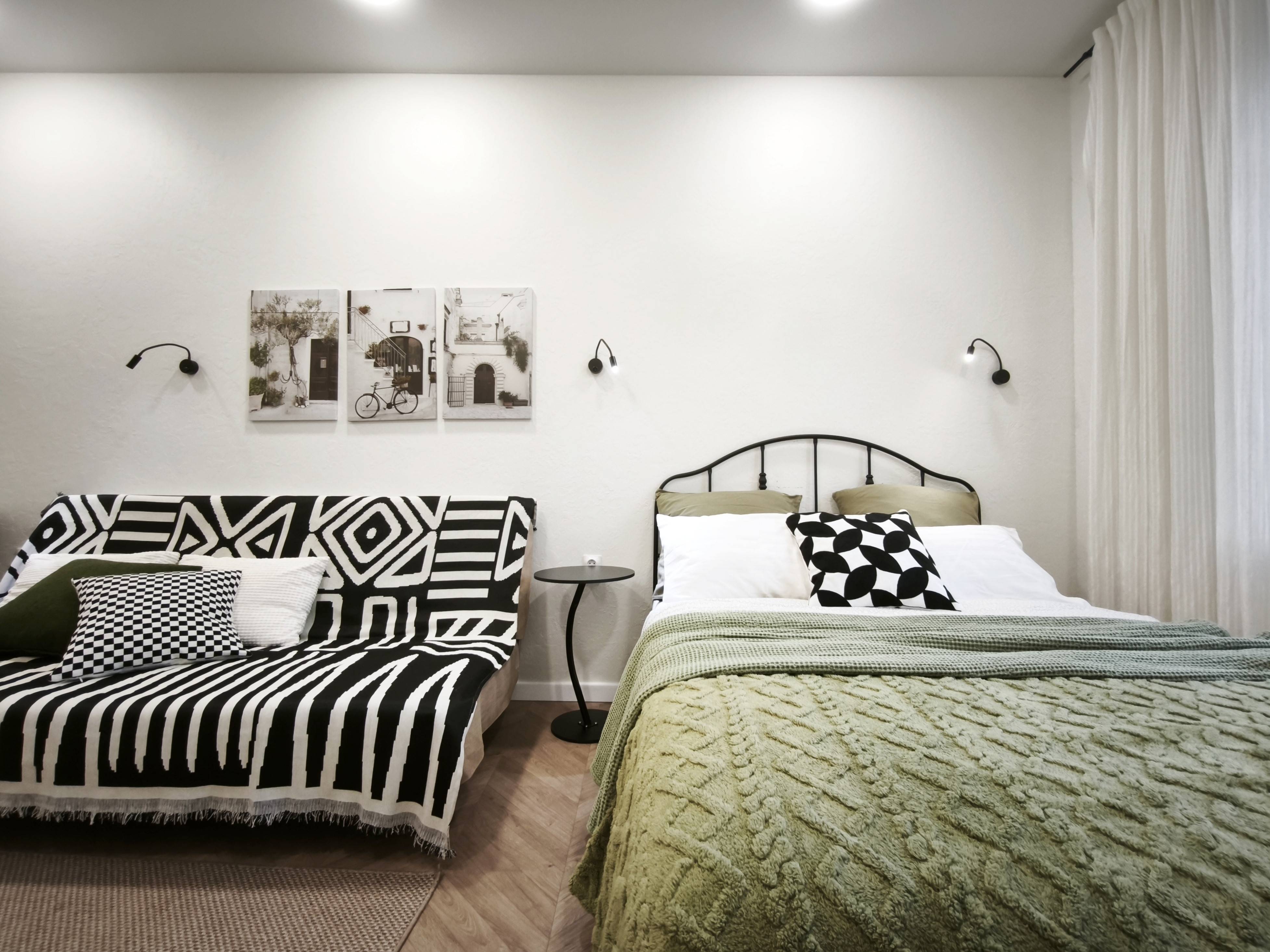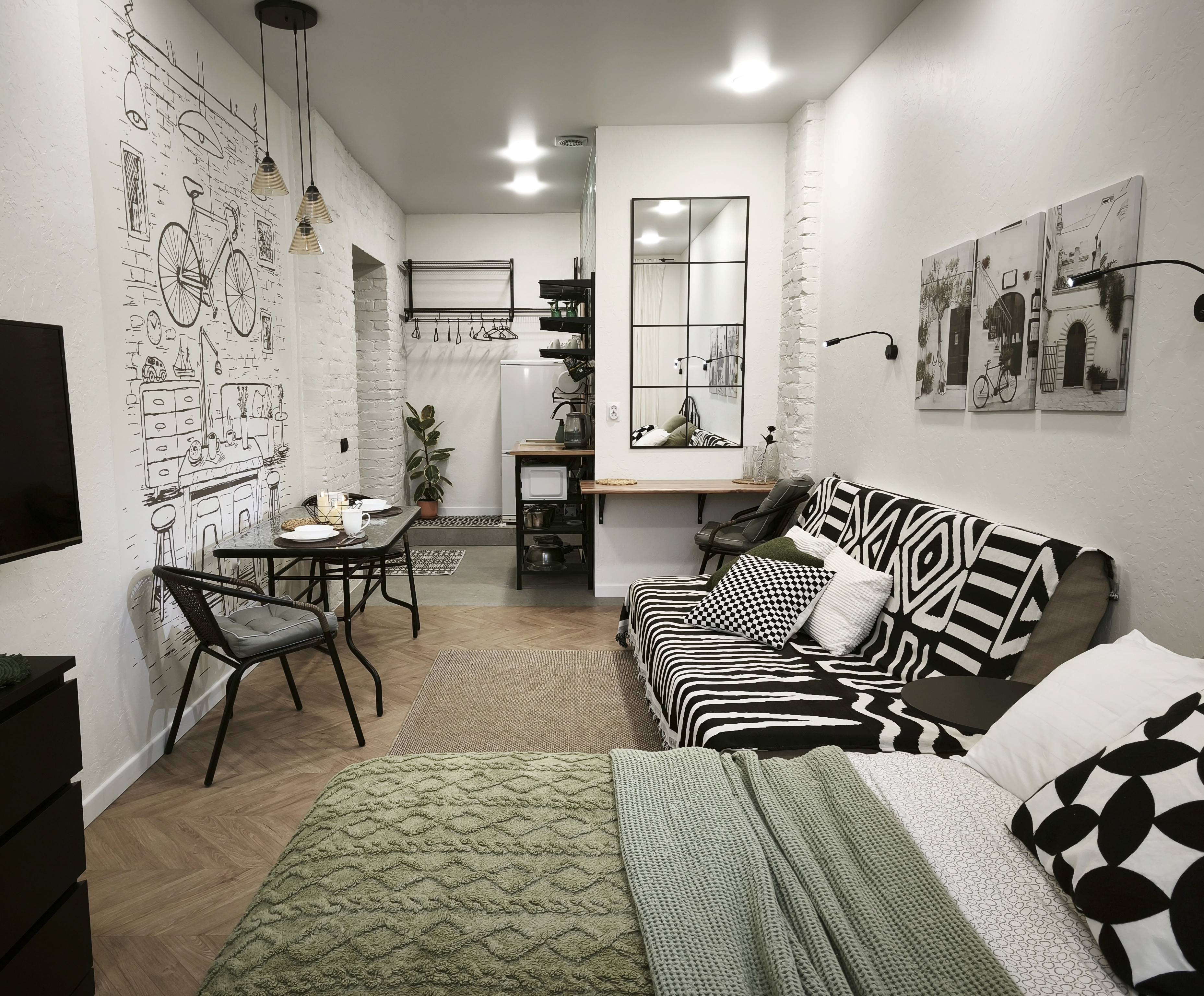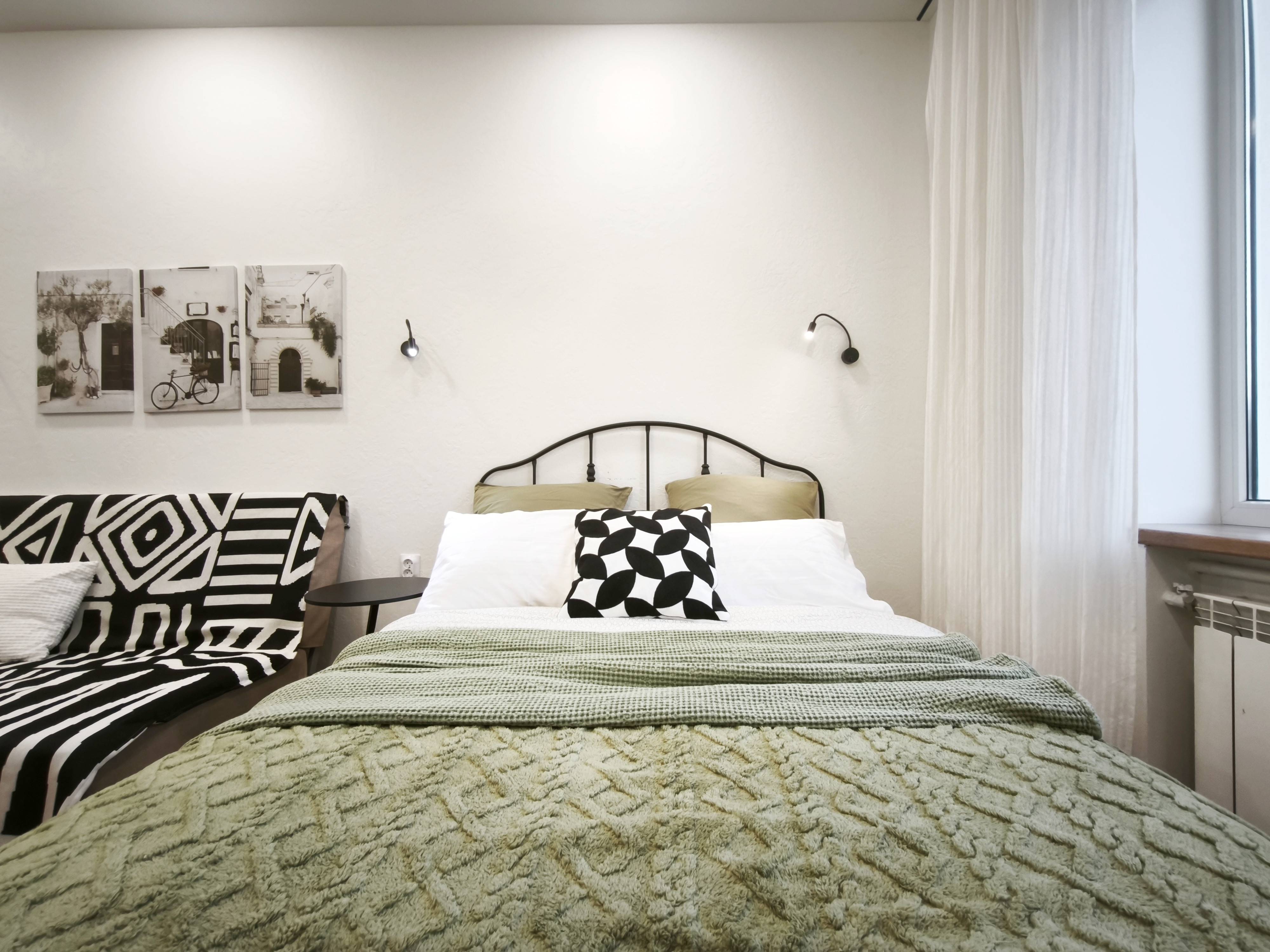 Центр. Атмосферная студия на 4-м этаже. ДЛЯ НЕКУРЯЩИХ. Кому важно эстетика, комфорт, расположение. Красивый ремонт, новая сантехника. Новая кровать с ортопедическим матрасом и удобный диван. Быстрое заселение.