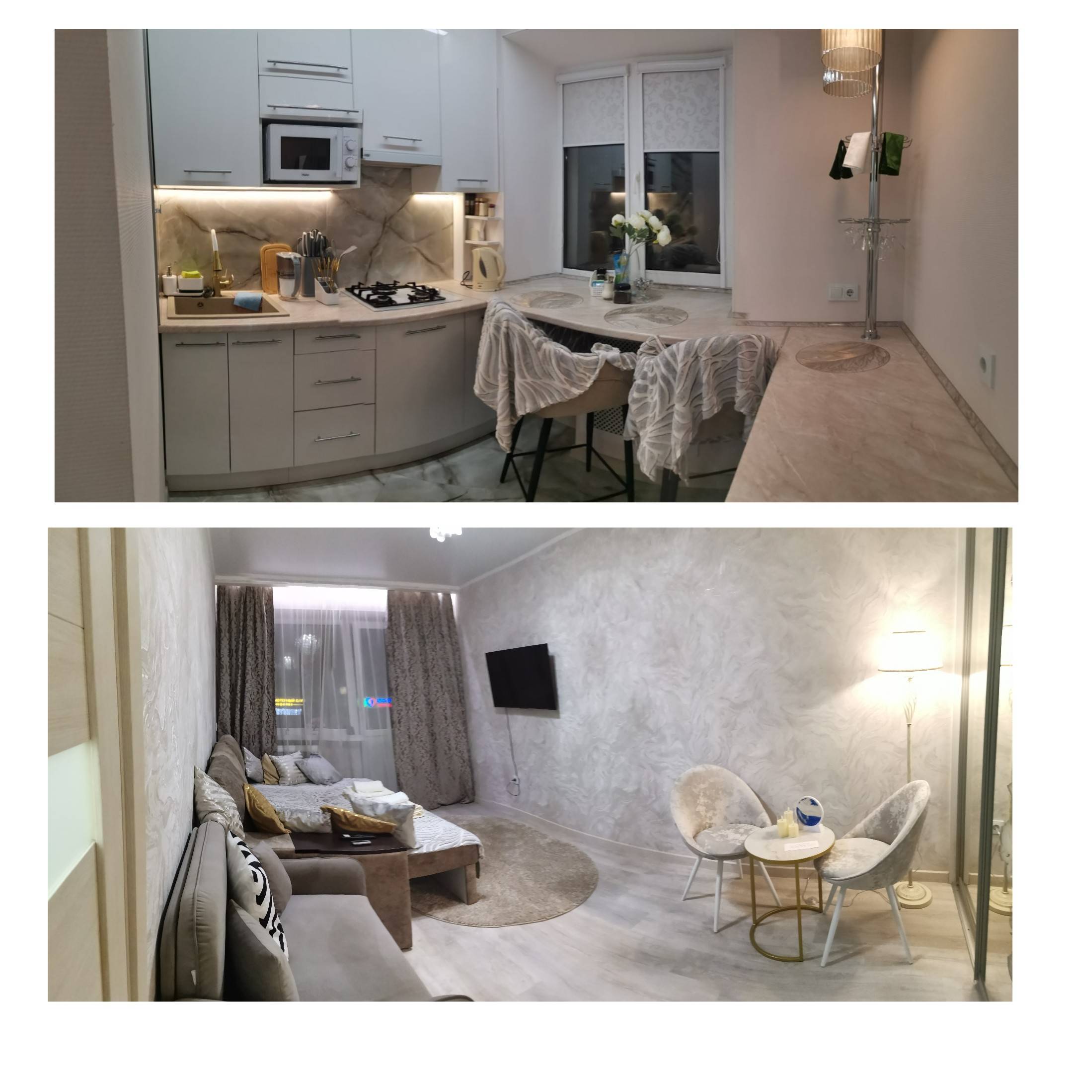 Сделан современный ремонт, мебель новая. Квартира оборудована всем необходимым для комфортного проживания и хорошего настроения гостей. Чай, кофе, свежие полотенца, уборка пред приездом, мини-бар в холодильнике и даже одноразовые зубные щетки - эти приятные мелочи результат нашей заботы.