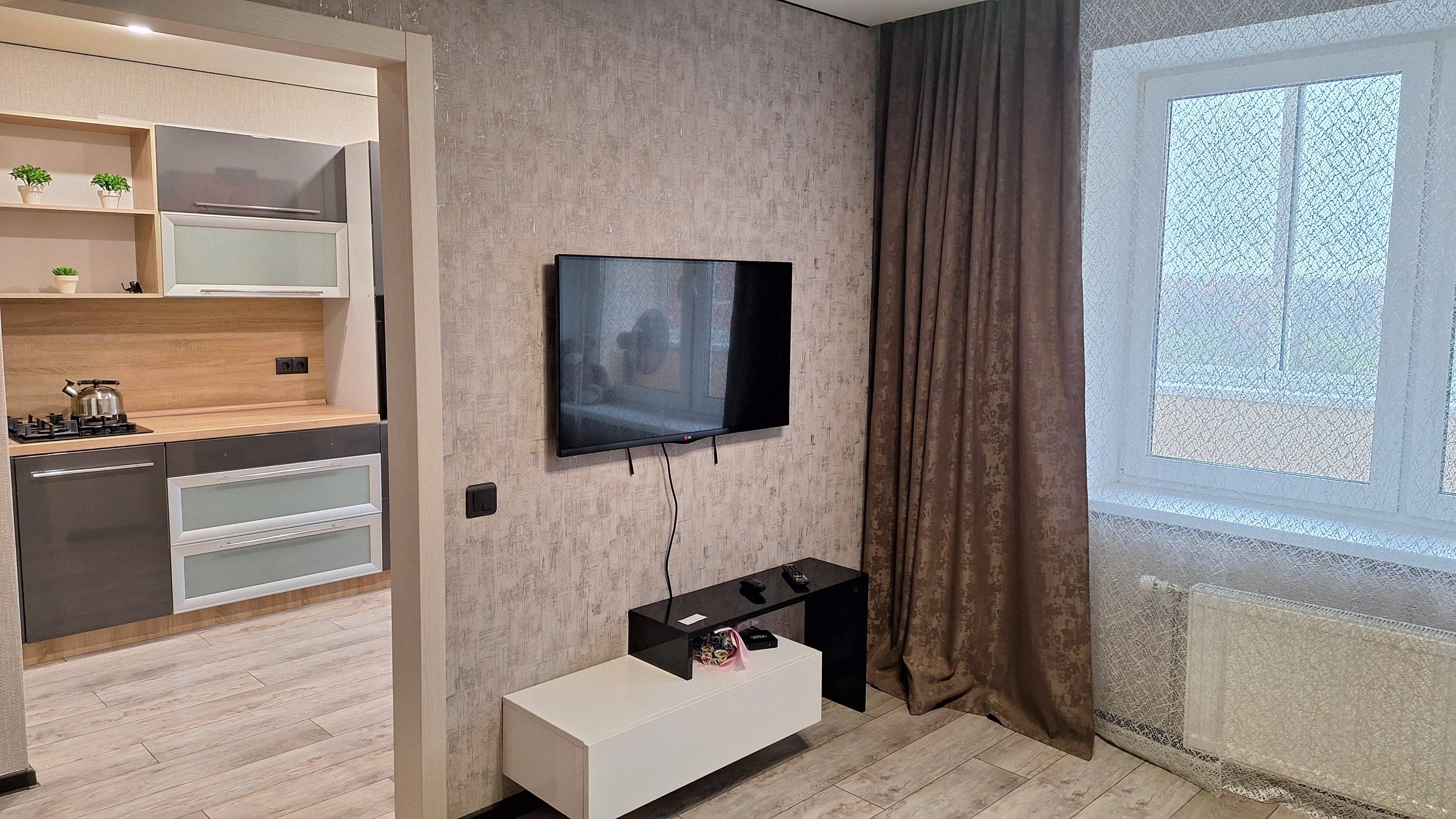 Сдаётся уютная однокомнатная квартира. Есть всё необходимое, стиральная машина, свч печь, телевизор, столовые приборы, посуда, фен, холодильник, интернет, большая парковка