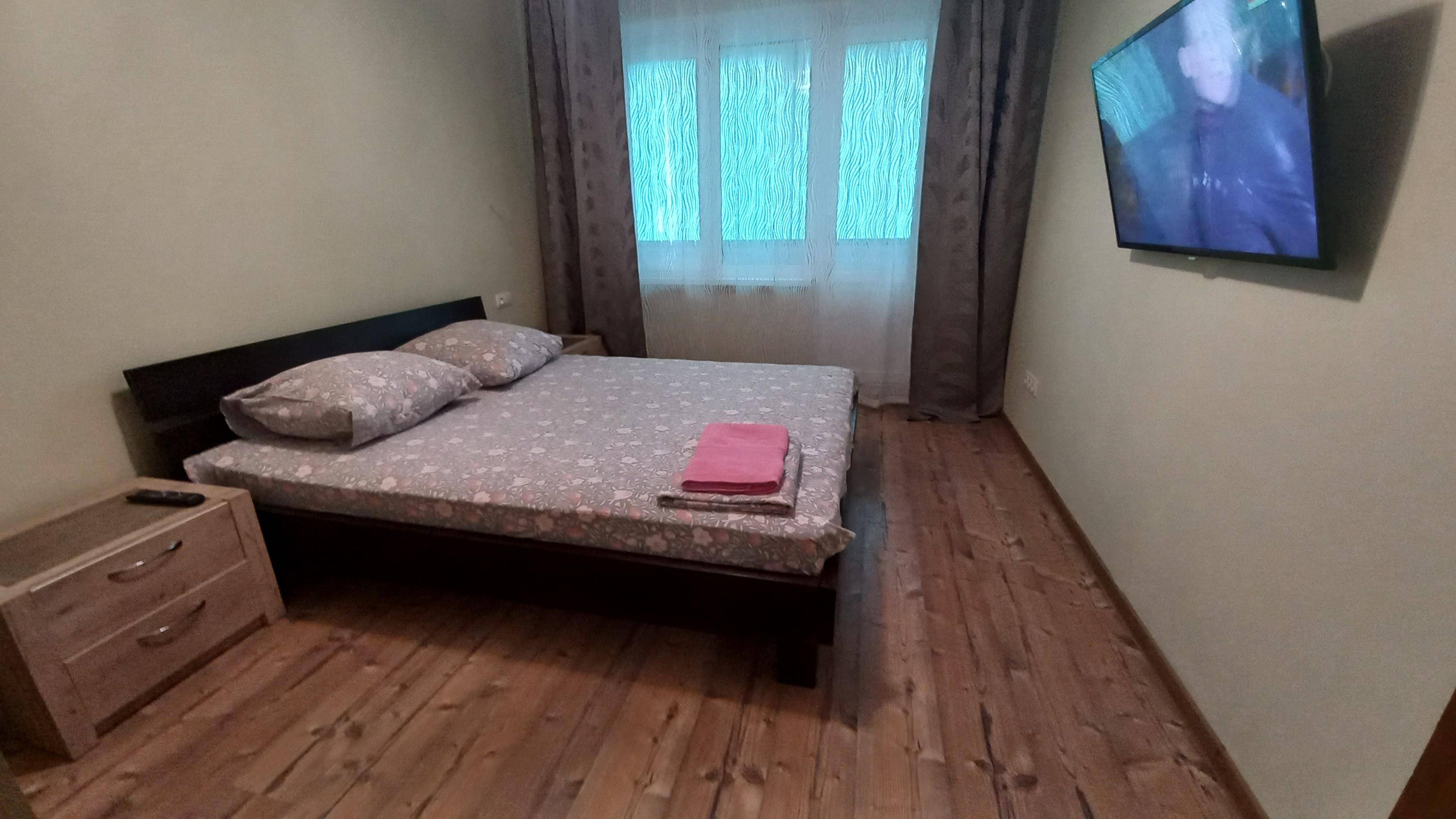 Трёхкомнатная квартира посуточно. Оснащена комфортабельной мебелью, необходимой бытовой техникой. Телевизоры ЖК, интернетWiFi, изолированные комнаты. Развитая инфраструктура, рядом гипермаркет, остановка, платная автостоянка.