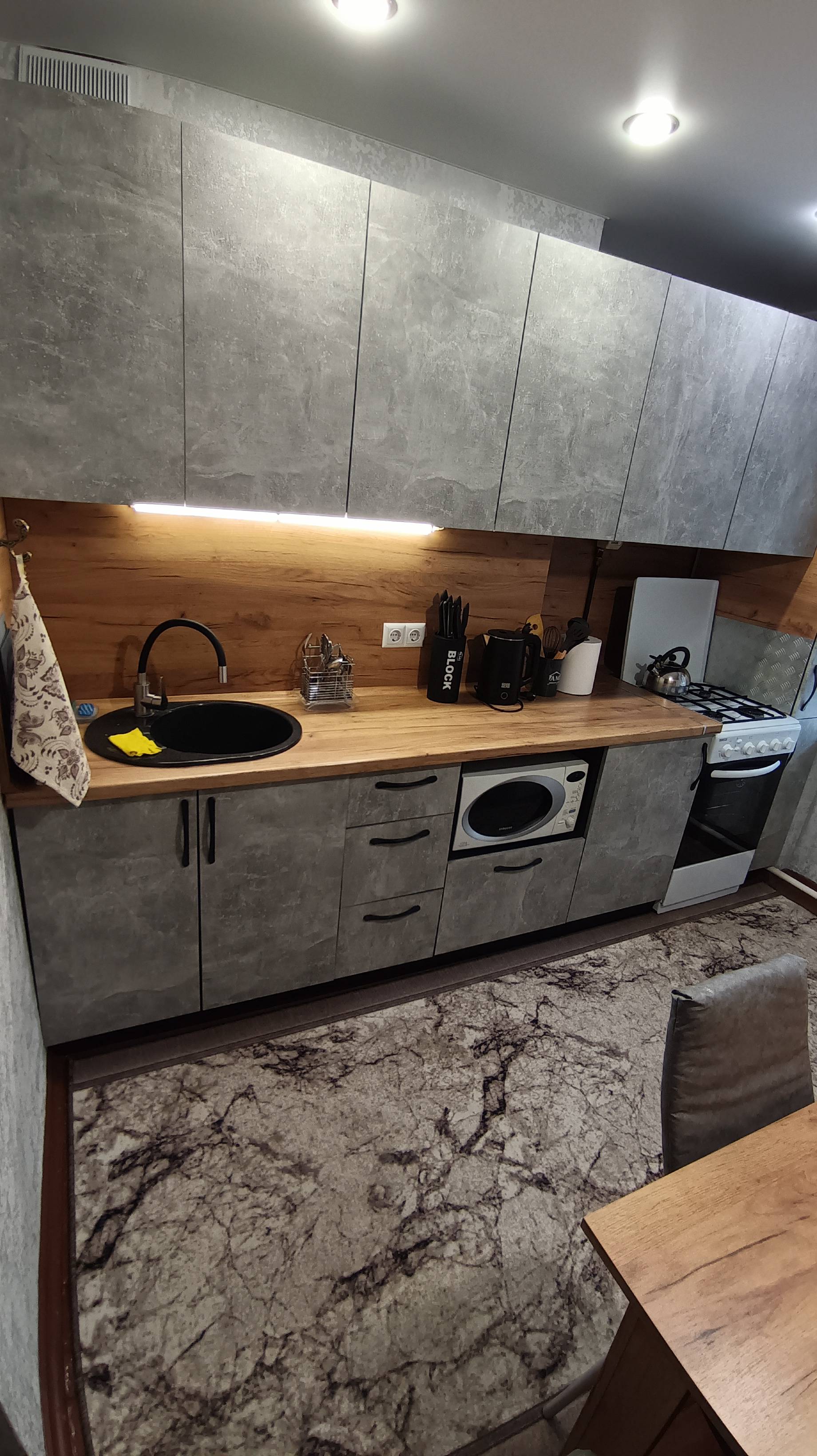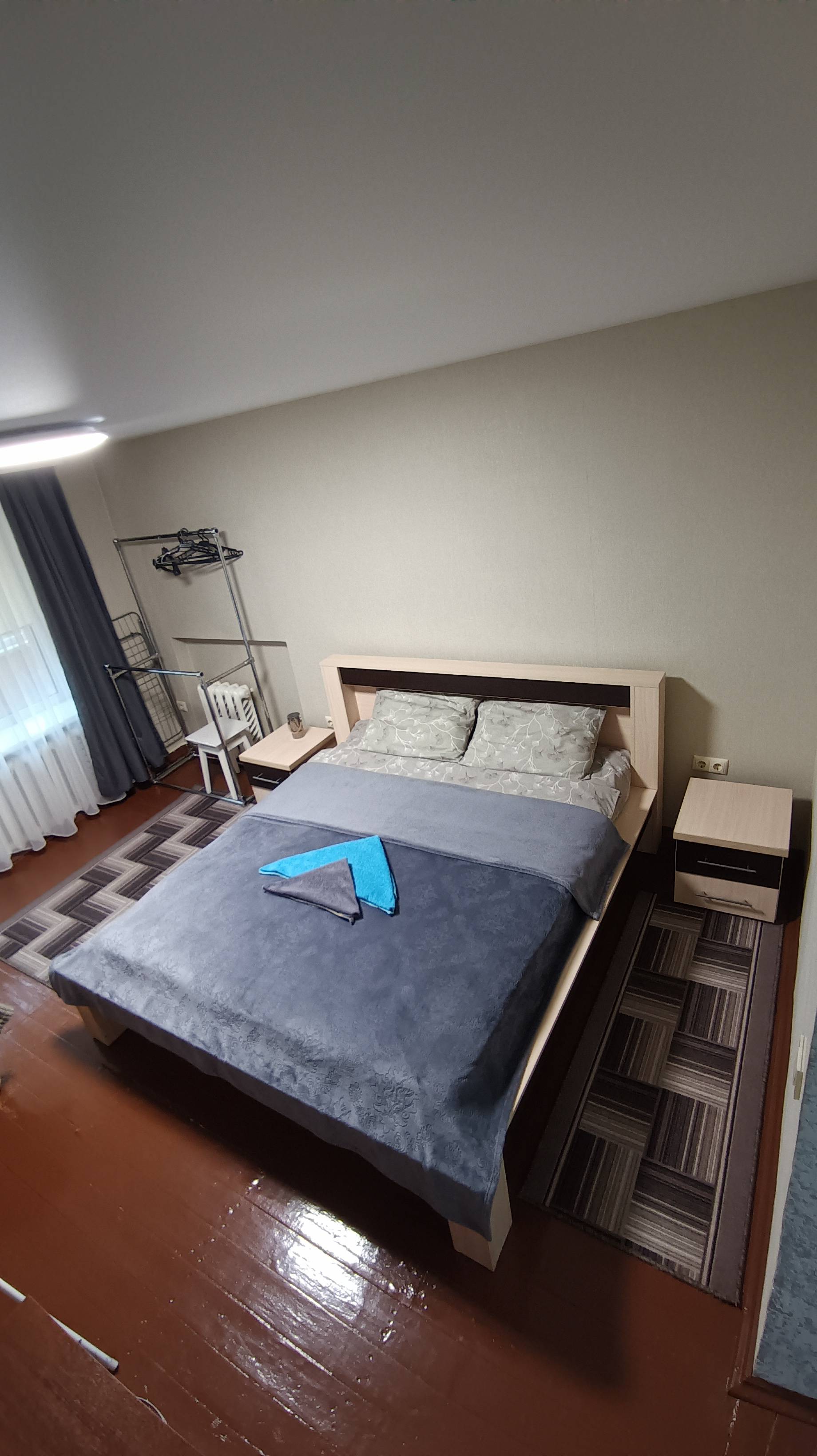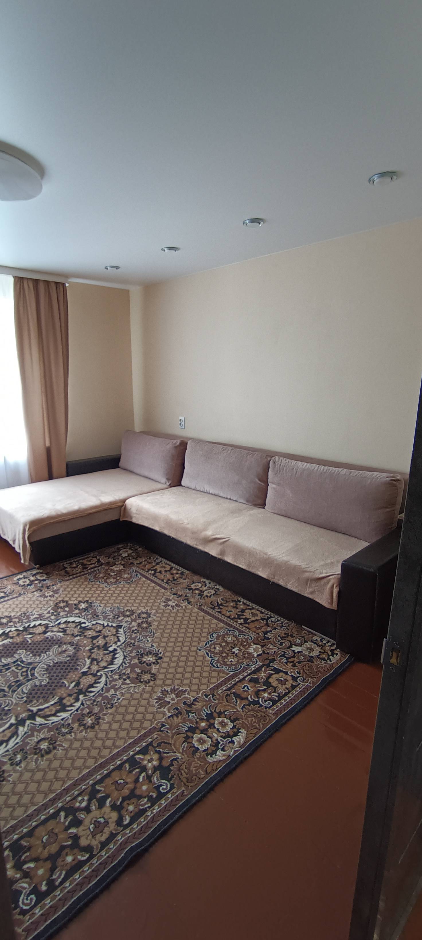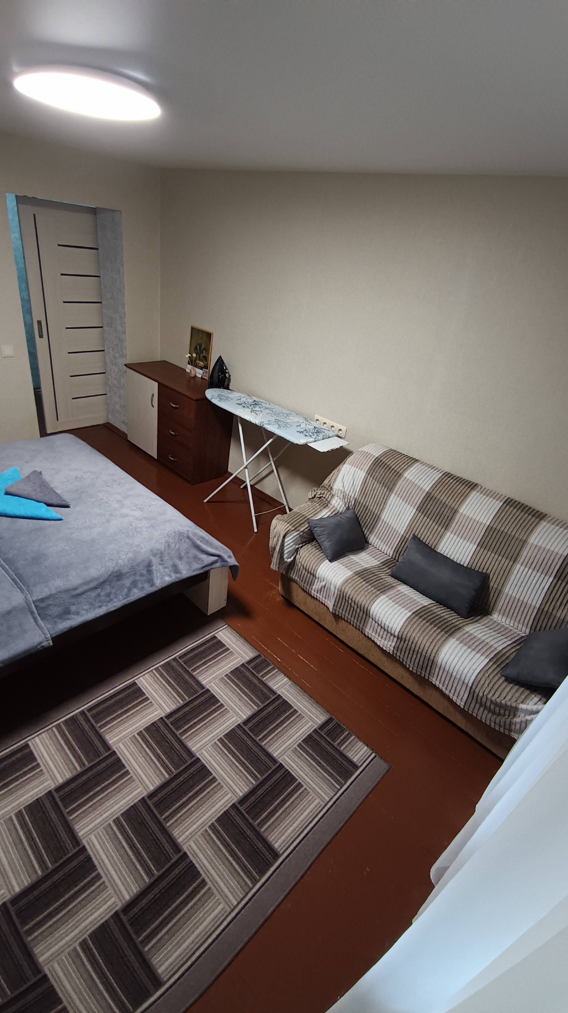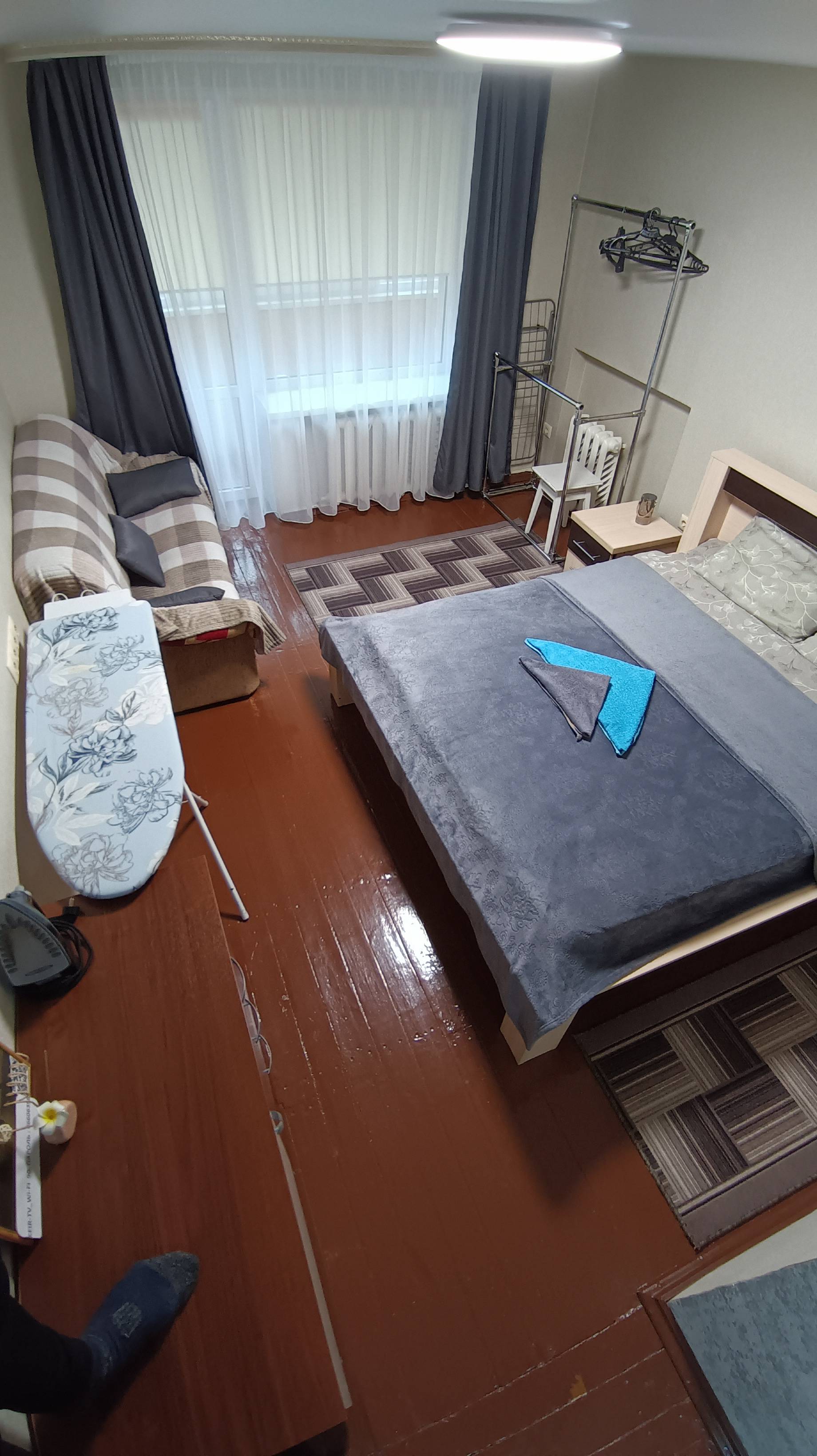 Всего с комфортом здесь может расположиться до 4 человек ( двухспальная кровать и два раскладных дивана)