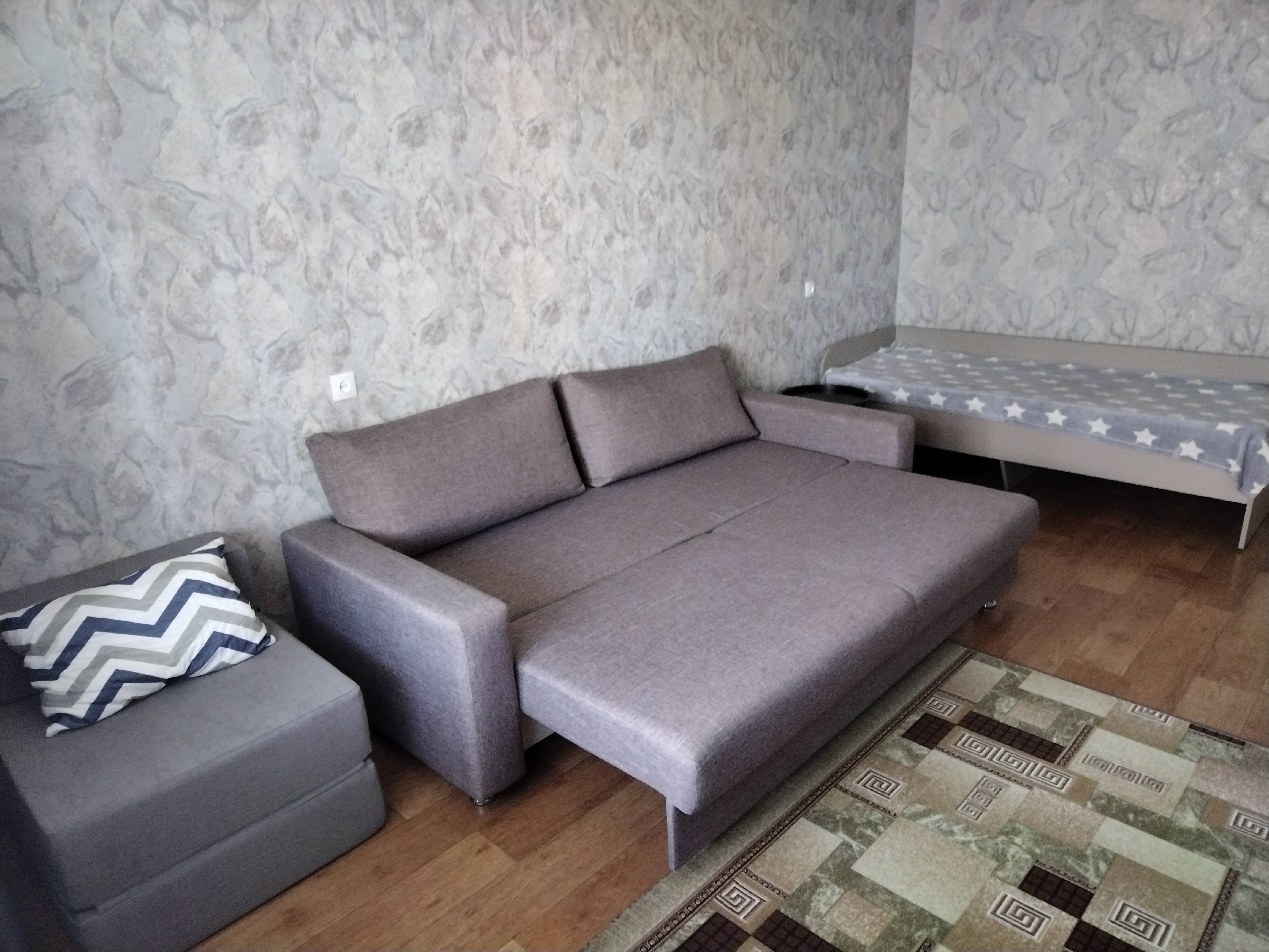 Размещение до 4-х человек. Дополнительное четвёртое место - бескаркасное кресло, которое раскладывается 70*180.