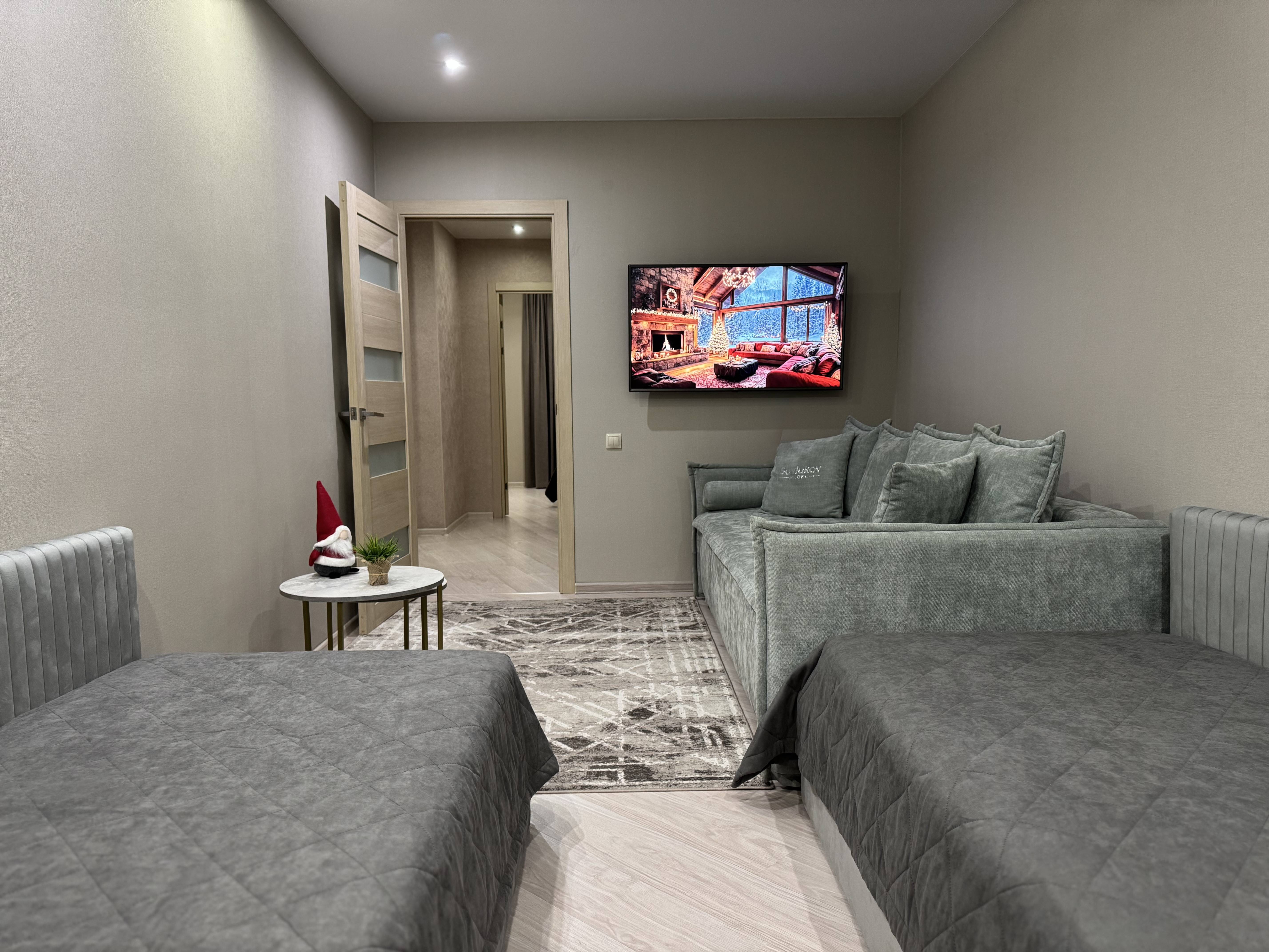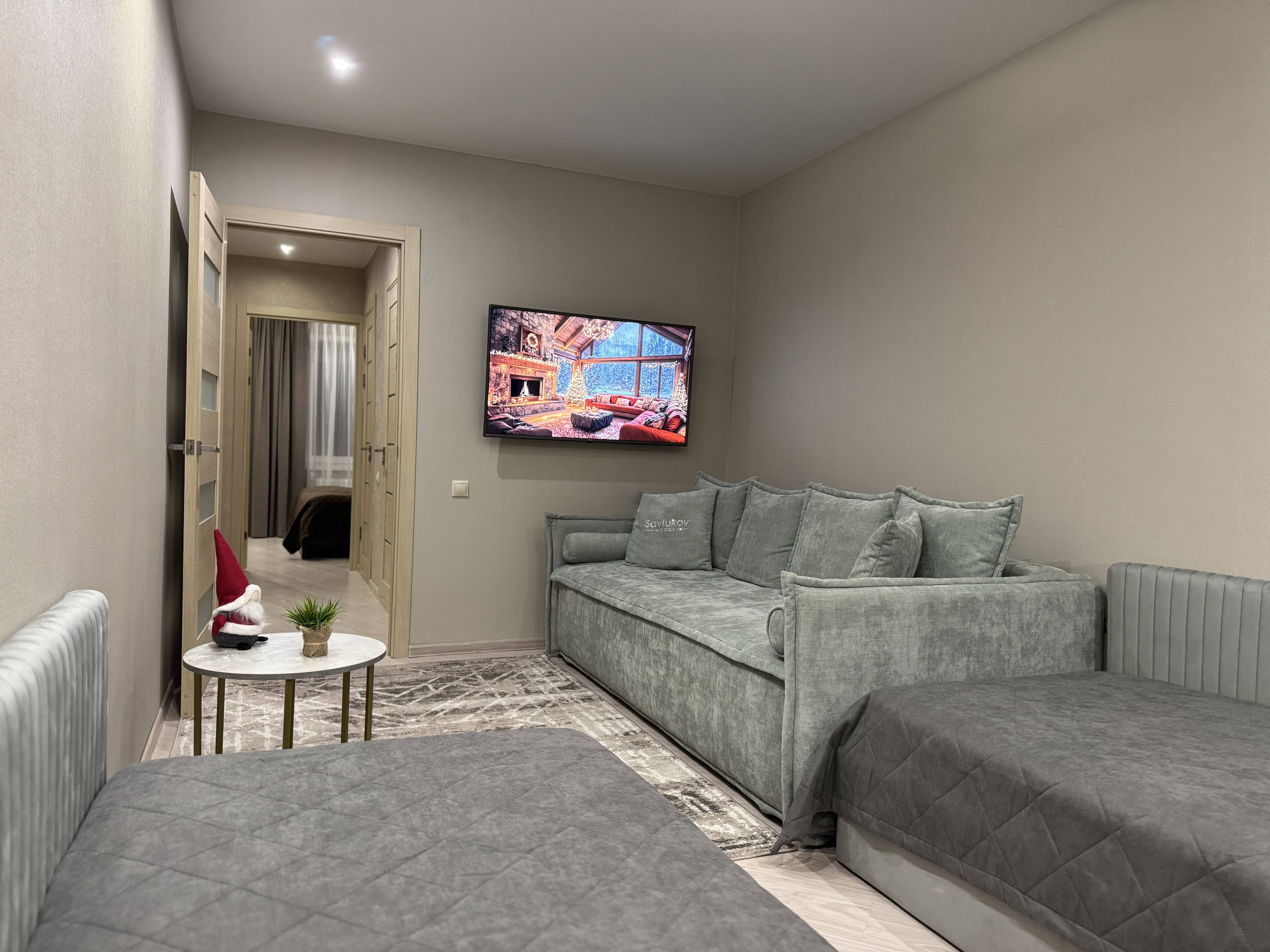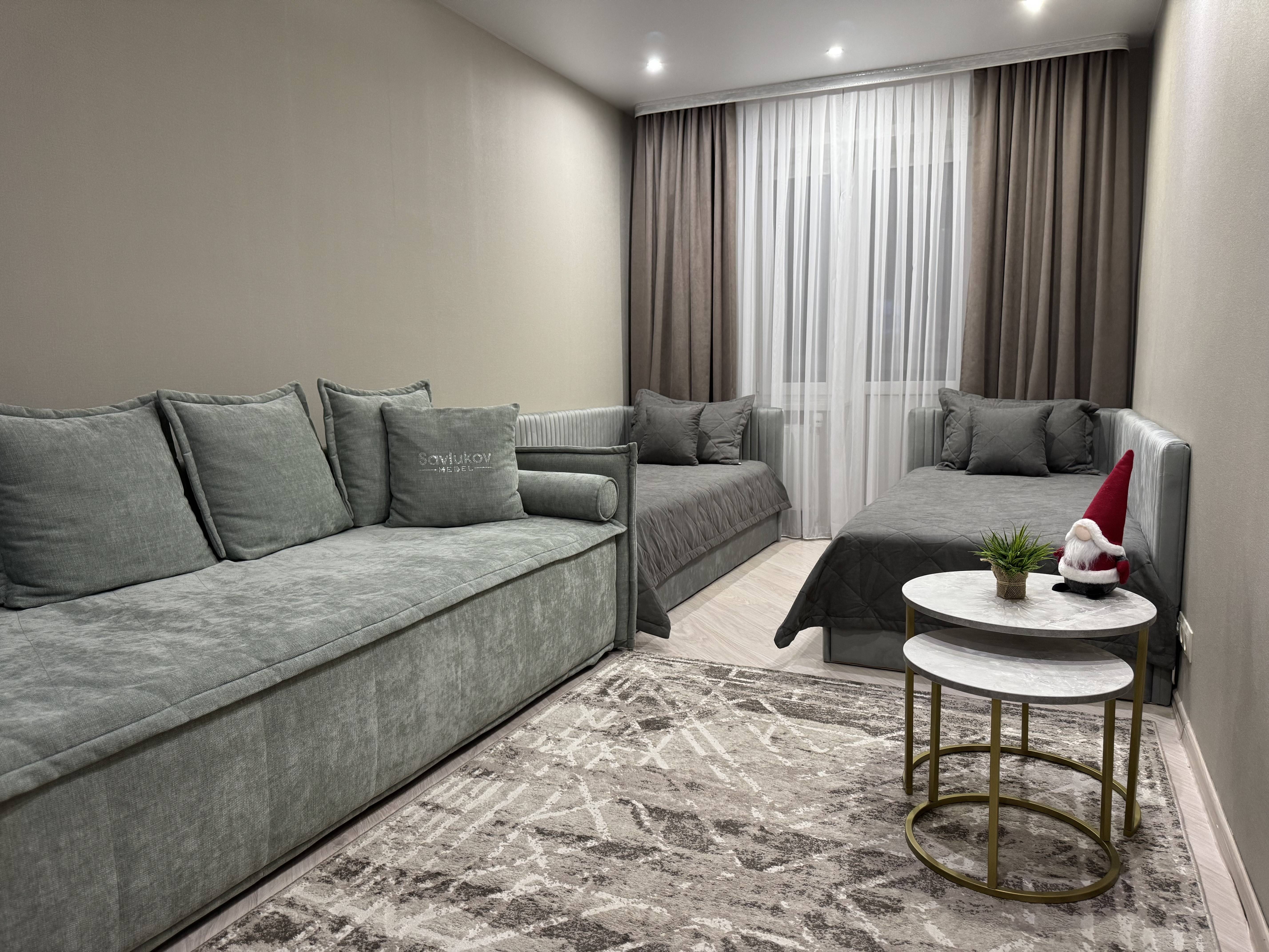 В квартире имеется 2 больших раскладных дивана, один из них от Савлуков мебель и двухспальная кровать.