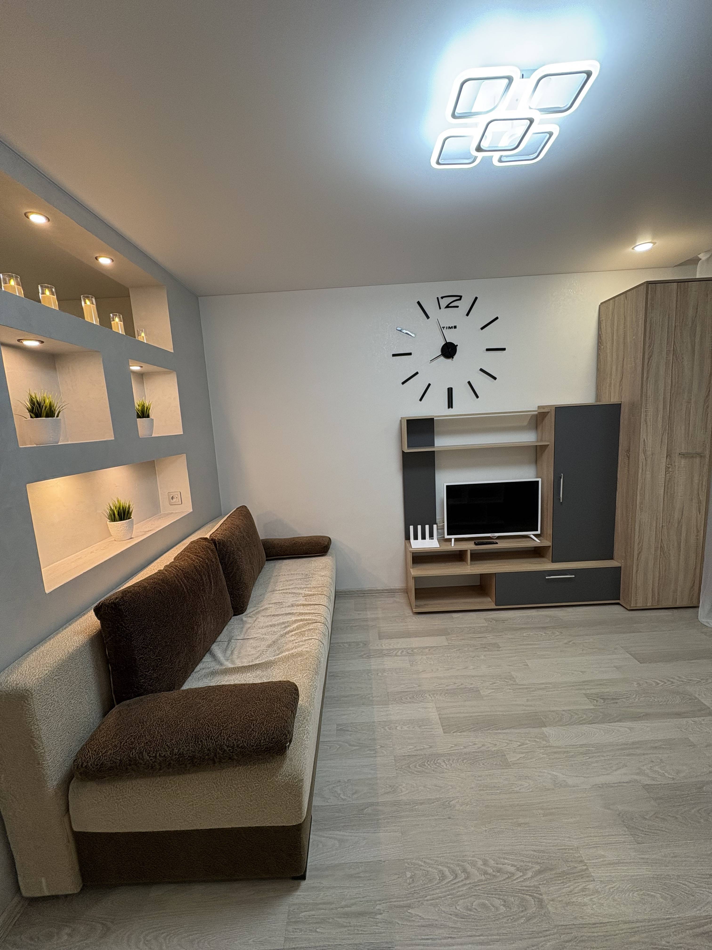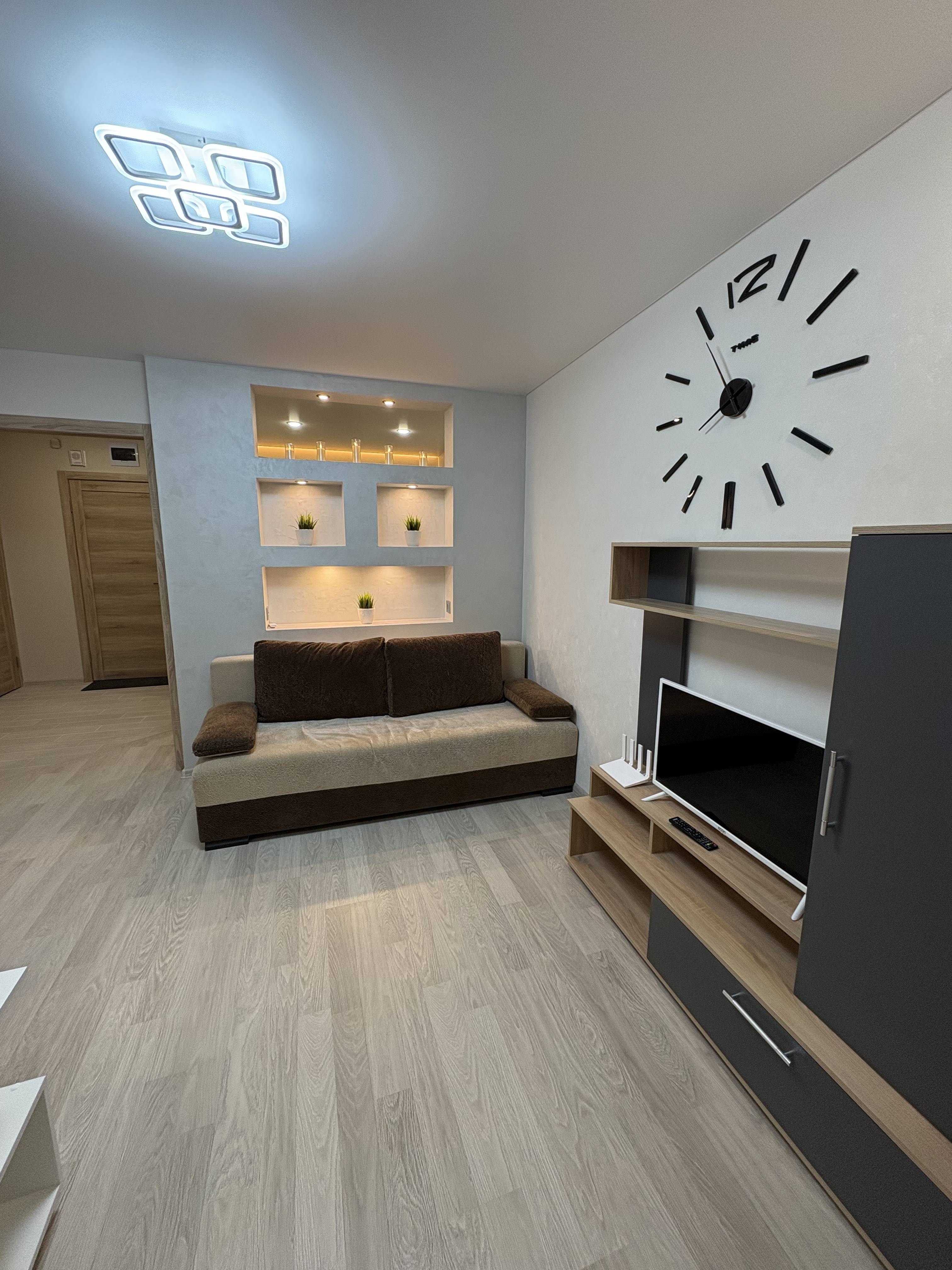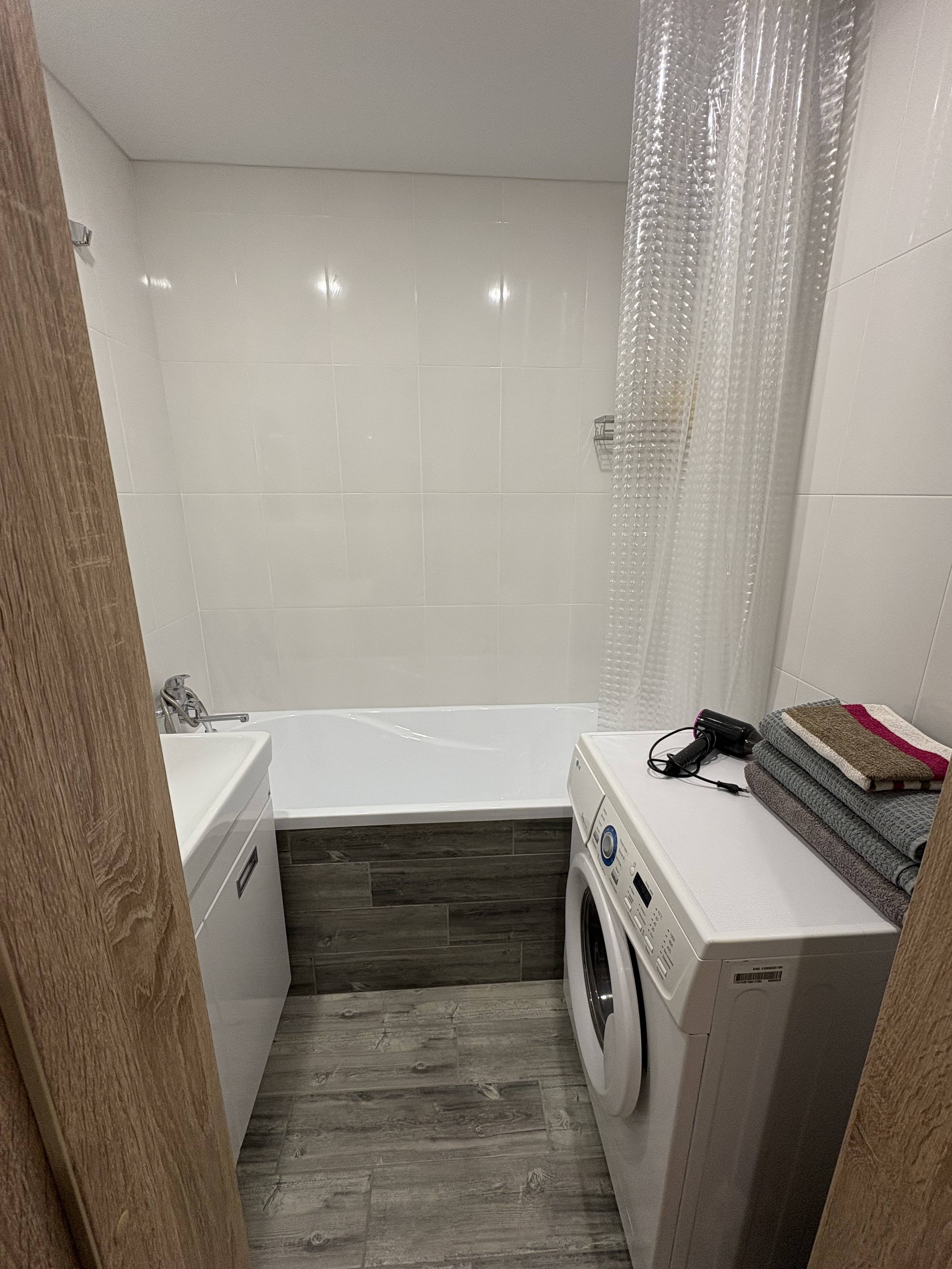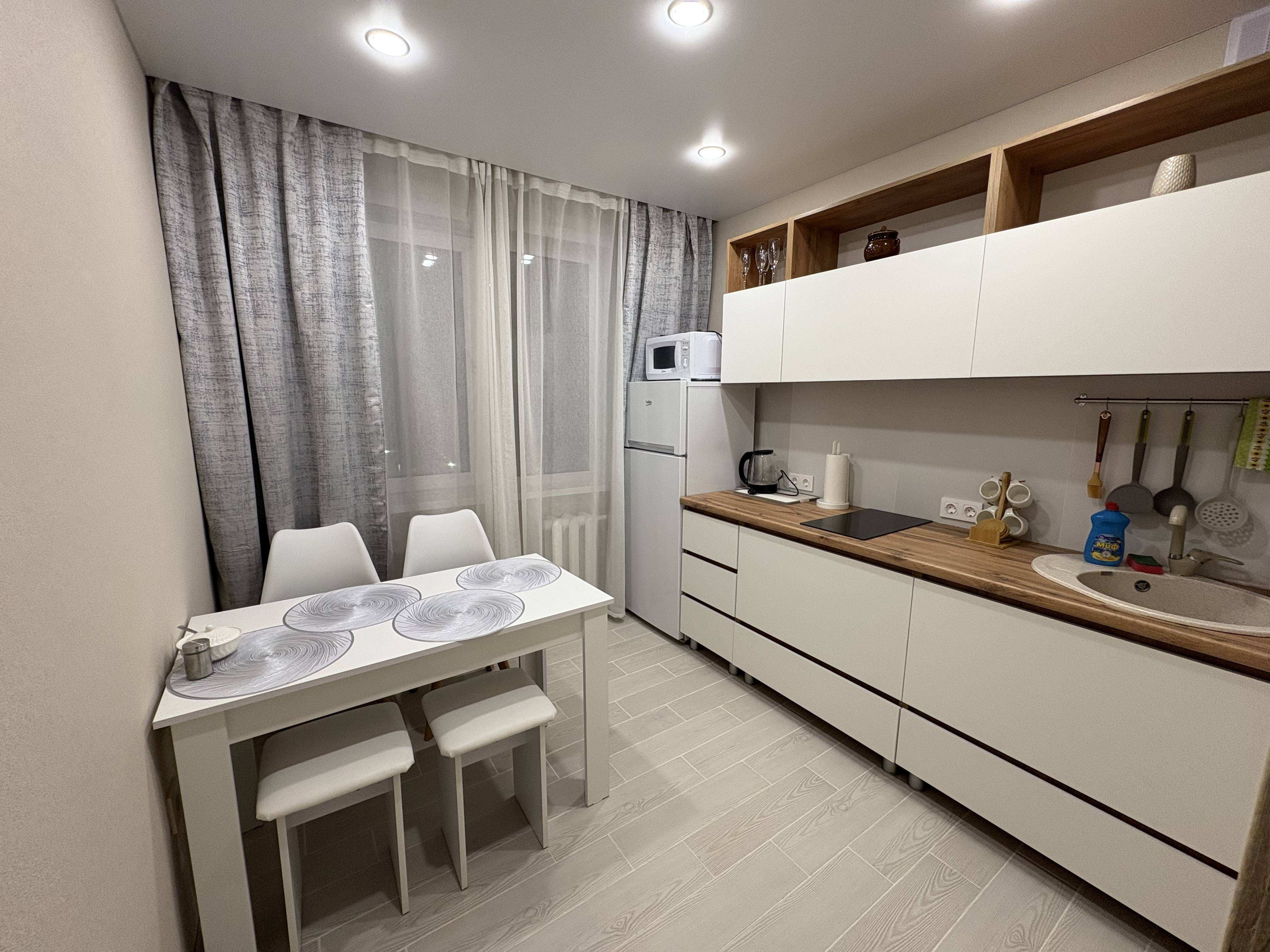 Комфорт гарантирован: стильный ремонт, вся необходимая техника, чистота и свежее белье для каждого гостя, 2-спальная кровать с пастельными принадлежностями, 2 комфортных дивана (раскладываются в полноценные спальные места), безлимитный Wi-Fi, телевизор, холодильник, электроплита, печь СВЧ, фен, утюг, стиральная машина.
