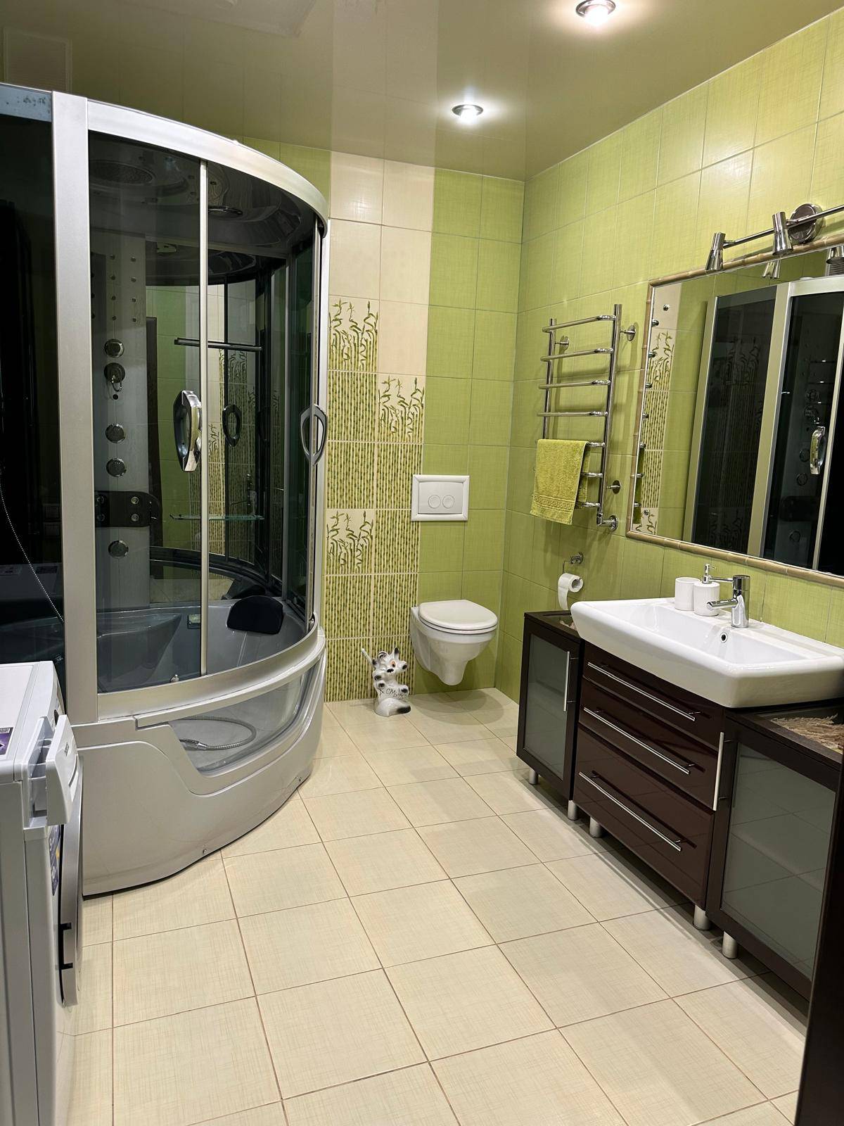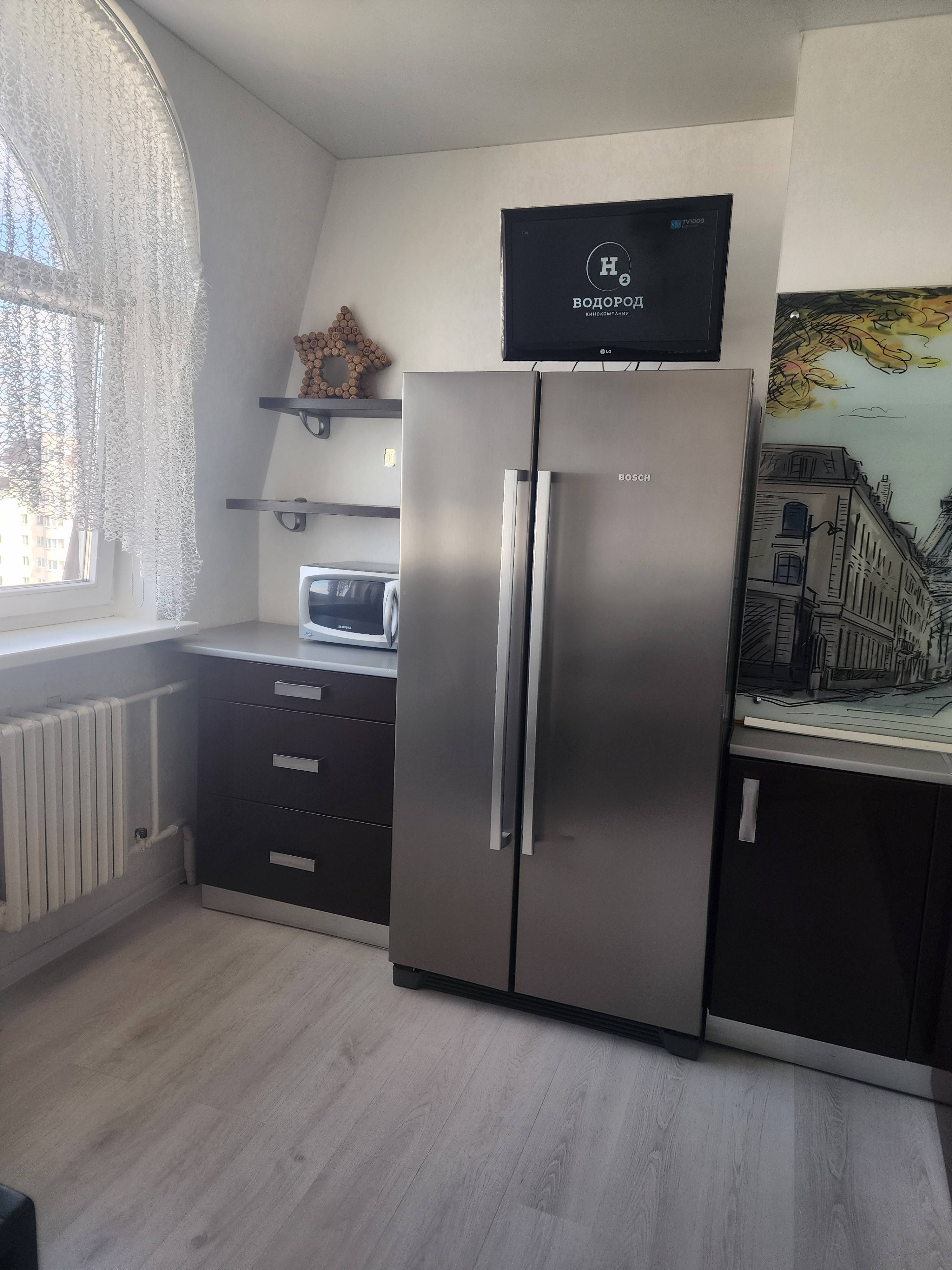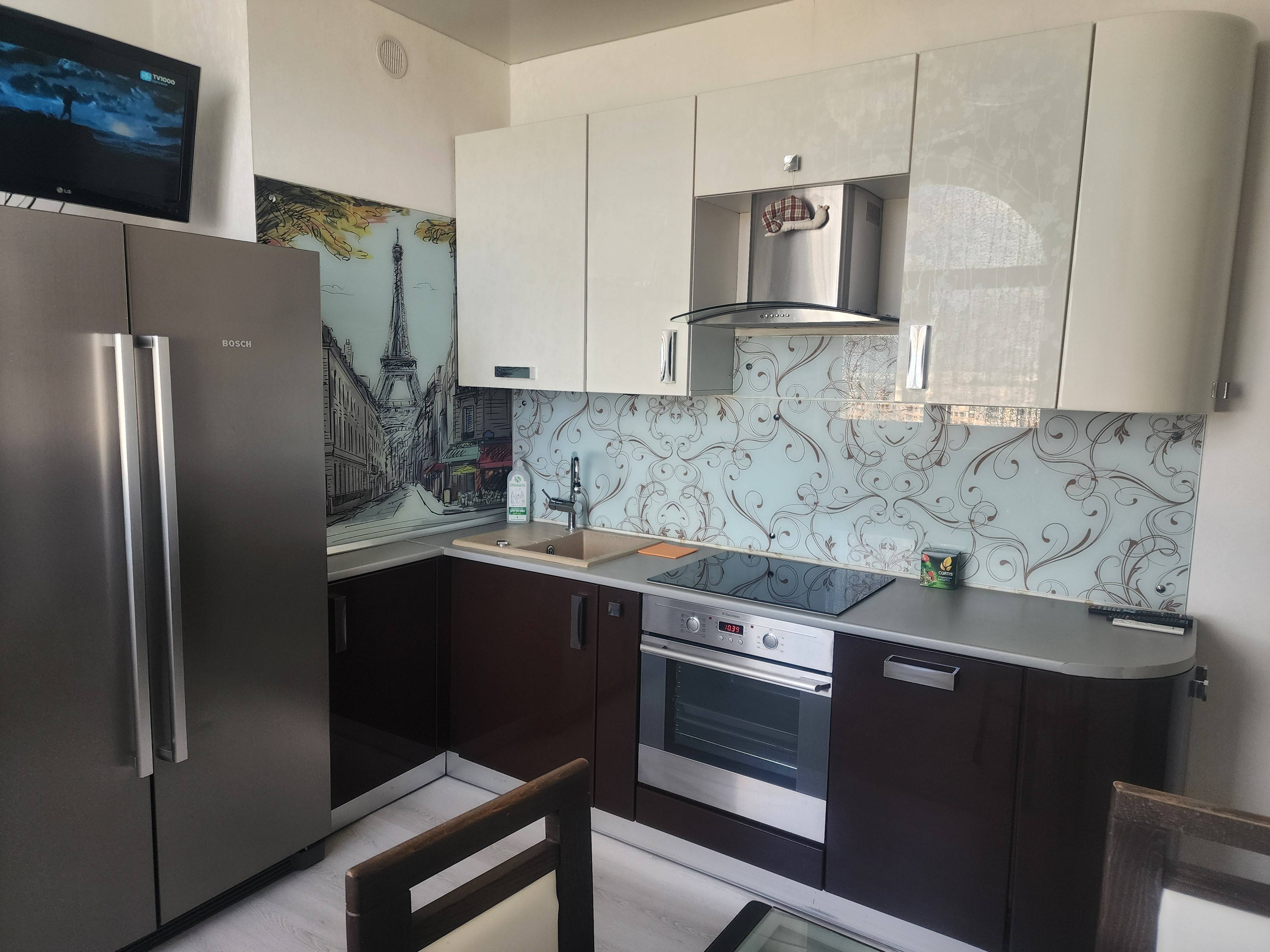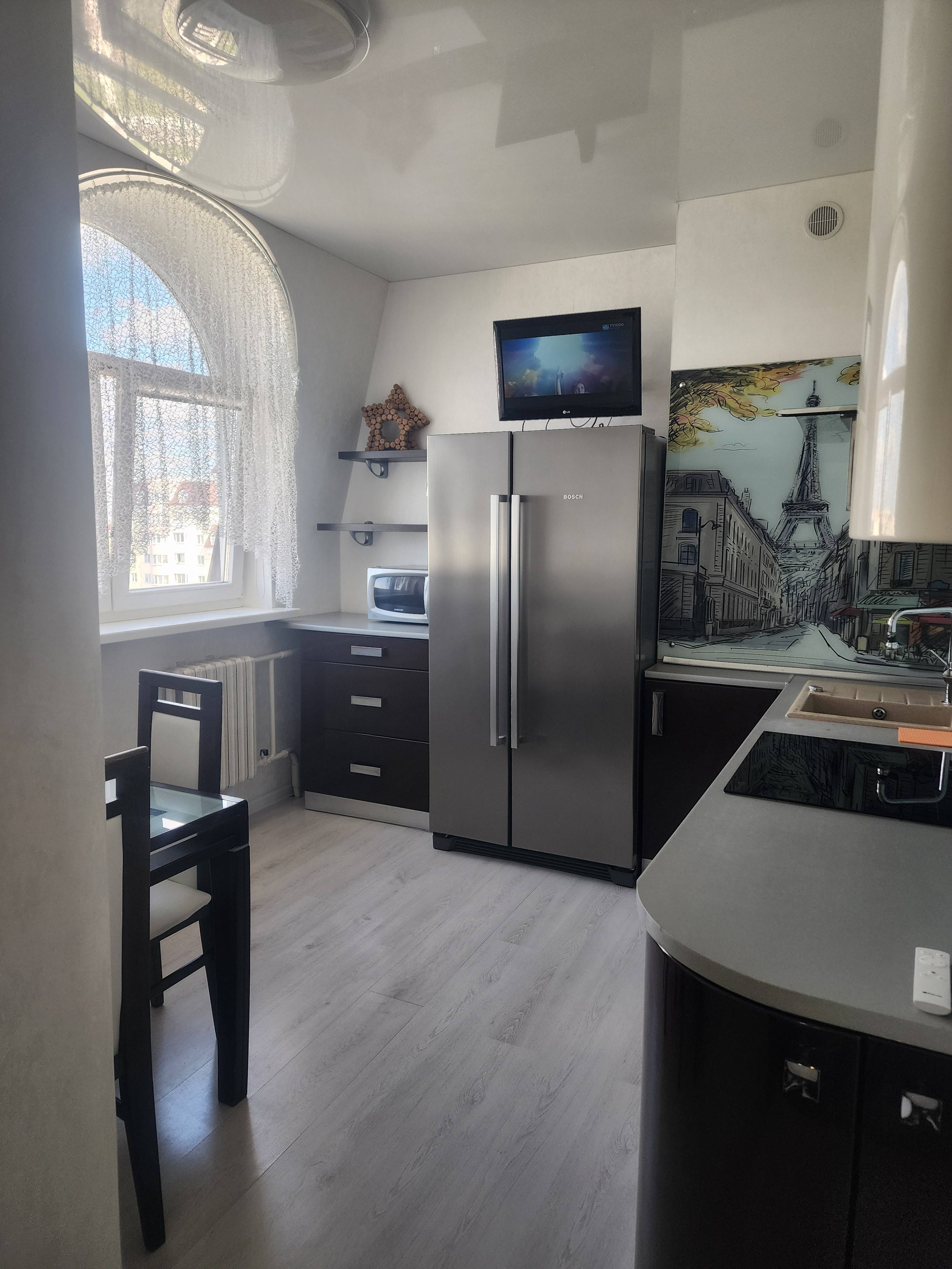 На кухне индукционная плита, духовка,посуда, микроволновка, посудомойка, холодильник, чайник. Есть Wi-fi, ТВ, кондиционер, утюг. Парковка бесплатная возле дома. Хорошее транспортное сообщение, возле дома, рядом продуктовые магазины, в шаговой доступности ТЦ "Трио", кафе. Документы для командировки предоставляем.Без питомцев.