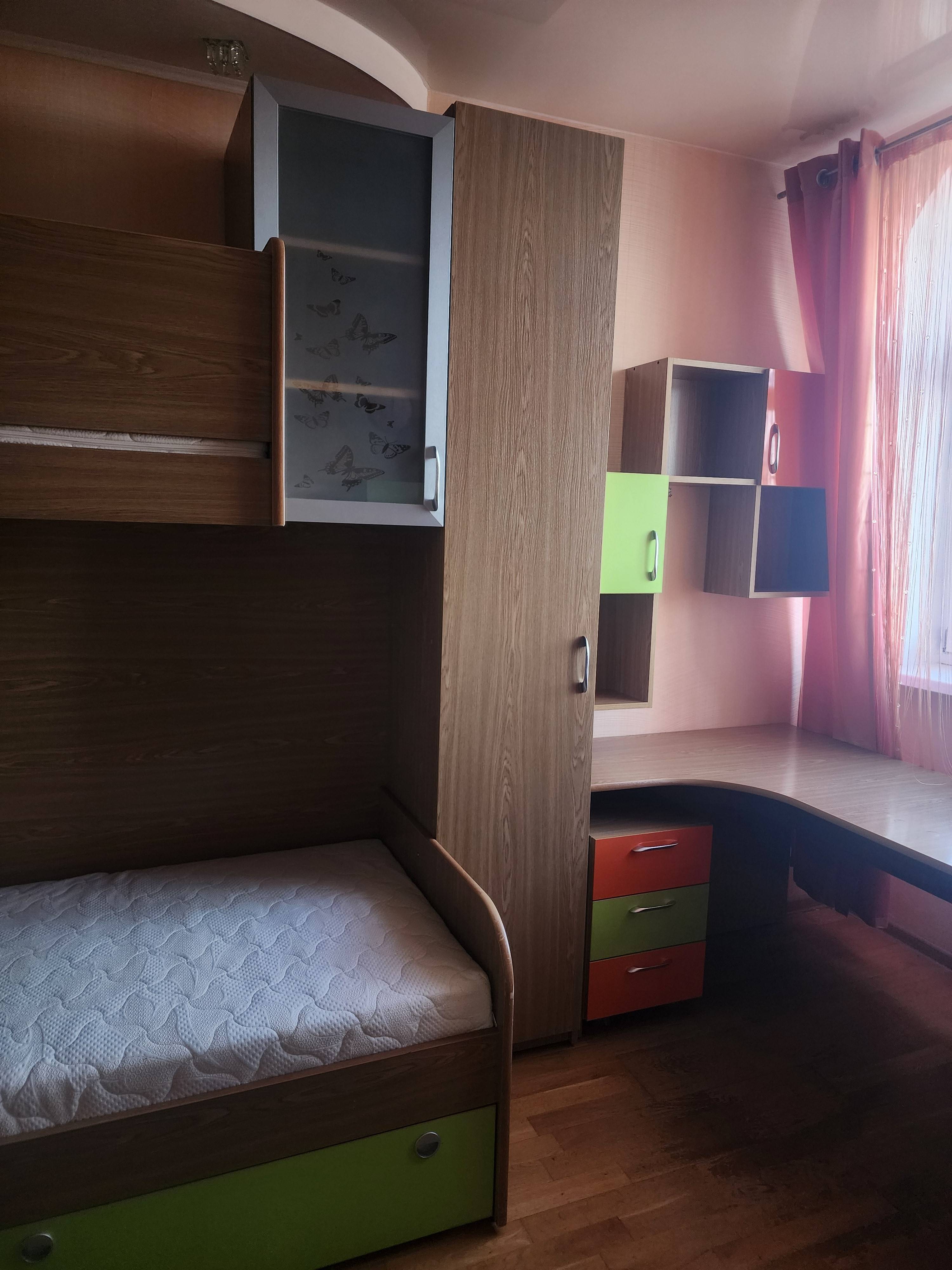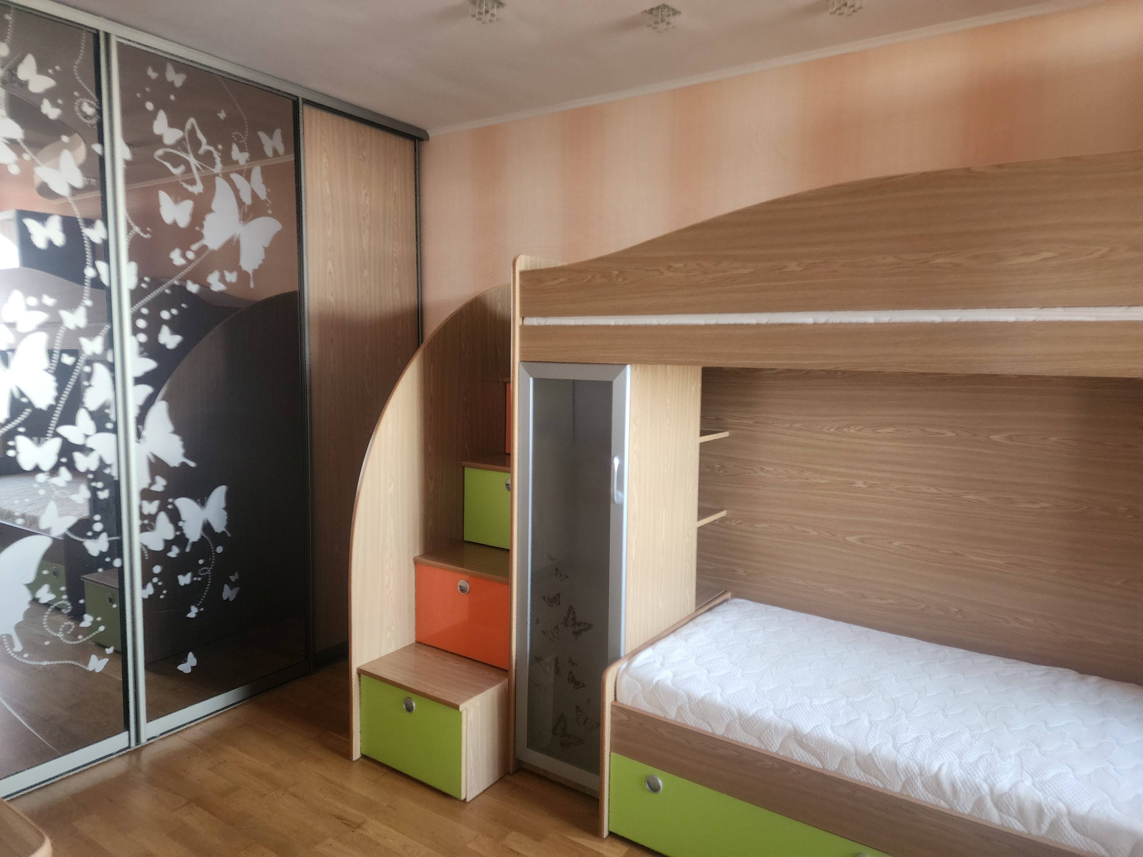 Квартира в центре города, в 10 мин ходьбы от главной площади Победы ( памятник три штыка) из окна видны праздничные фейерверки. Максимальном числе гостей 6 (5 взрослых + 1 ребенок спальное место на втором ярусе, которое выдерживает ребенка до 50кг), количество комнат 3. Есть двуспальная кровать, двухспальный диван, двухярусная кровать на два односпальных места. Хороший ремонт. Санузел совместный, стиральная машина, фен.