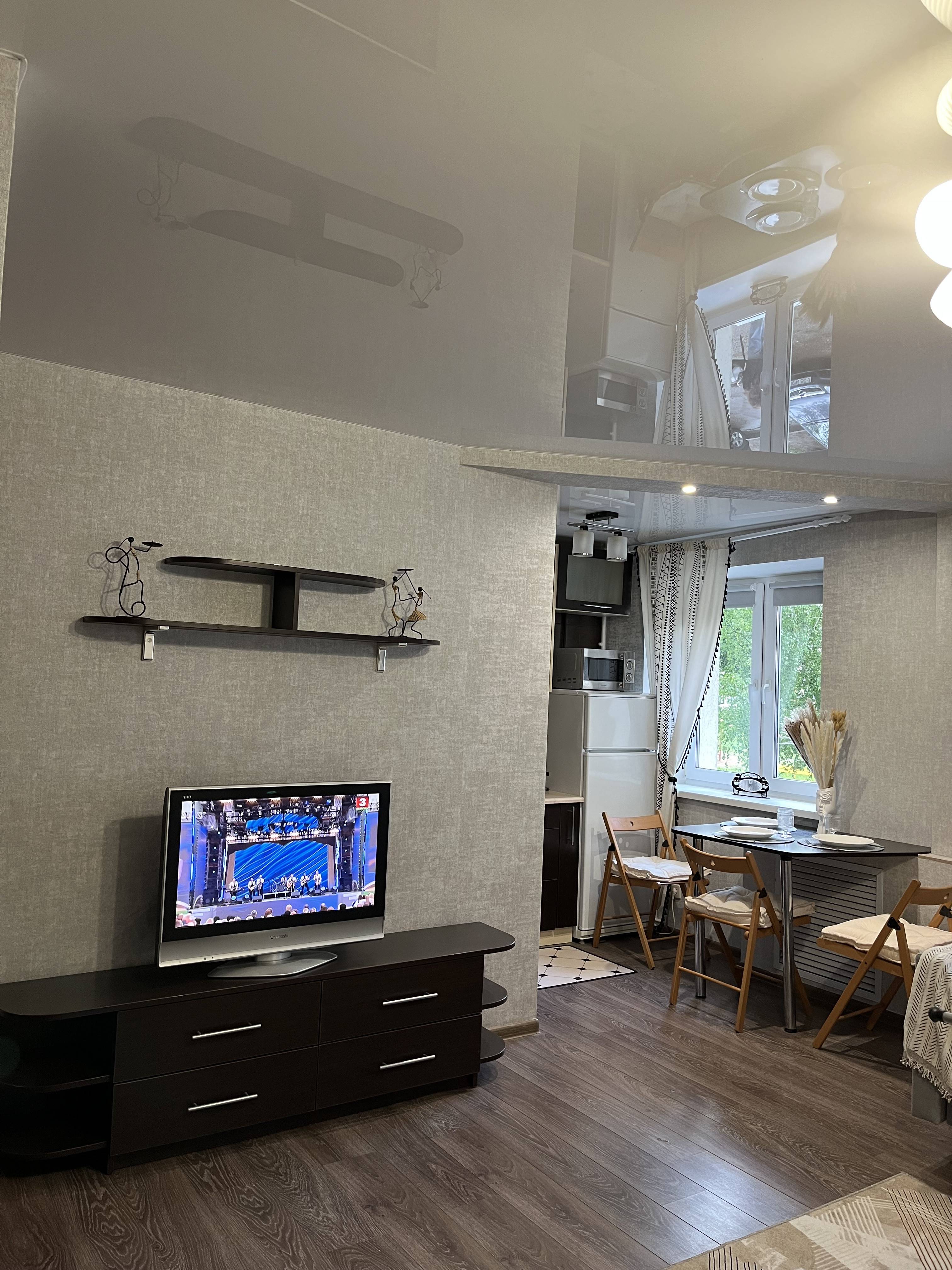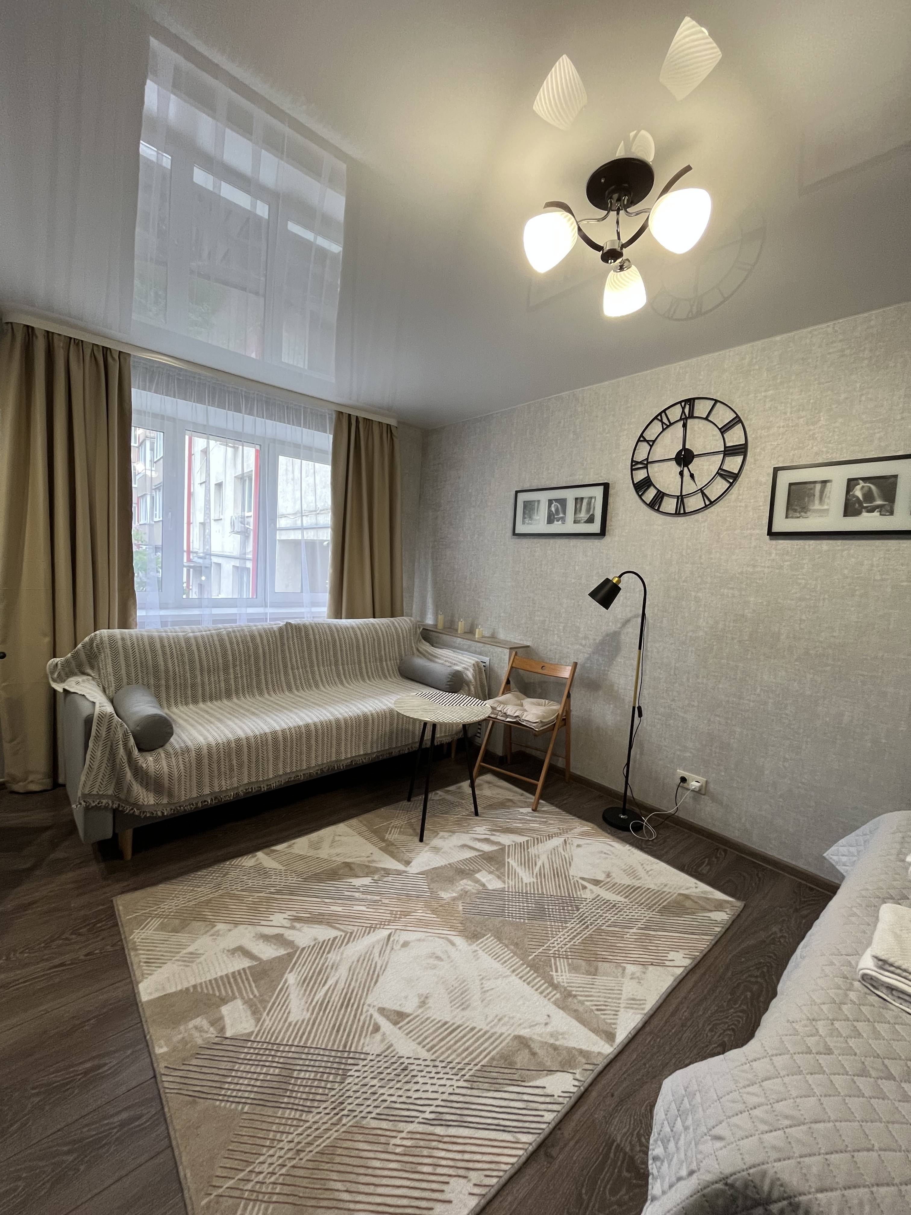 Студия на Площади Победы, современный ремонт, все необходимое для проживания. В пешей доступности до всех достопримечательностей. В доме ресторан Виктория. Васильки -через дорогу. Удобный второй этаж, окна во двор.