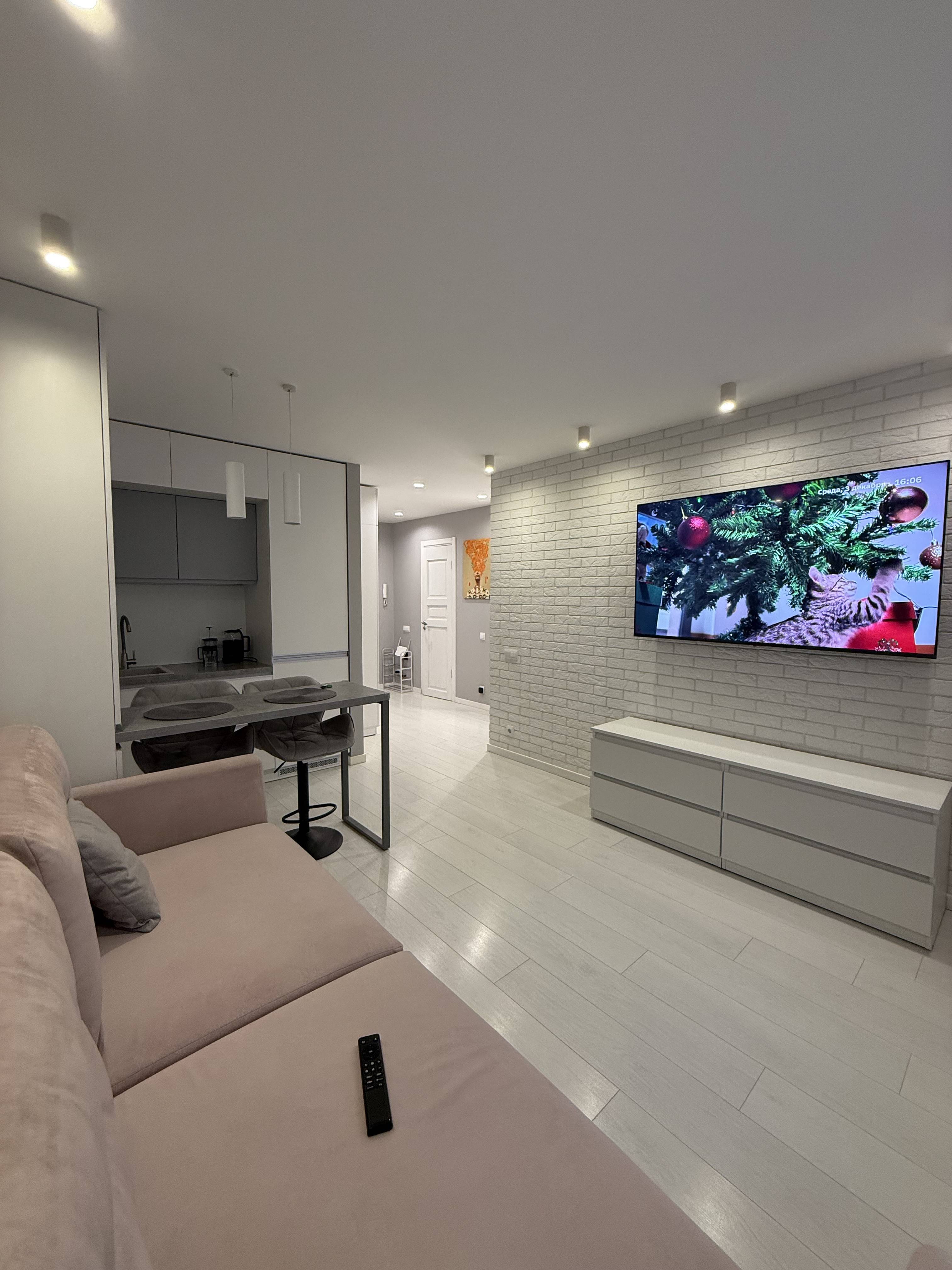Современные, уютные апартаменты с видом на город в небоскребе, в шаговой доступности от центра города. В апартаментах сделан евроремонт, квартира представляет собой 2 изолированные комнаты, где размещена двуспальная кровать с ортопедическим матрасом и гостиная с двуспальным диваном. Квартира полностью оснащена новой техникой, смарт тв, высокоскоростной интернет, электрический чайник, сушилка, утюг, гладильная доска, фен. Кухня оснащена всей необходимой посудой. Есть все необходимое для комфортного проживания (шампунь, гель для душа, жидкое мыло, комплекты постельного белья, комплекты полотенец ). Подходит как для краткосрочного так и длительного проживания. Командировочным предоставляются все отчетные документы. Работаем с юридическими и физическими лицами. Оплата как наличными, так и по безналичному расчету. Если вы путешествуете на машине, припарковаться можно будет на бесплатной парковке. Цена зависит от количества людей, выходные и праздничные дни цены выше.