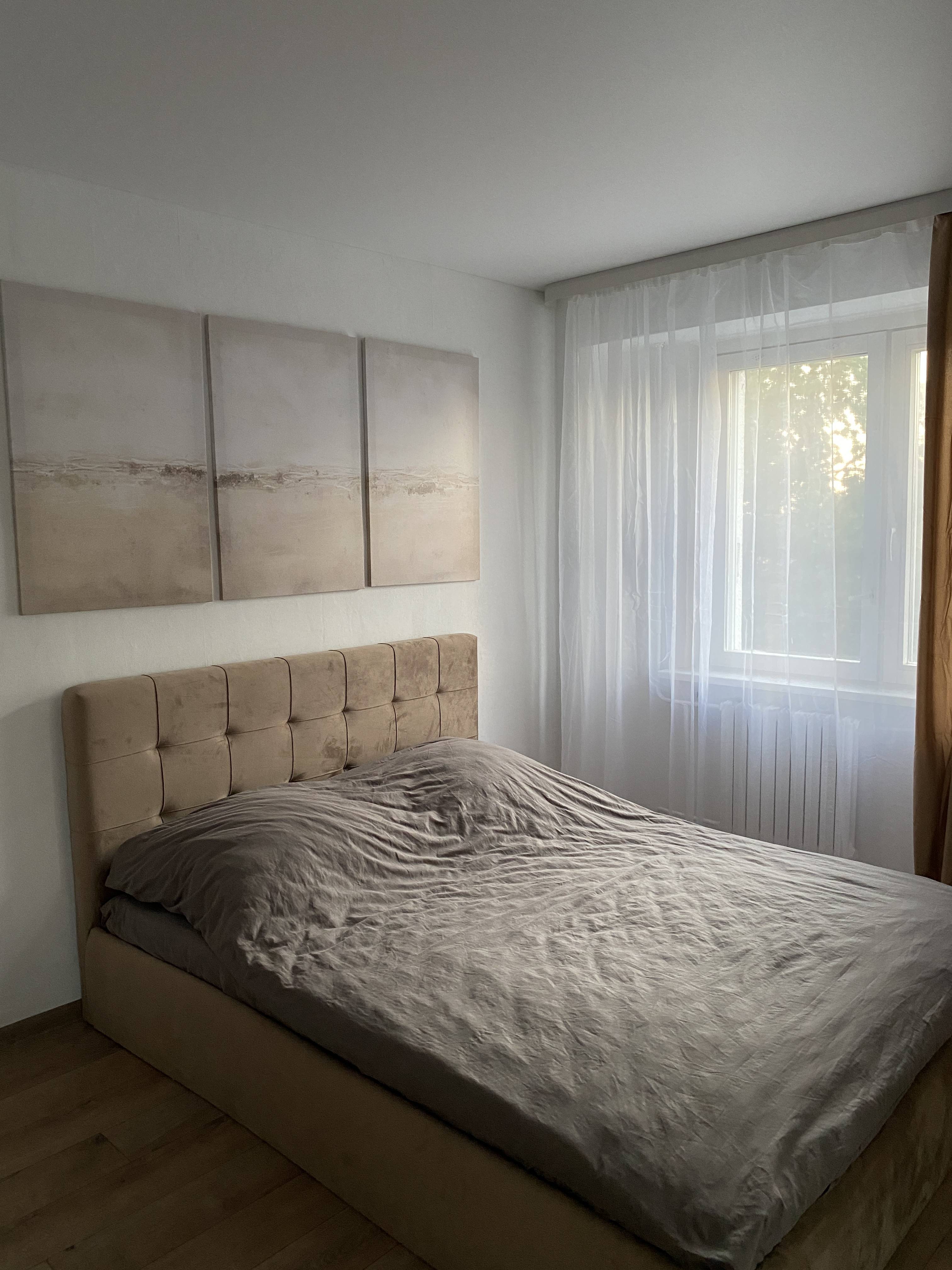 В квартире — удобная двуспальная кровать с ортопедическим матрасом, а также вся необходимая мебель, безлимитный wi-fi, холодильник, телевизор, микроволновая печь, утюг, гладильная доска, сушилка, посуда, чайник и постельные принадлежности — всё для вашего комфорта.