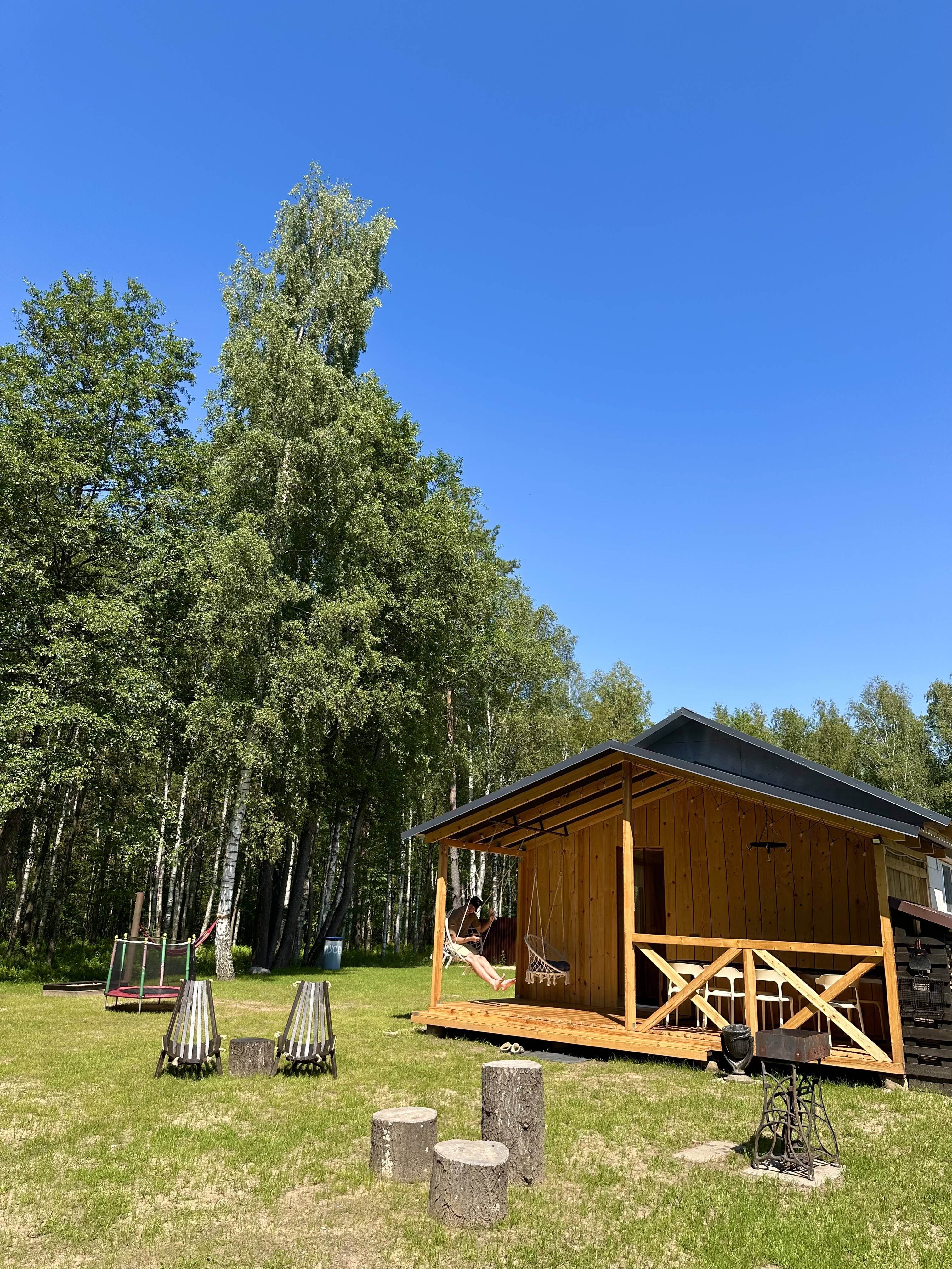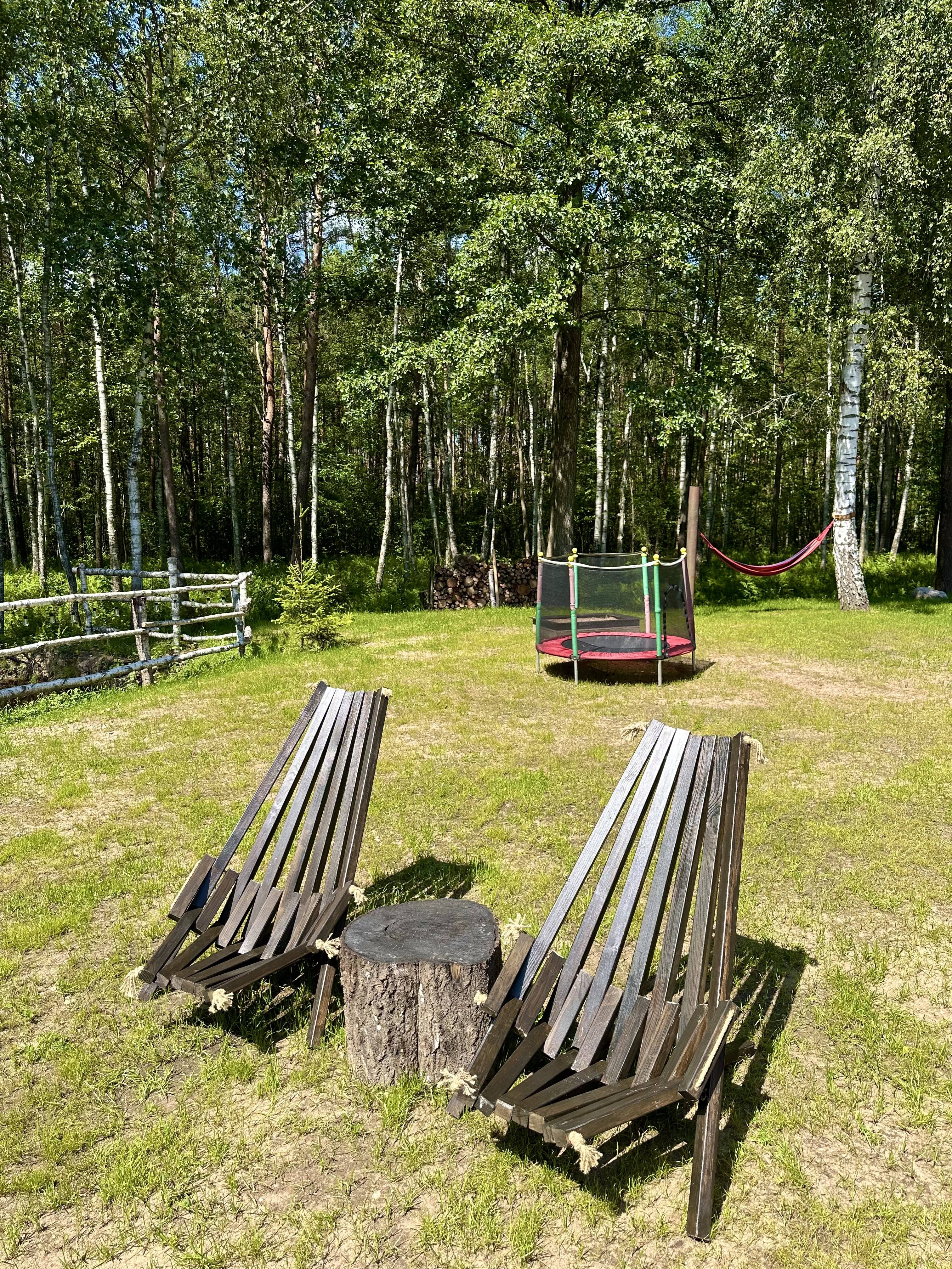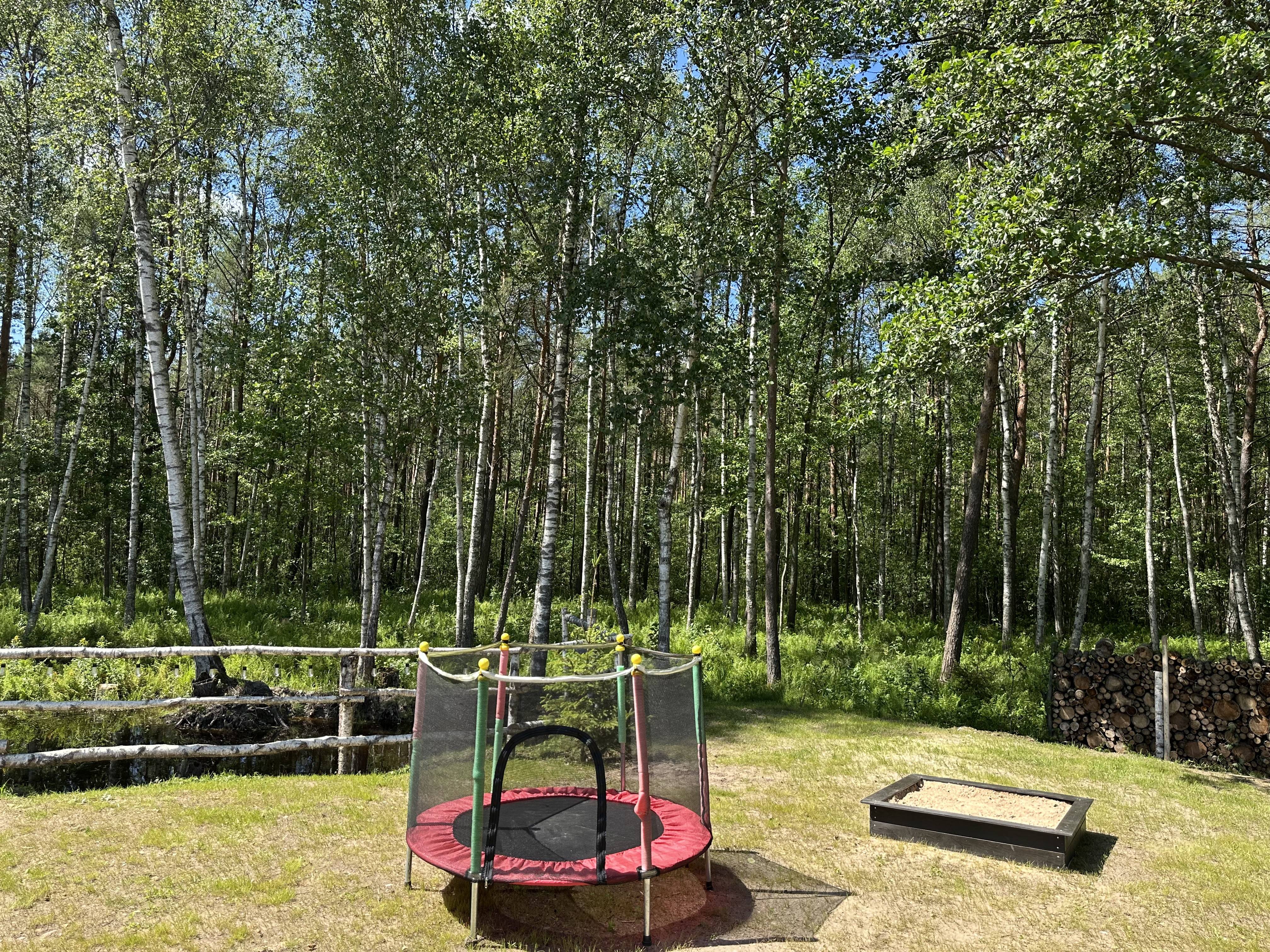 Для детей есть песочница, батут, гамак, качели.