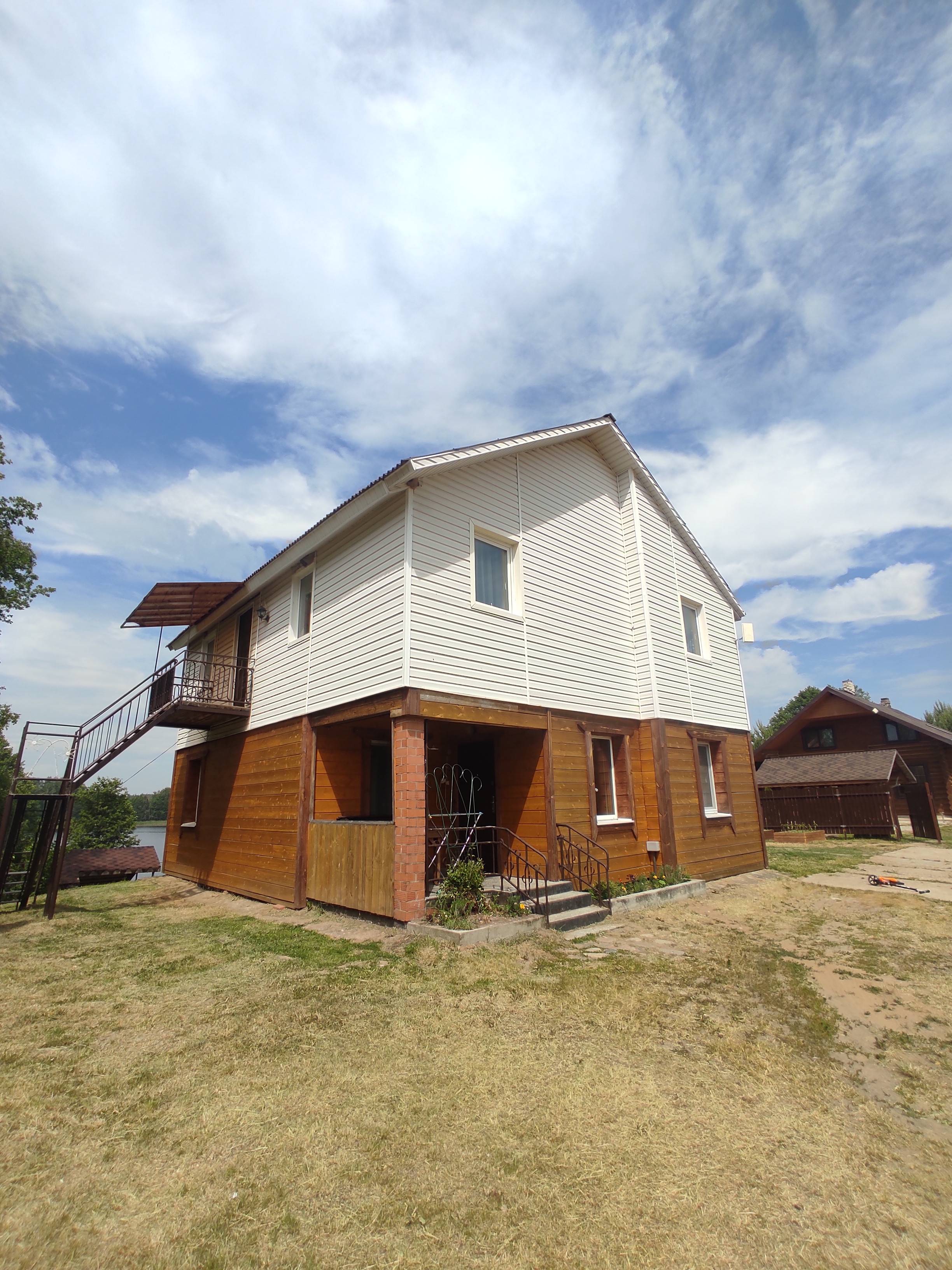Двухэтажный коттедж на берегу оз.Ельно в 4 км от г.Браслава. Первая береговая линия, хутор окружен лесом, хорошая подъездная дорога.