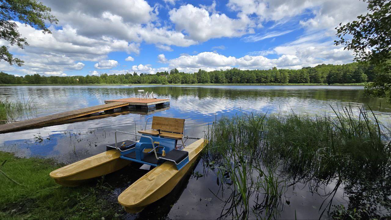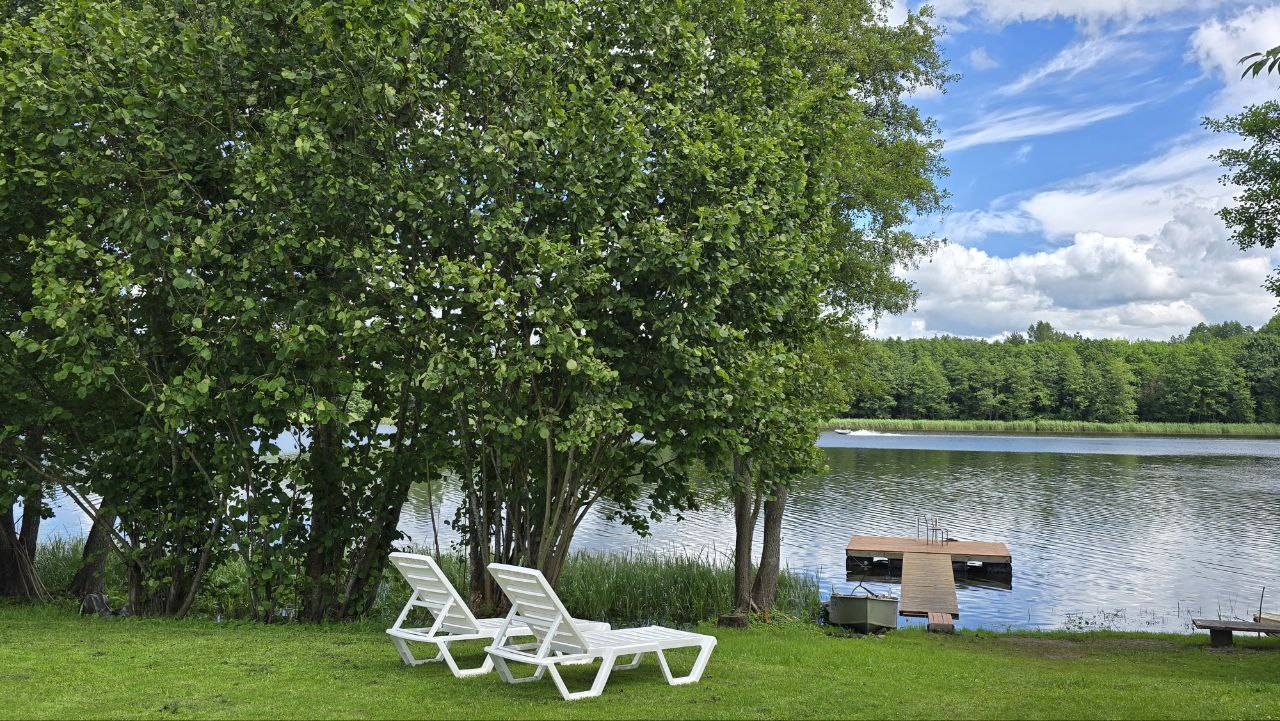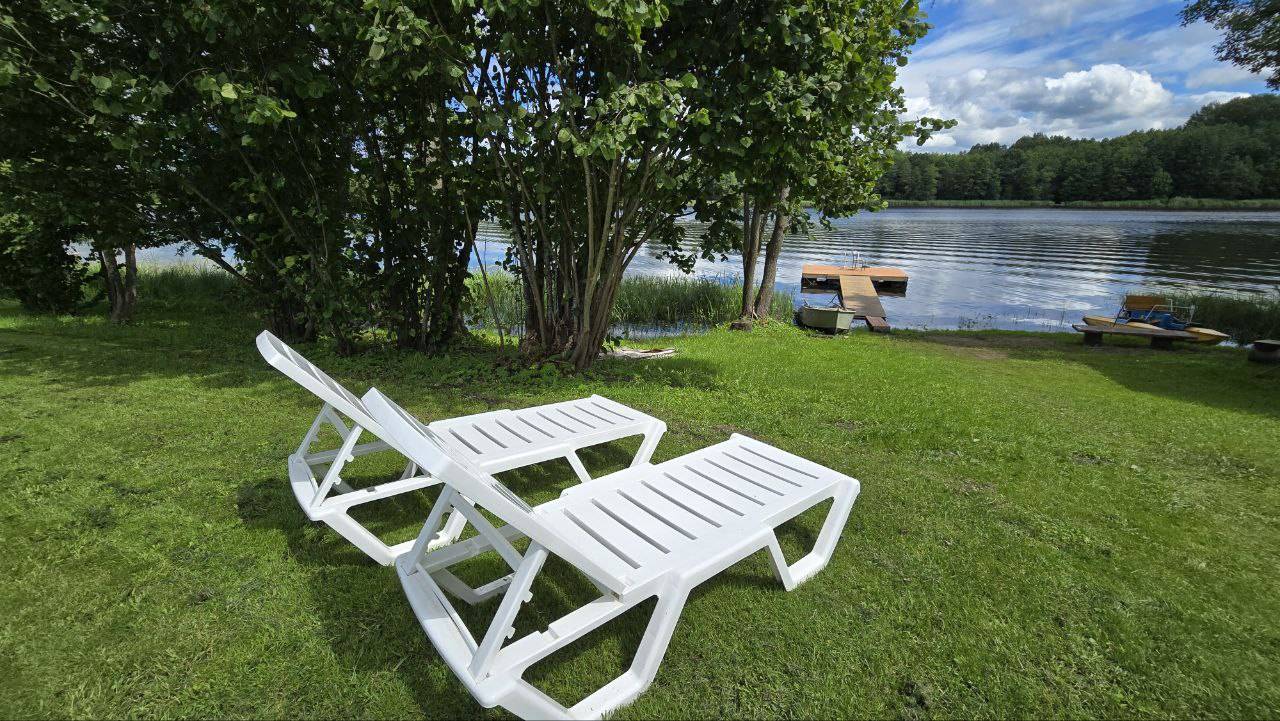 Дом расположен всего в пяти километрах от Браслава, на живописном берегу озера Рака — идеальное место для отдыха на природе вдали от городской суеты.